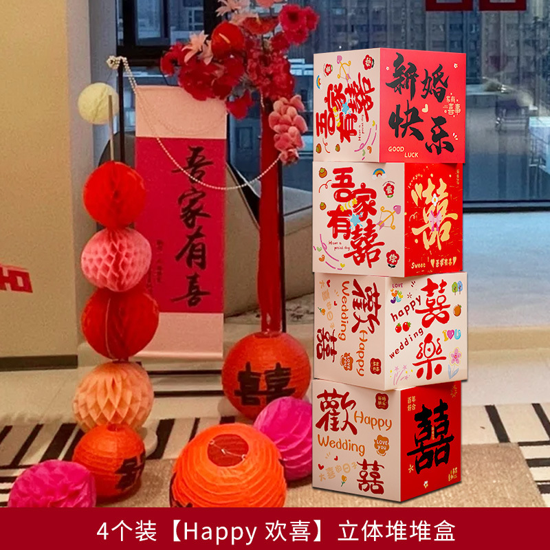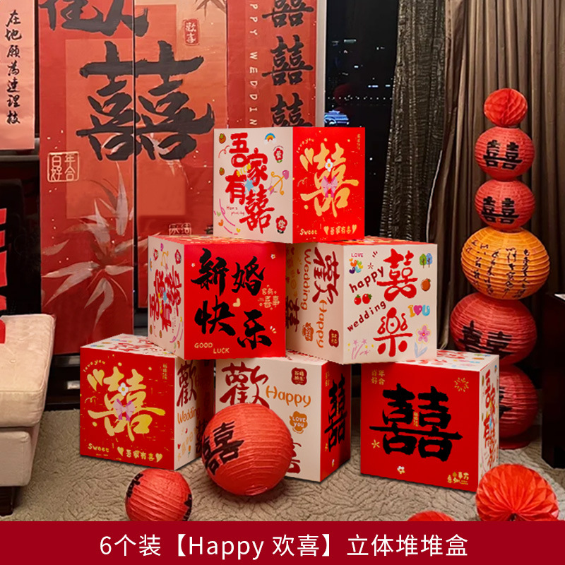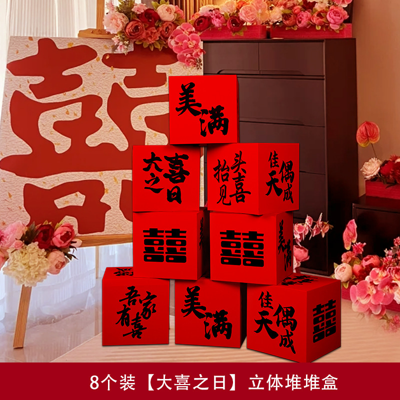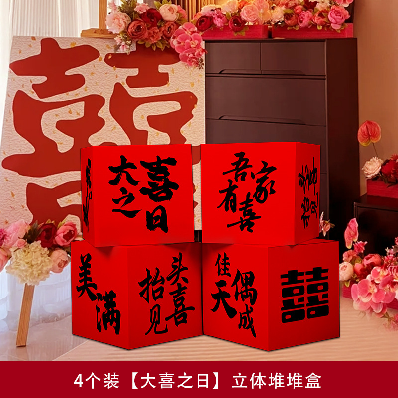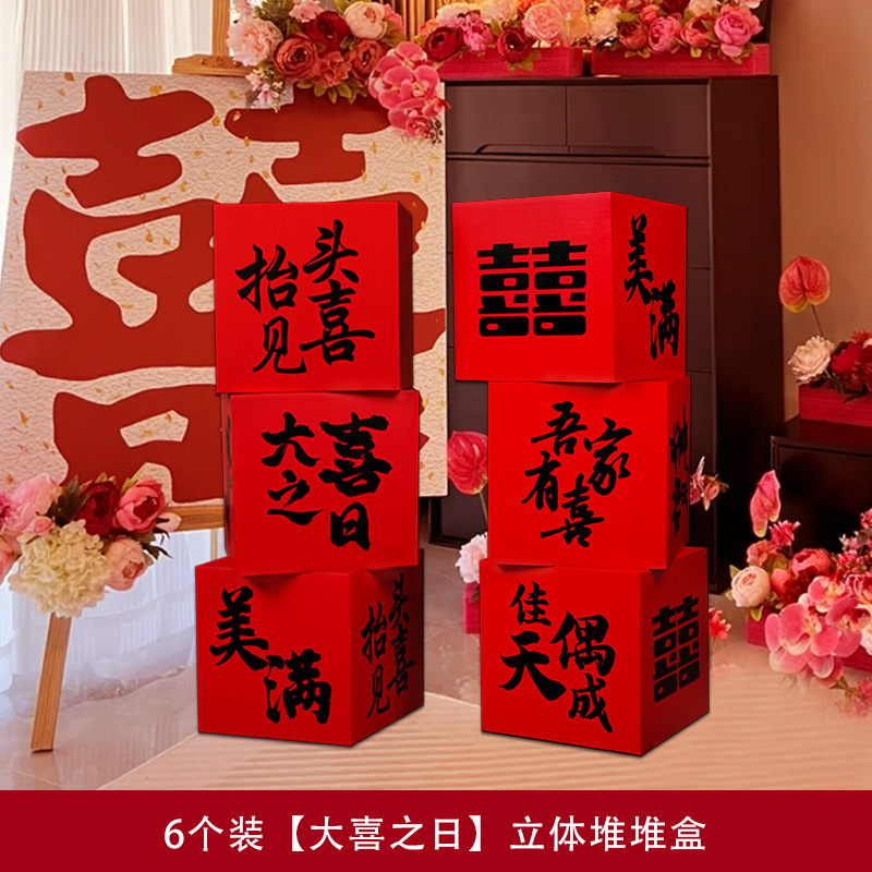 婚房布置套装堆堆喜盒结婚礼客厅立体喜字落地摆件男女方拍照装饰