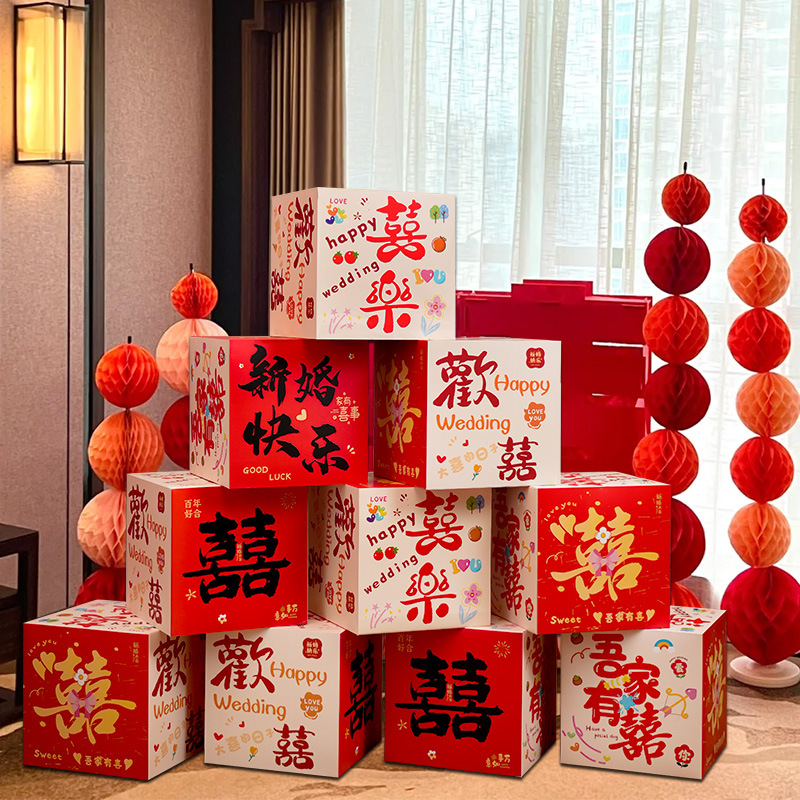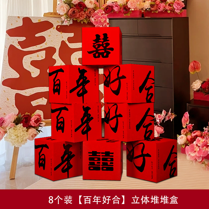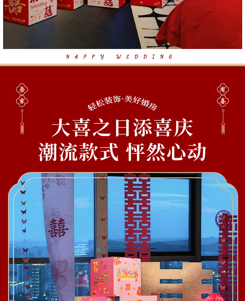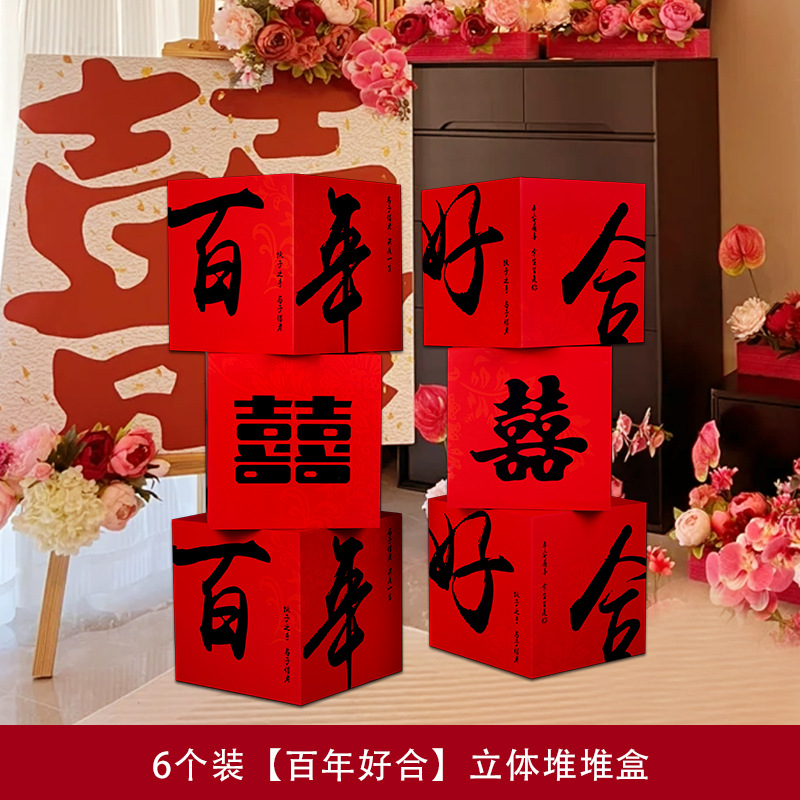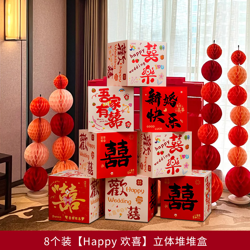 婚房布置套装堆堆喜盒结婚礼客厅立体喜字落地摆件男女方拍照装饰