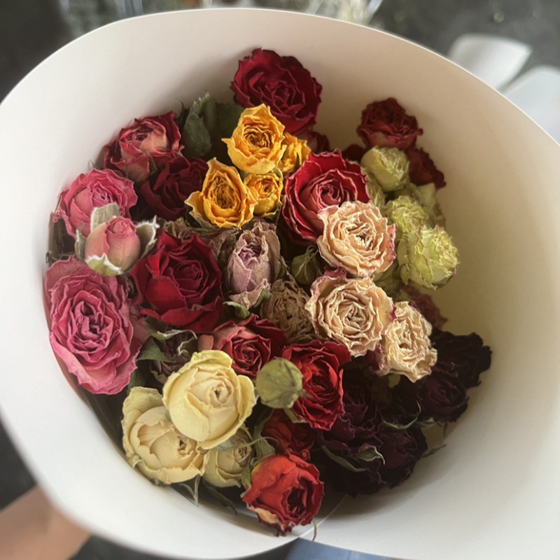 高品质现采鲜花,经过高温烤制而成的干花,不仅色彩鲜艳,长久耐放,而且还最大限度保留了鲜花的花型和姿态