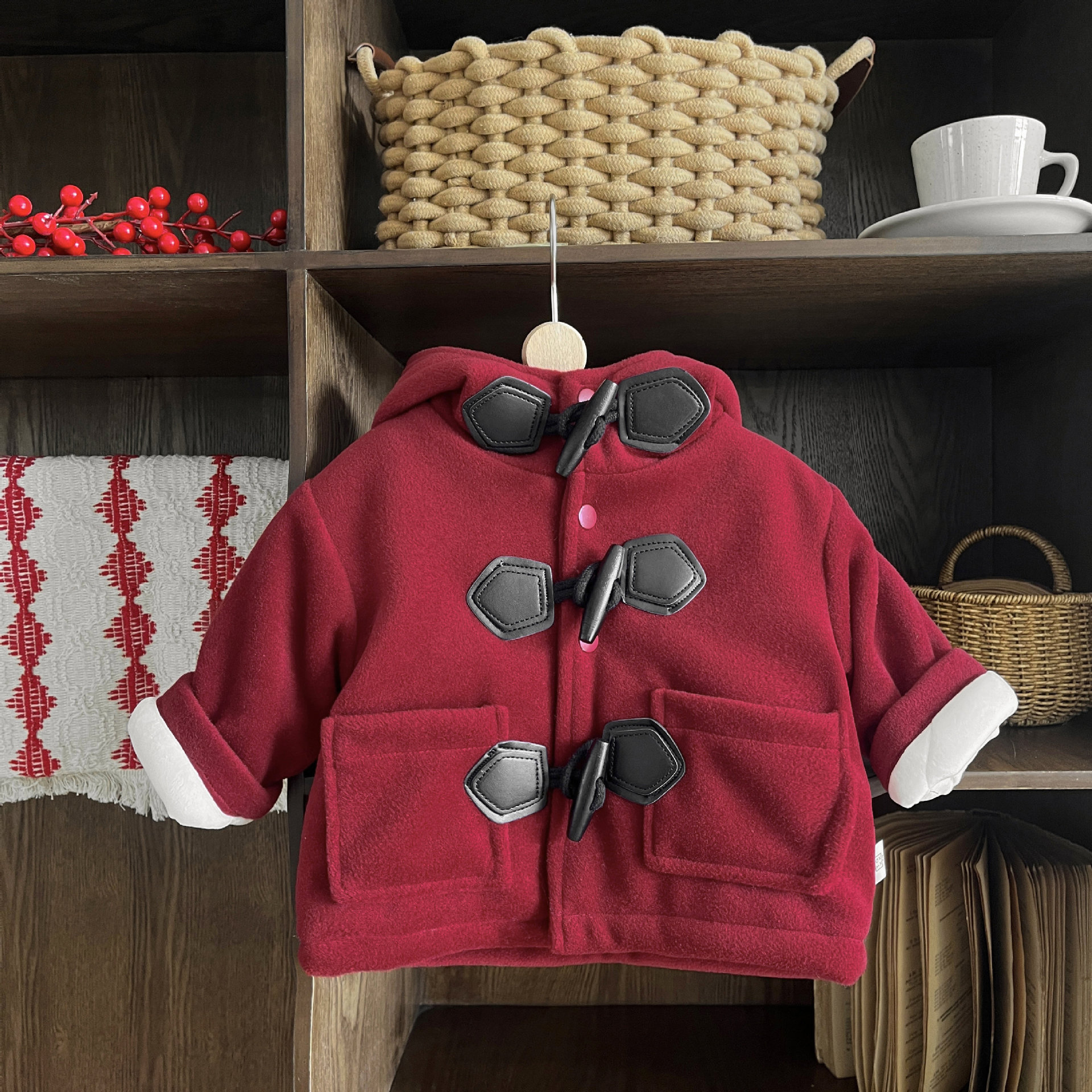 宝宝冬季圣诞红色喜庆大衣儿童洋气棉袄加厚棉服宝宝过年保暖外套