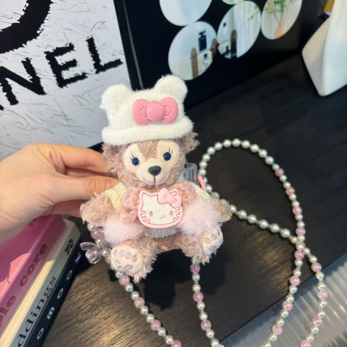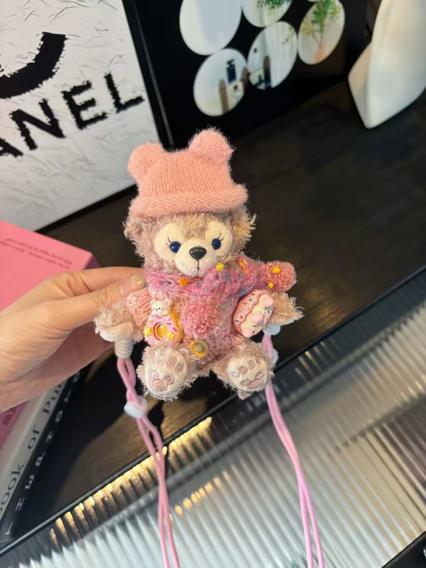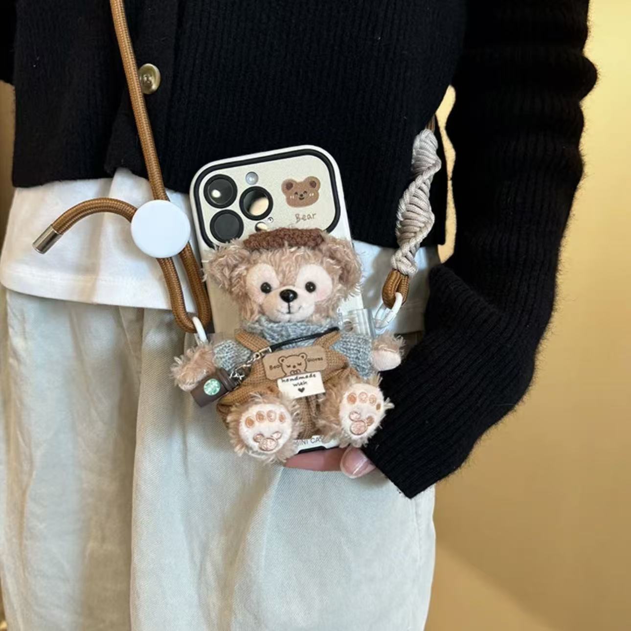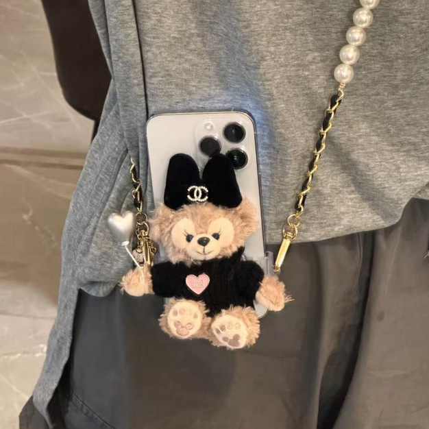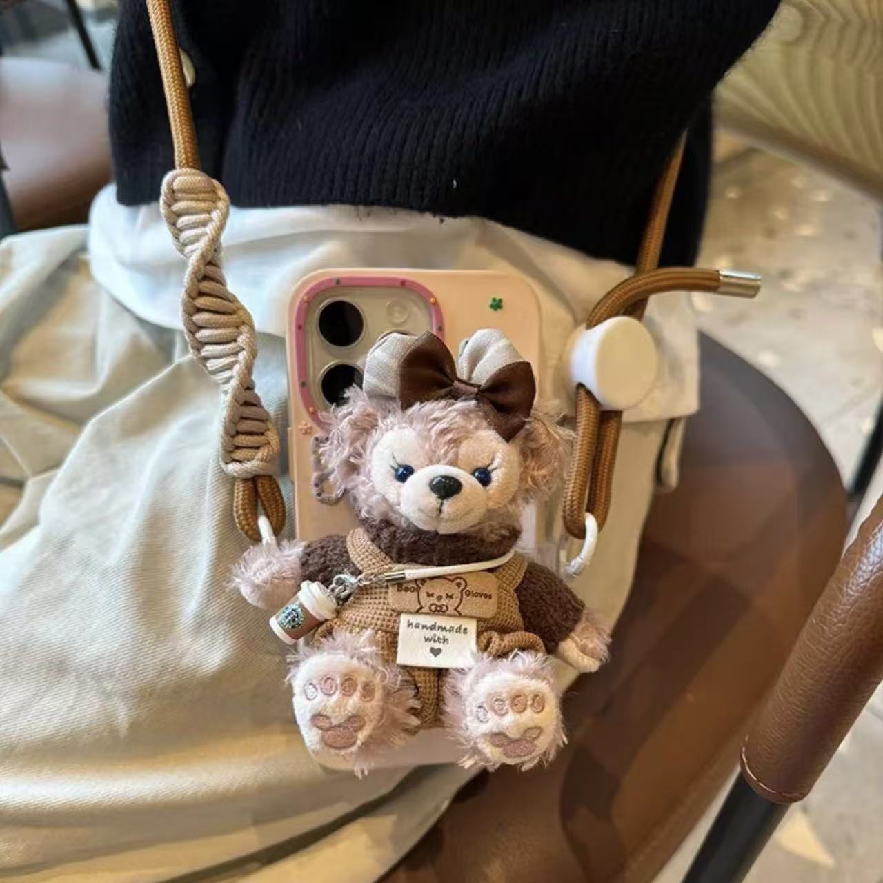 玫玫达菲卡通毛绒玩具可爱手机背夹斜挎挂绳装饰彩色