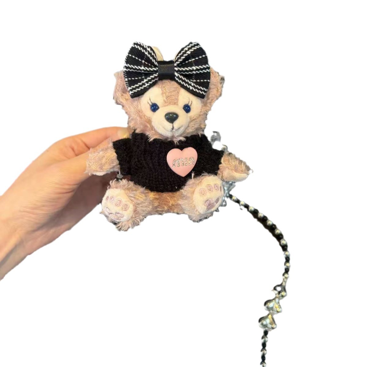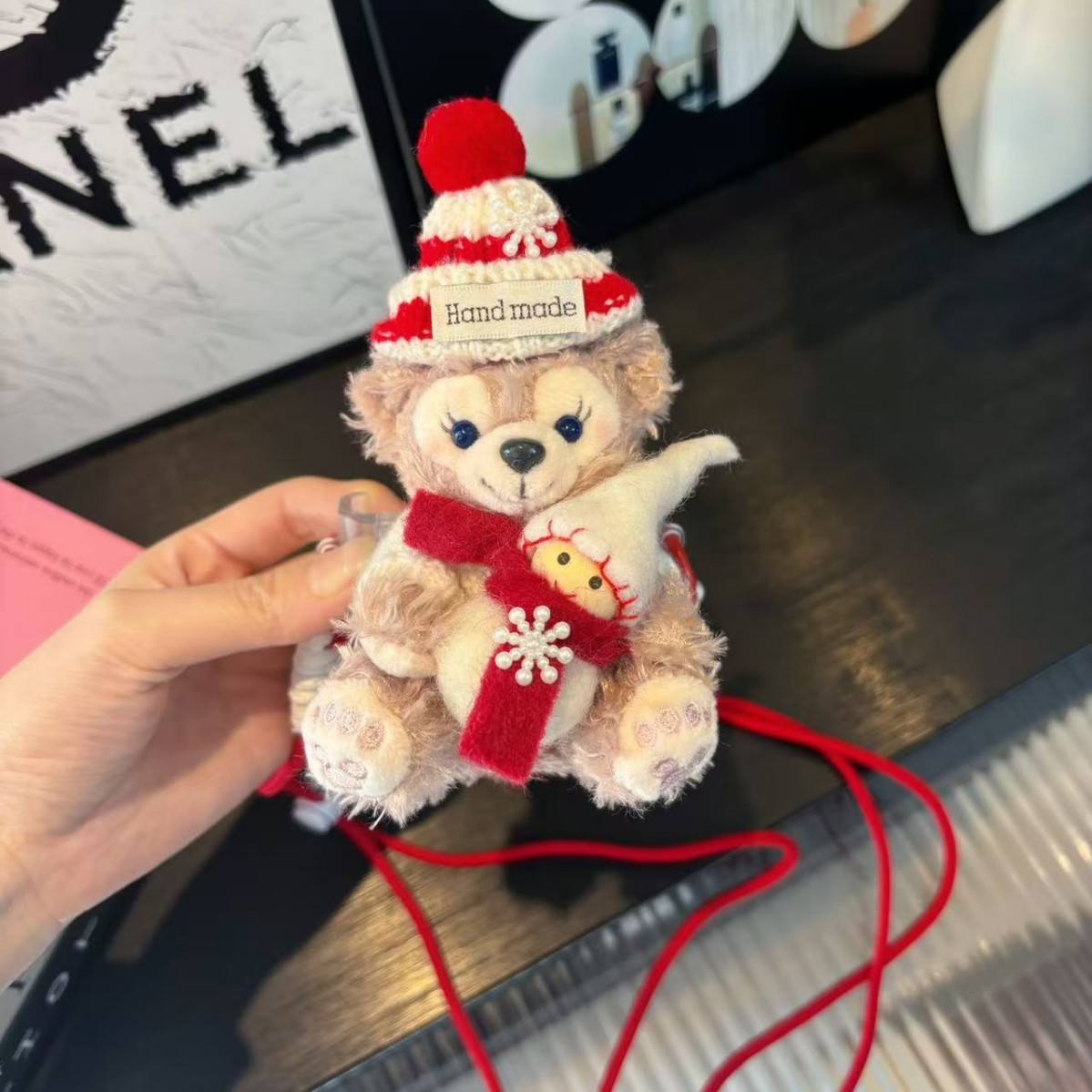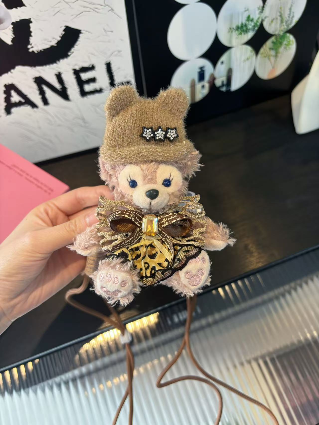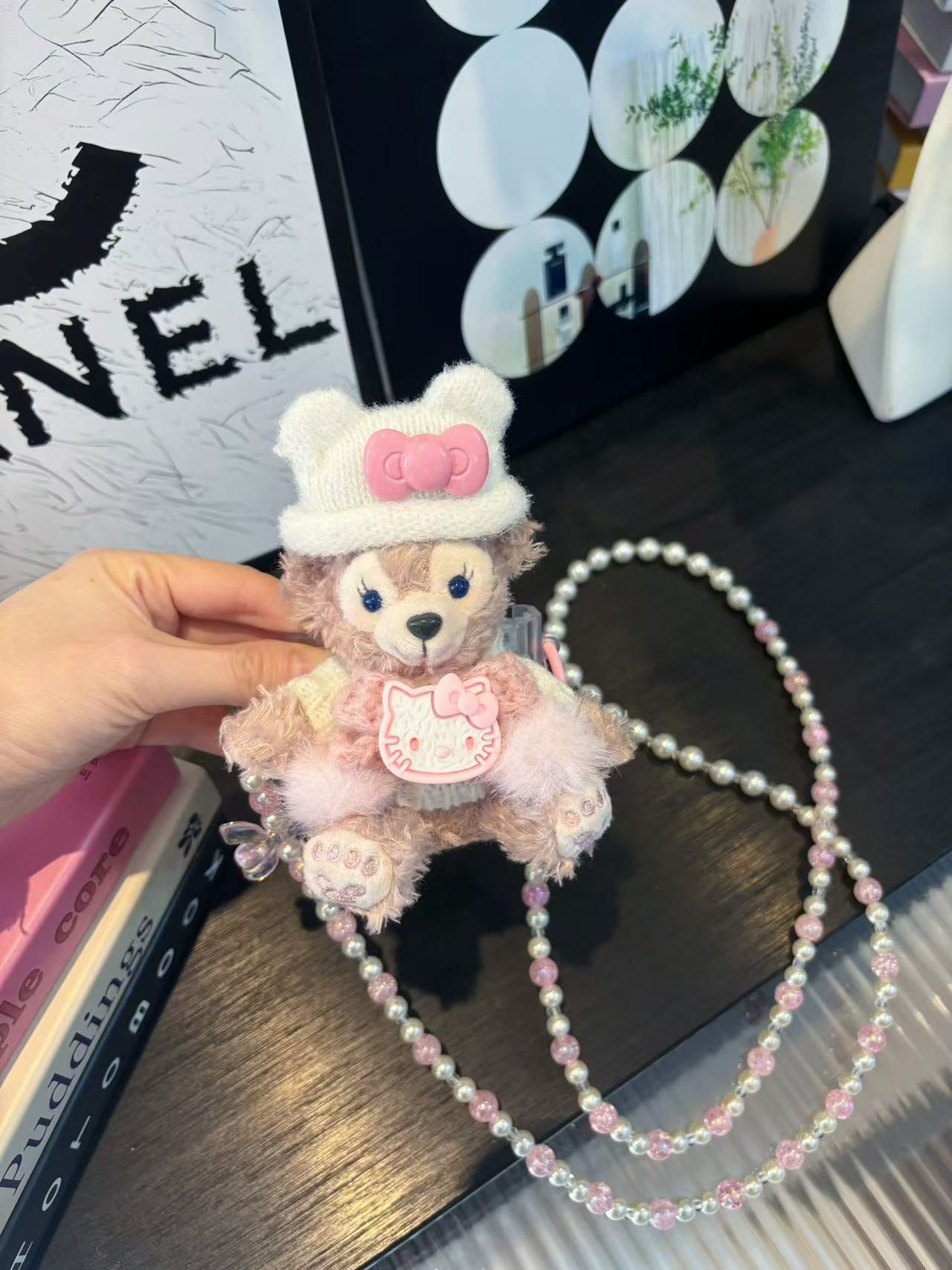 玫玫达菲卡通毛绒玩具可爱手机背夹斜挎挂绳装饰彩色