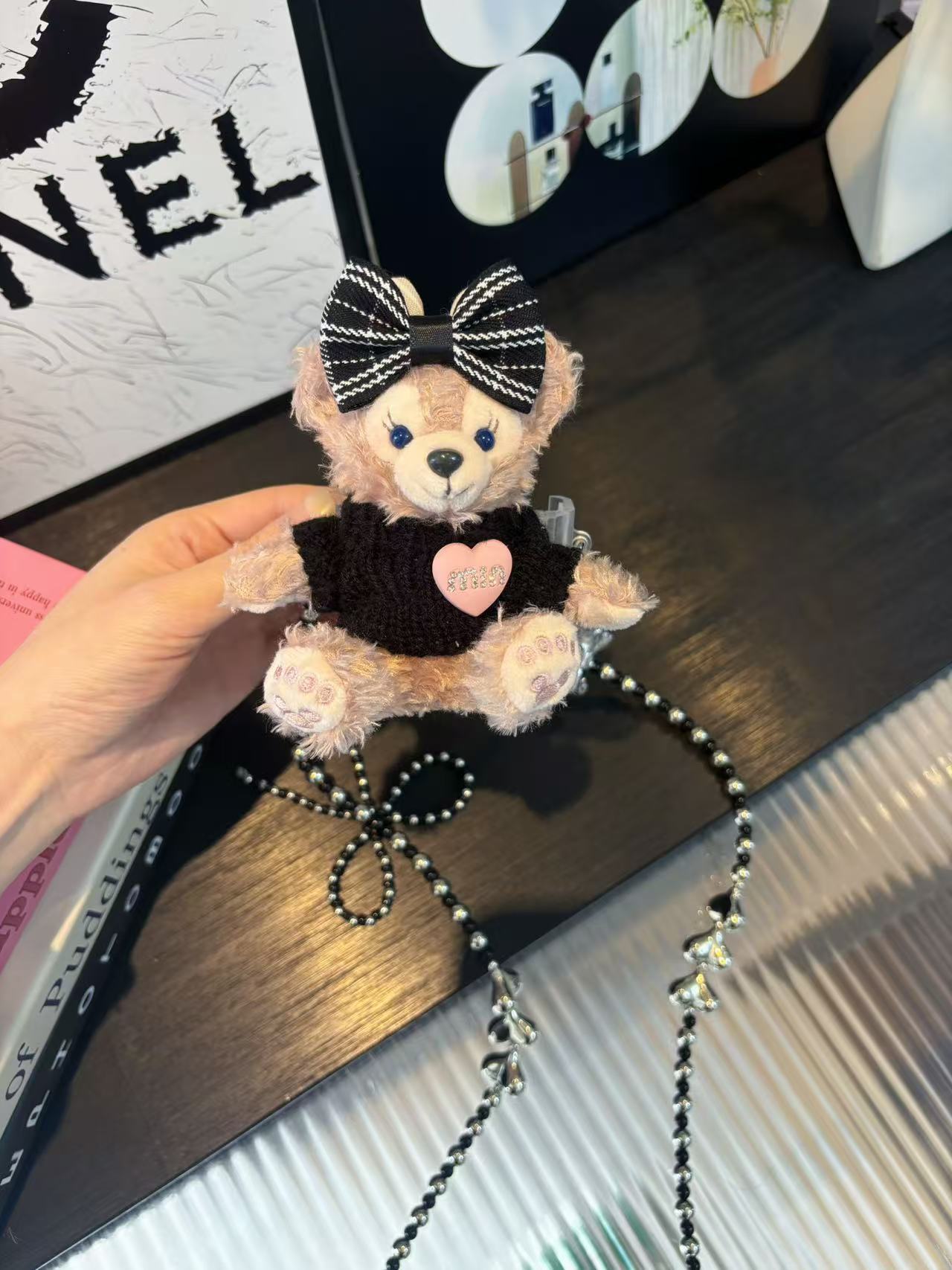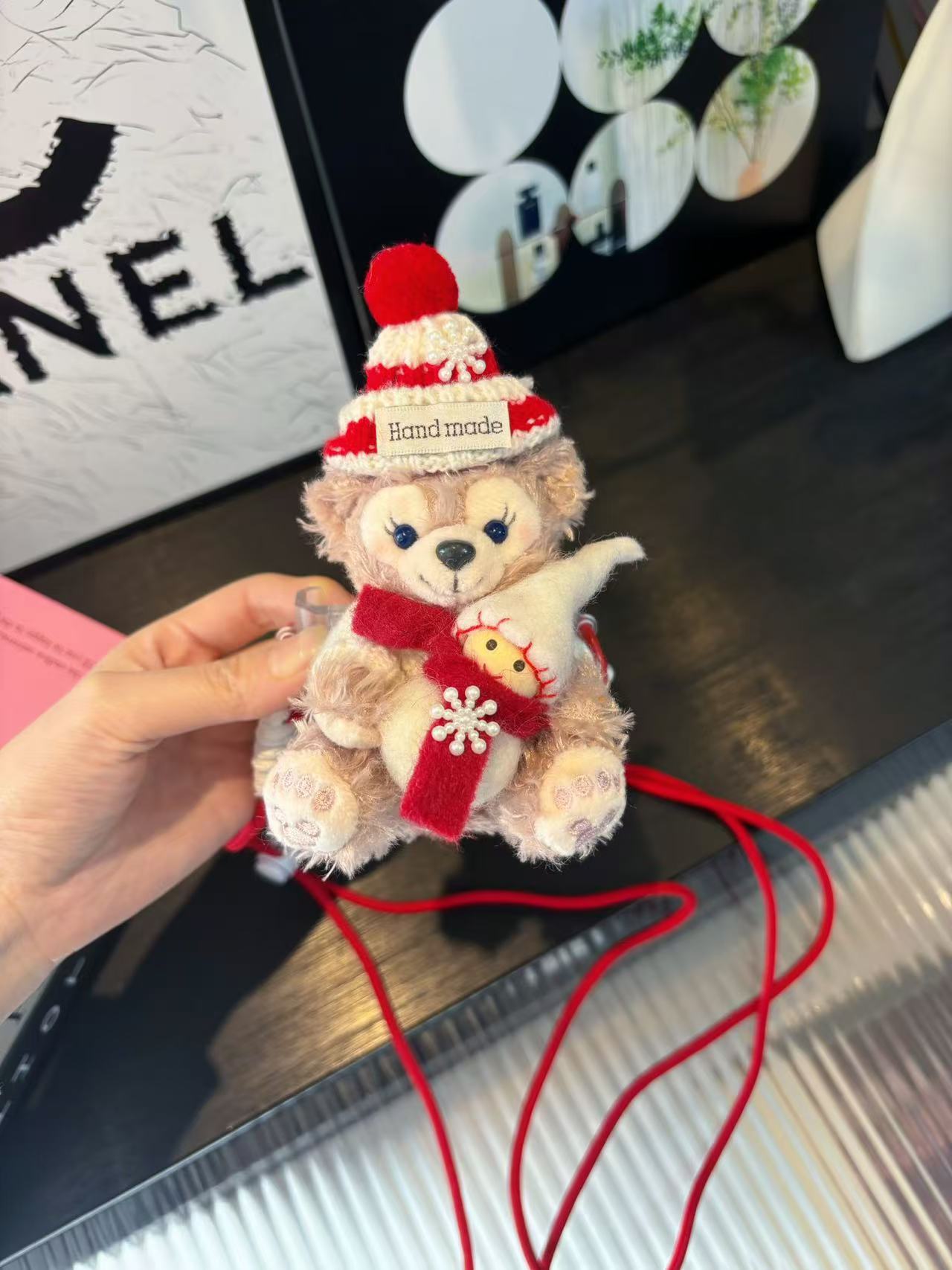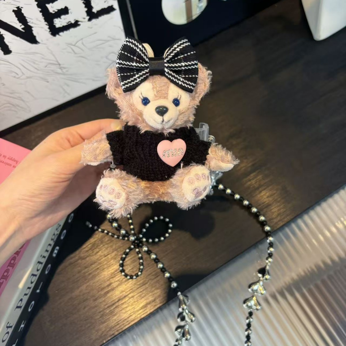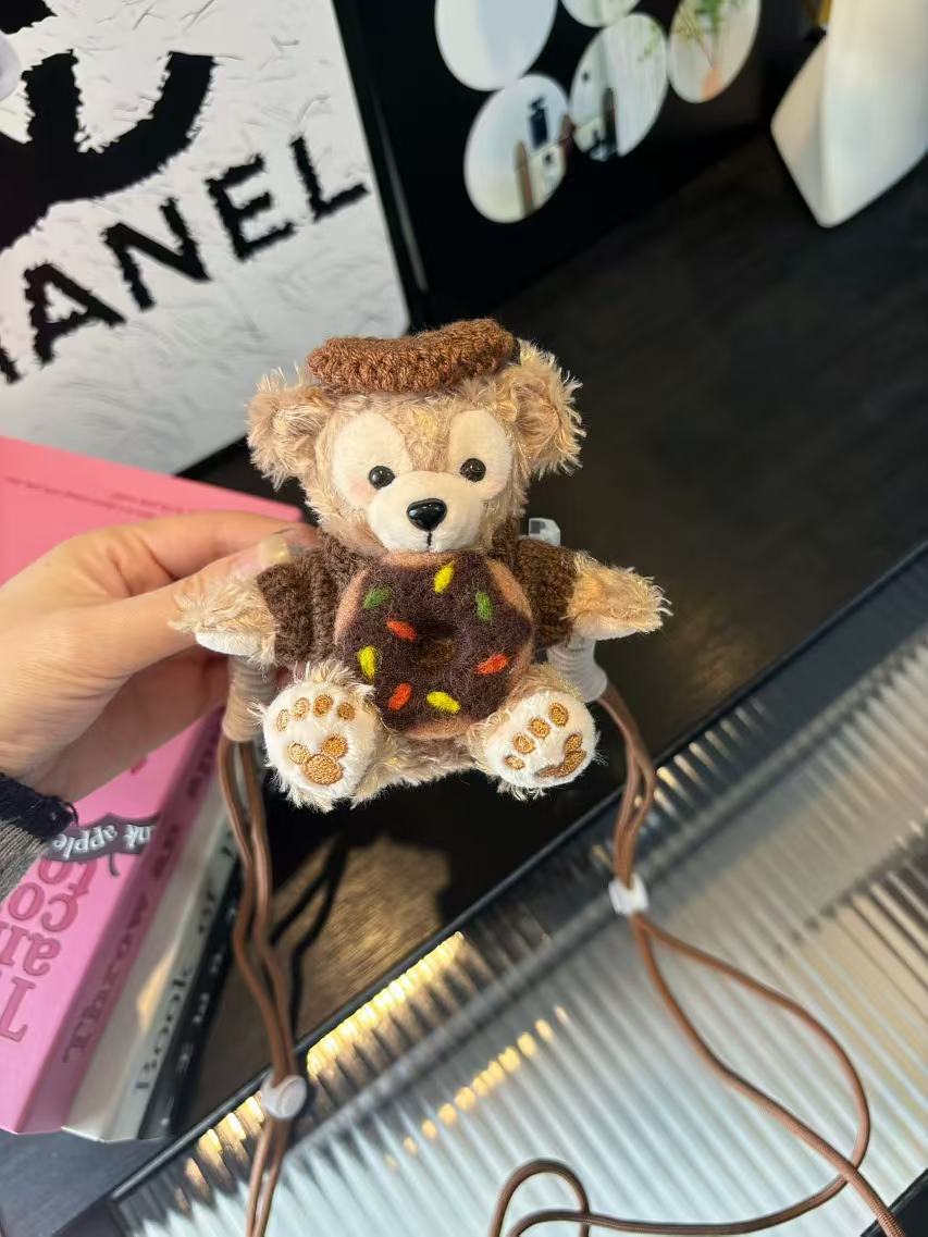 玫玫达菲卡通毛绒玩具可爱手机背夹斜挎挂绳装饰彩色