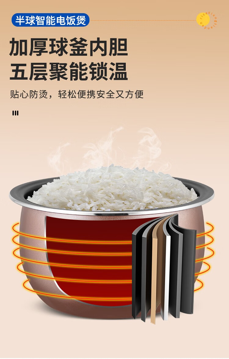 正半球电饭煲家用3升4升5L升智能预约蒸煮定时大容量多功能电饭锅