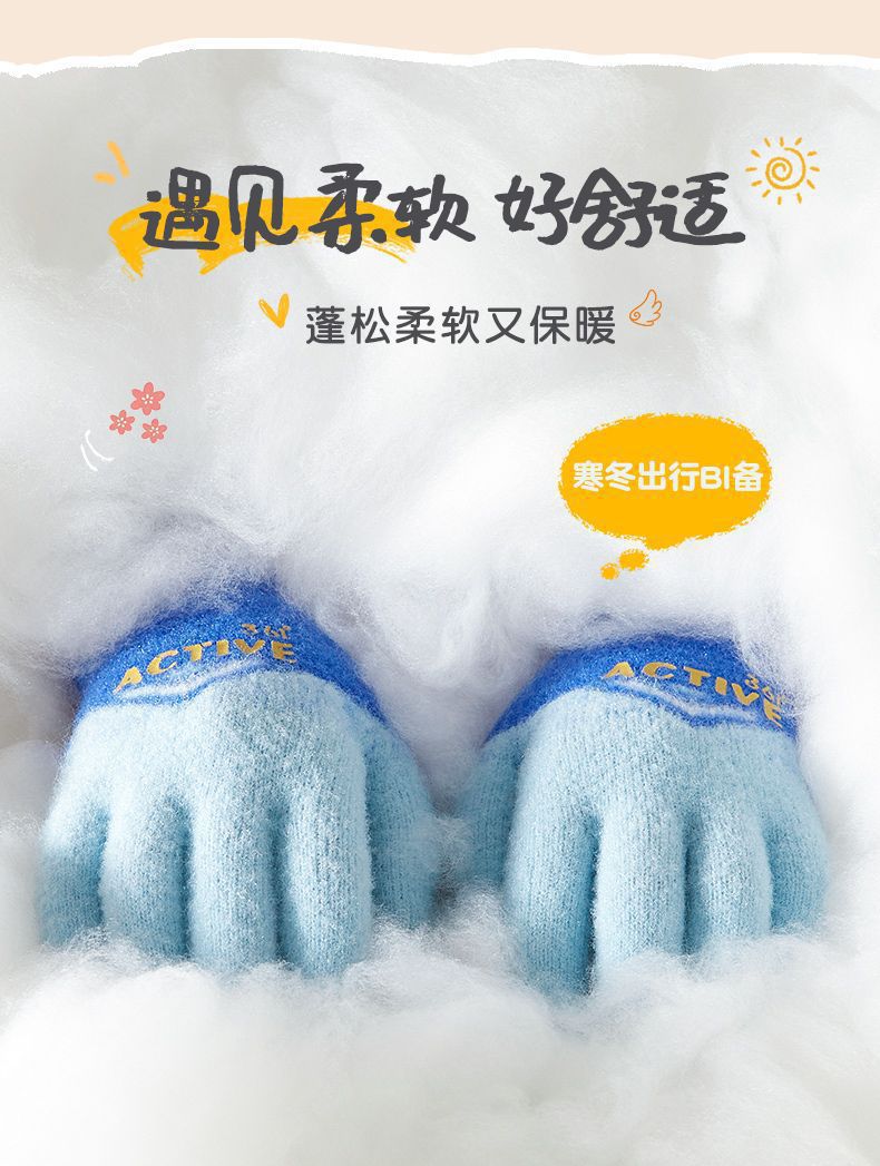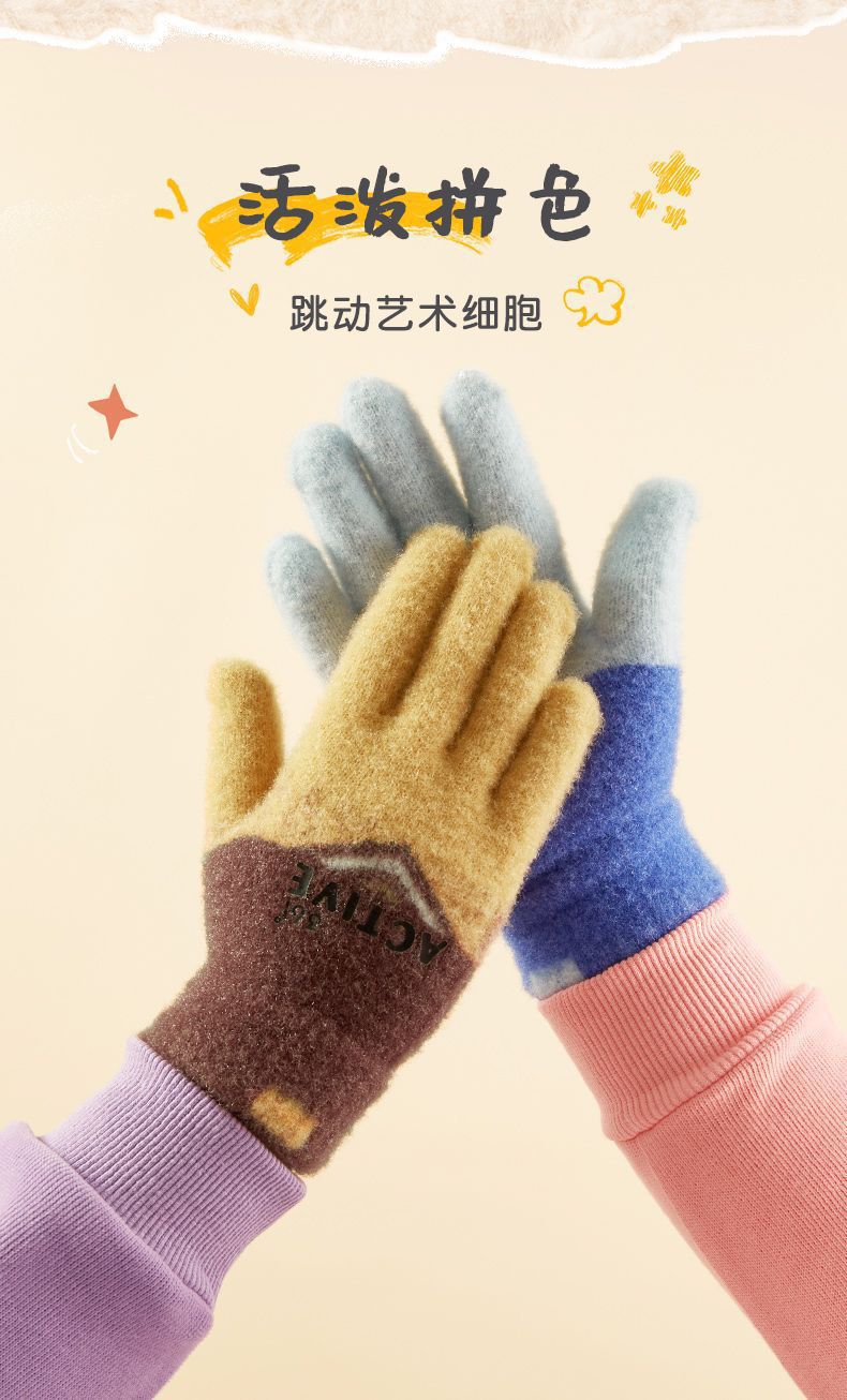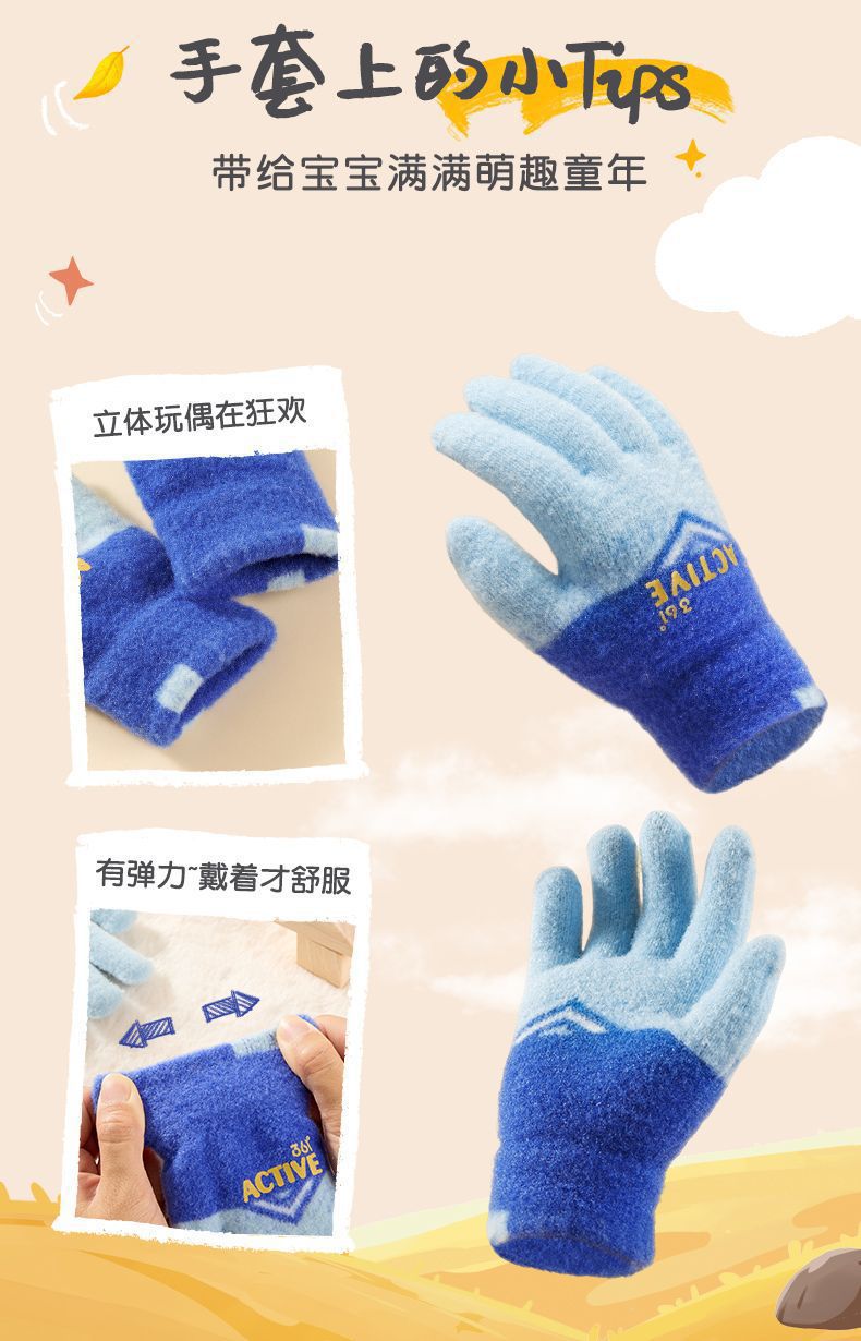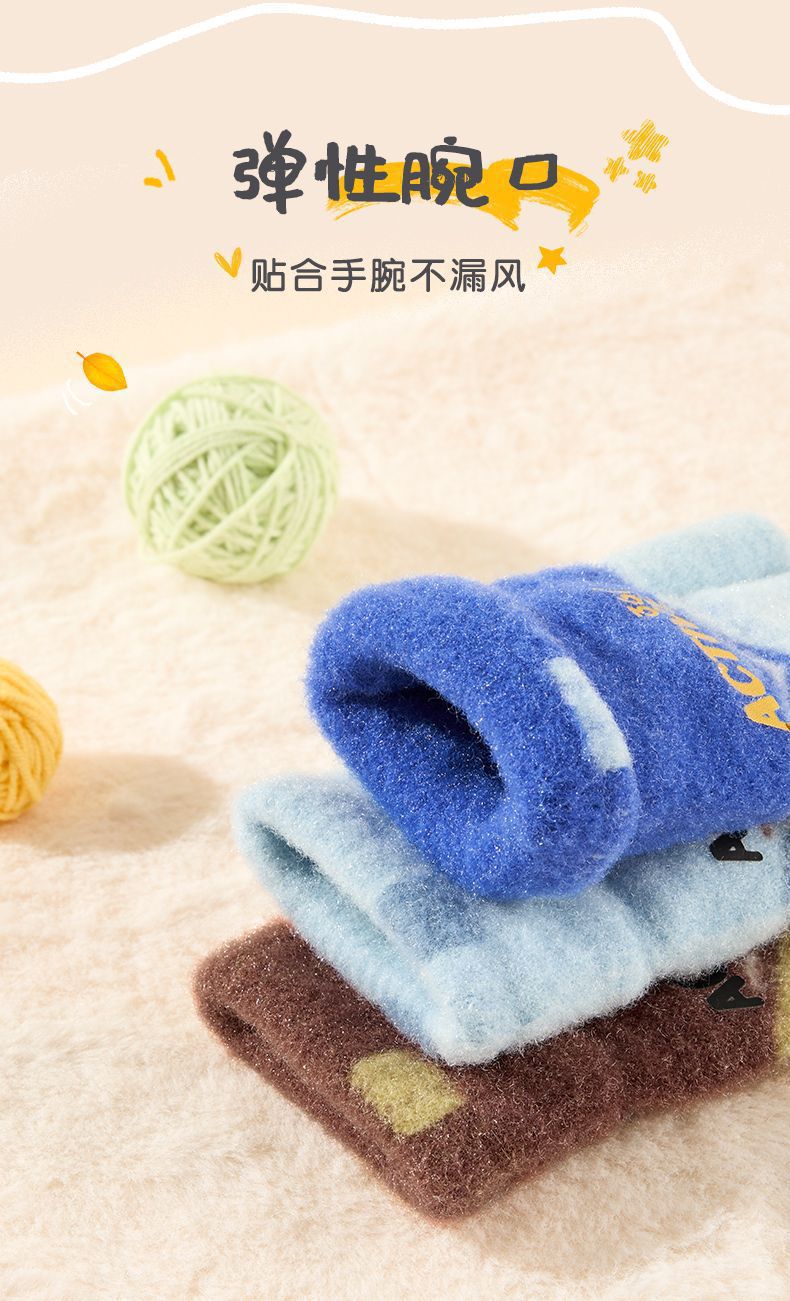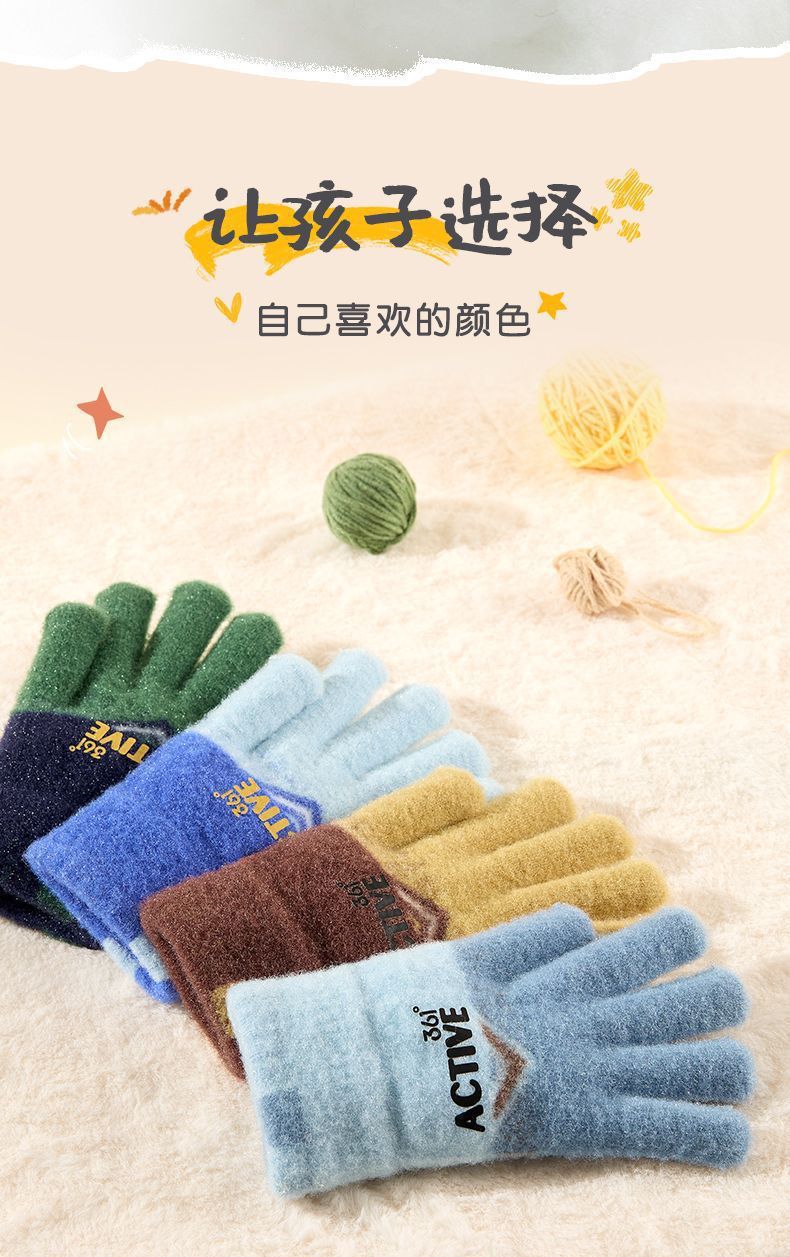 361儿童手套2024新款男女童秋冬季毛绒加厚户外防风保暖五指手套