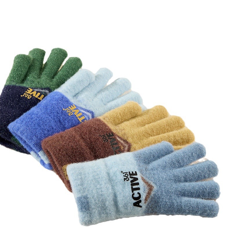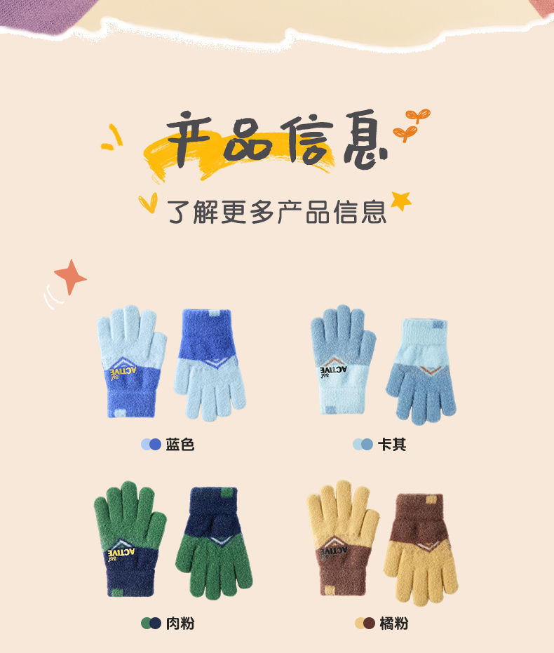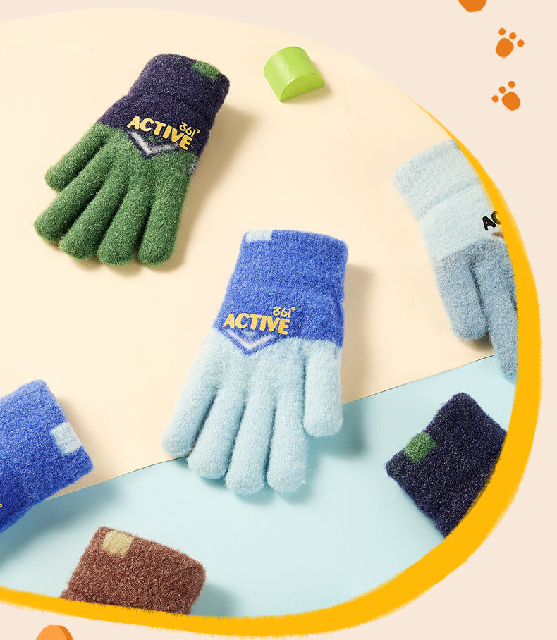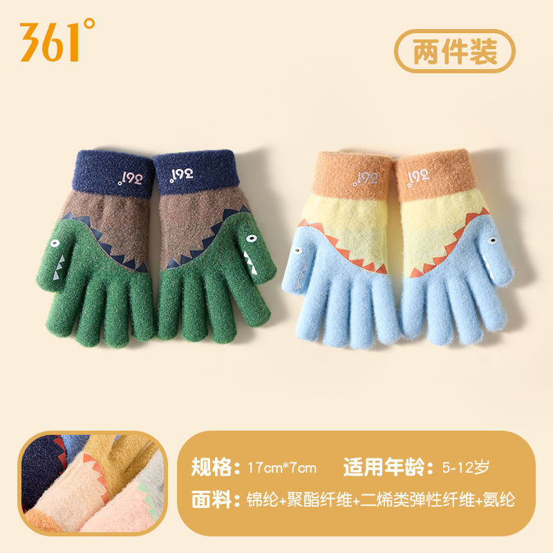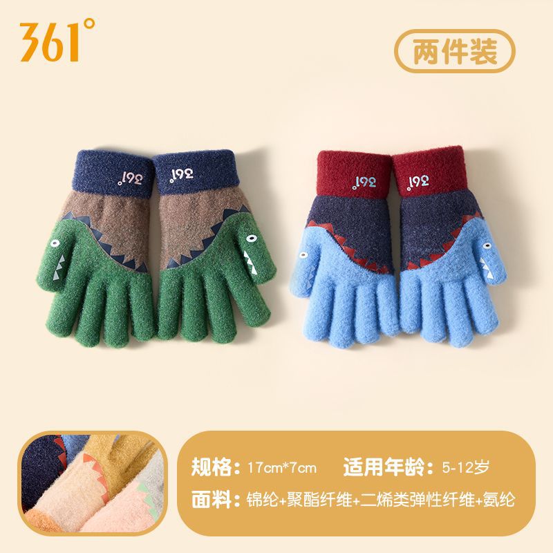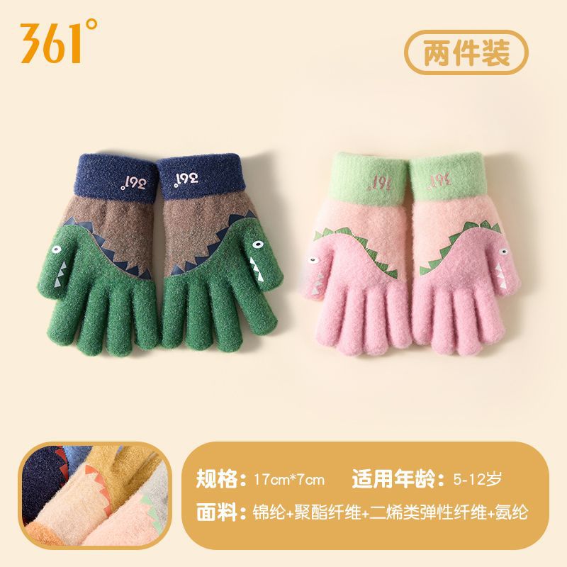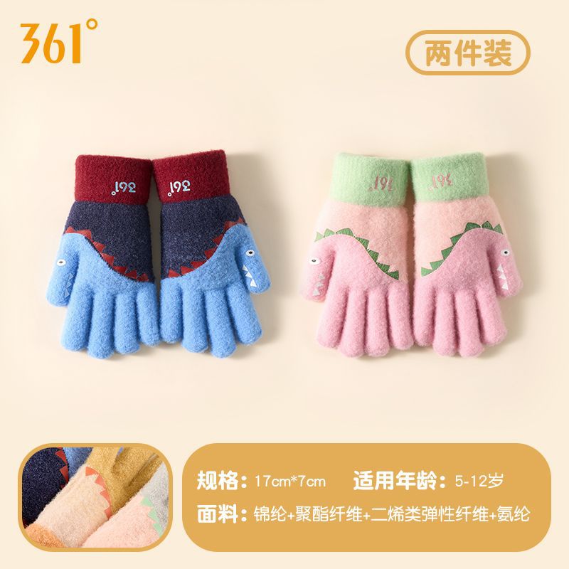 361儿童手套2024新款男女童秋冬季毛绒加厚户外防风保暖五指手套