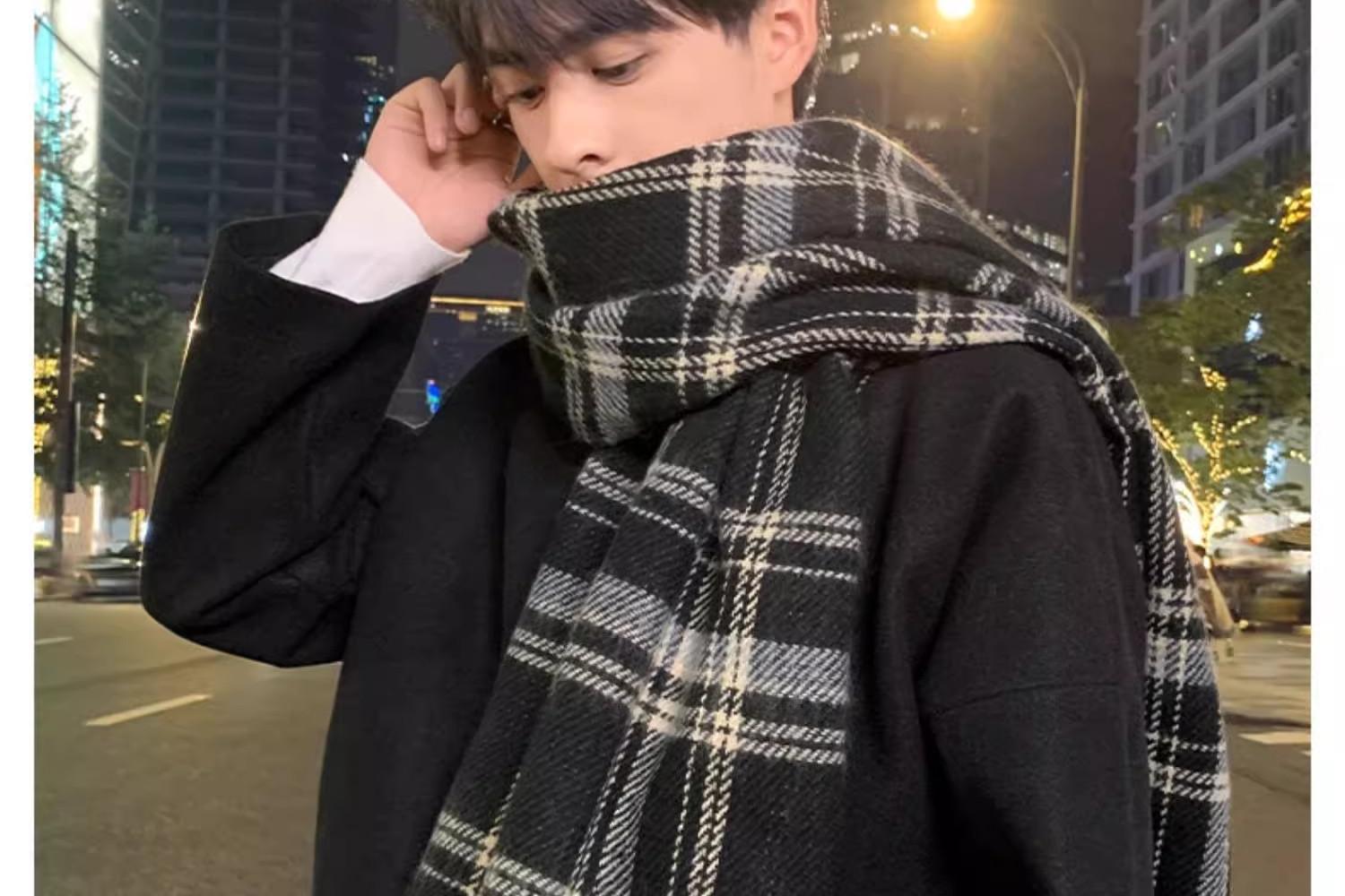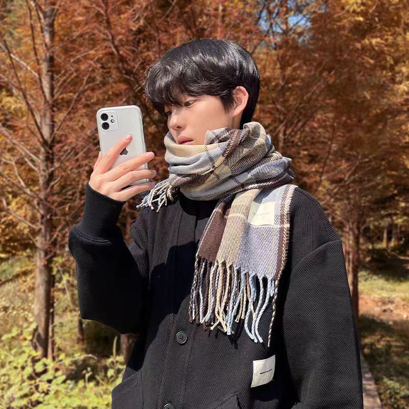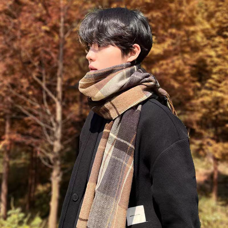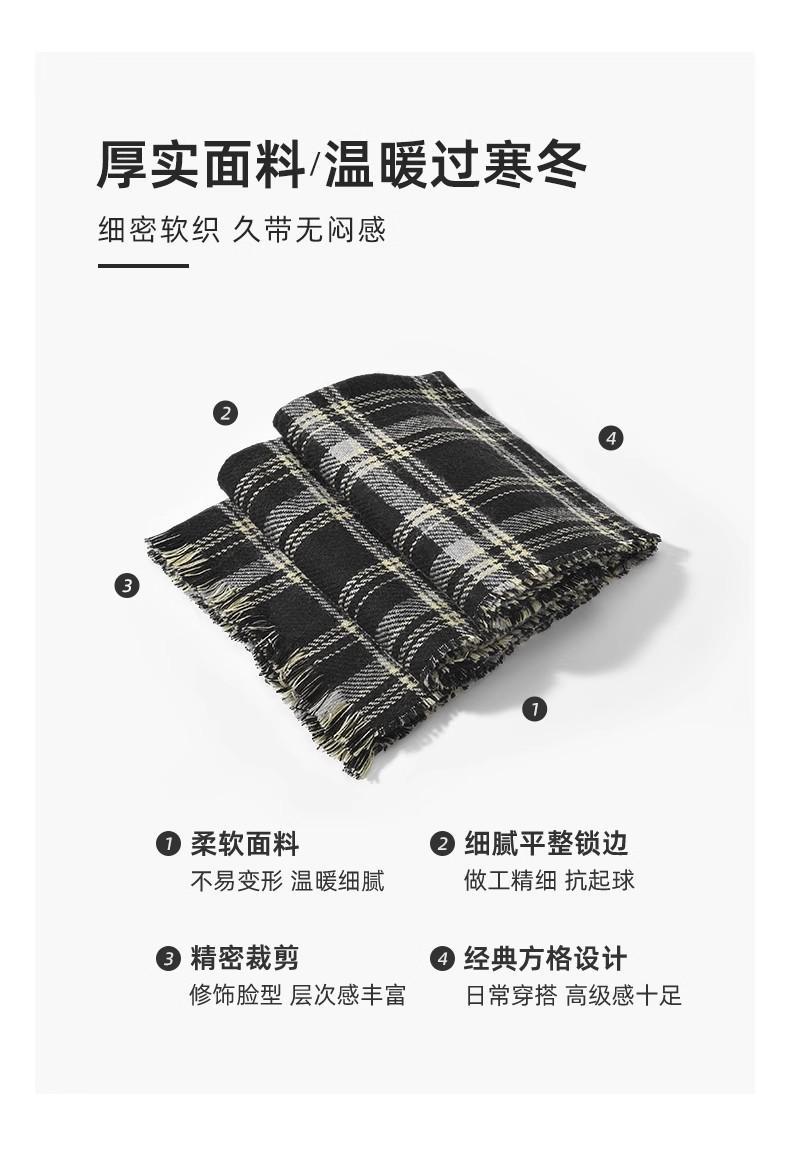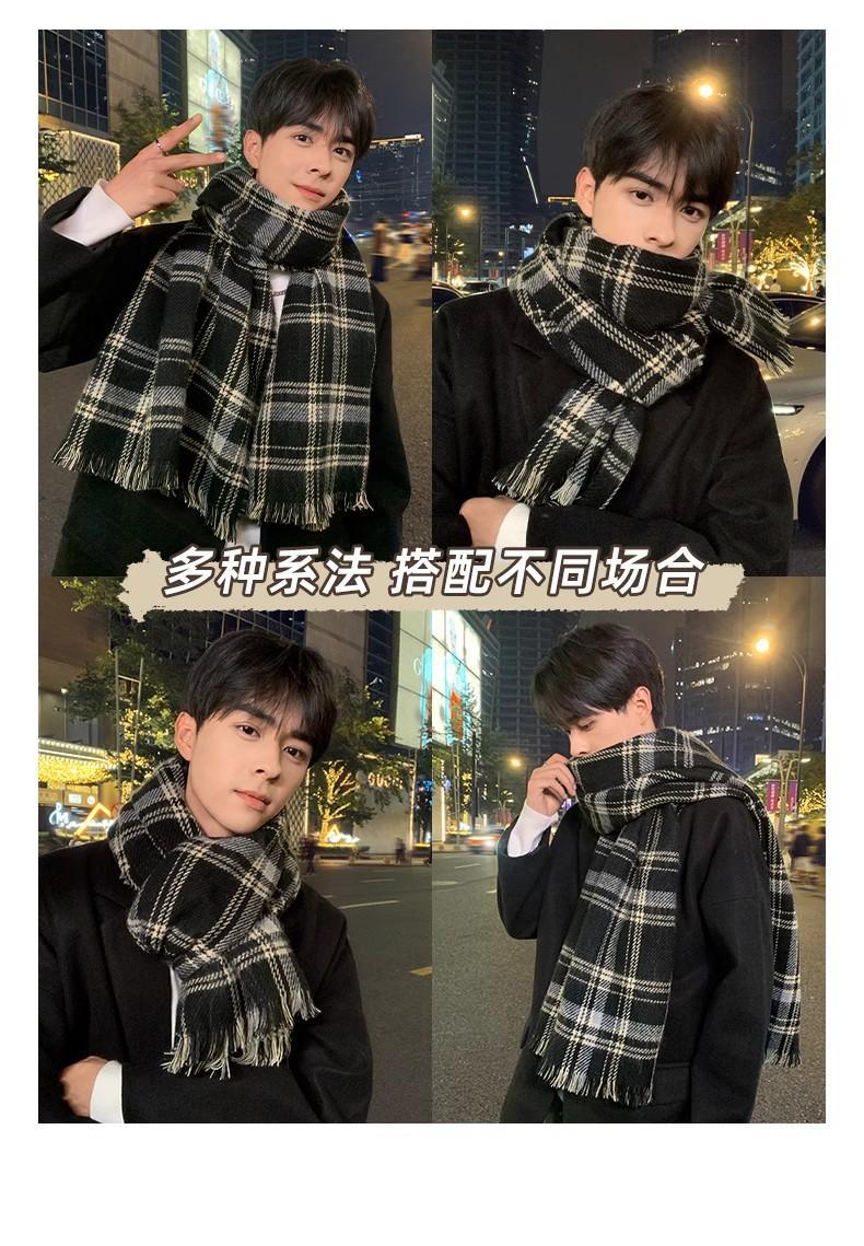 2024新款围巾男秋冬季百搭保暖男士双面格子高级感围脖送男友礼物