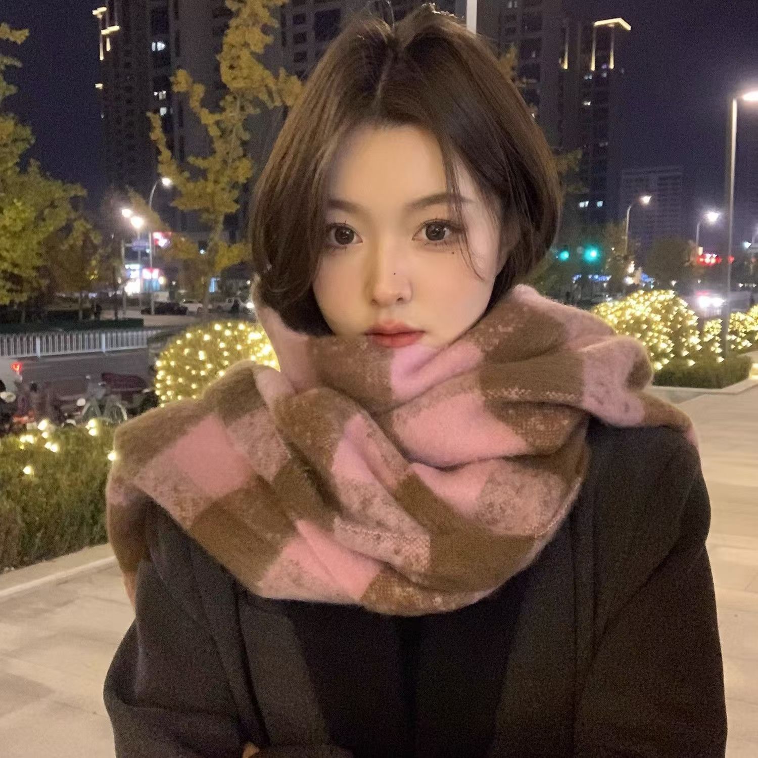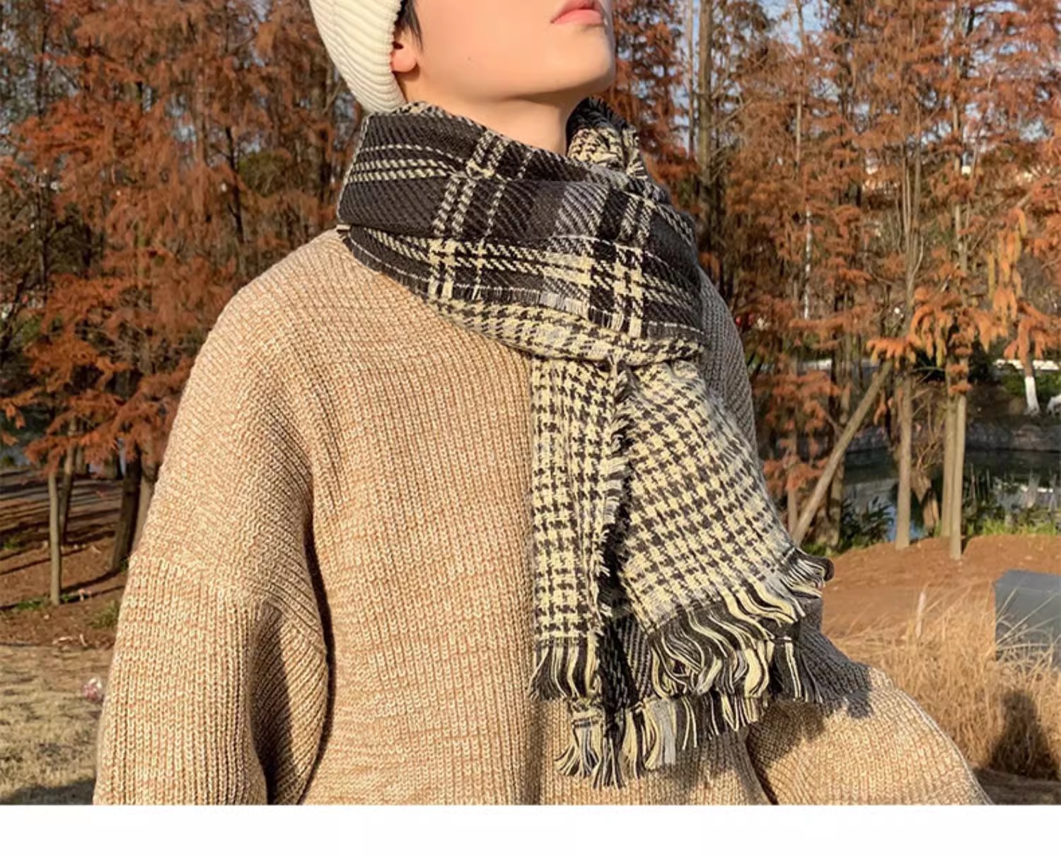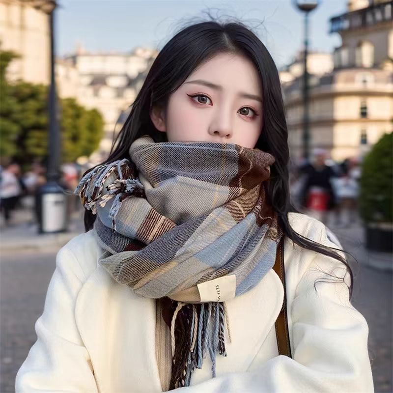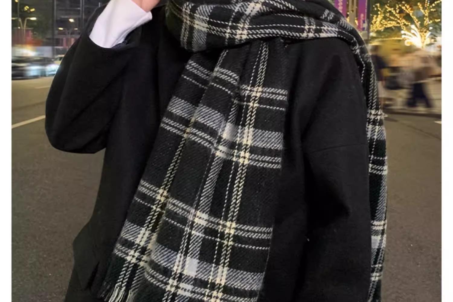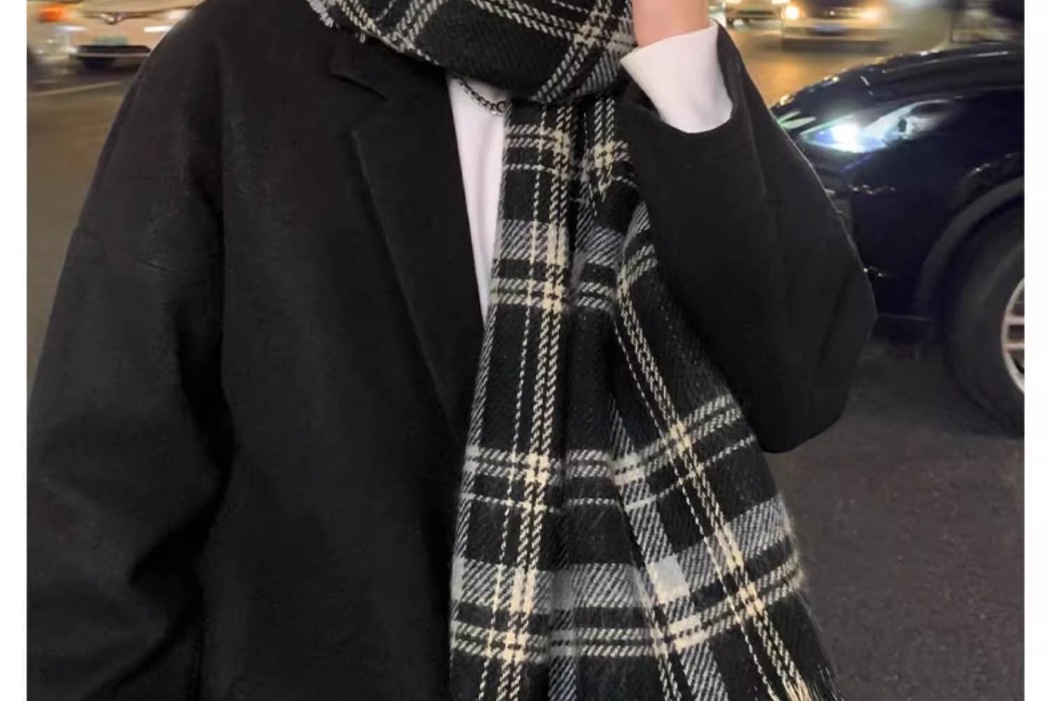2024新款围巾男秋冬季百搭保暖男士双面格子高级感围脖送男友礼物