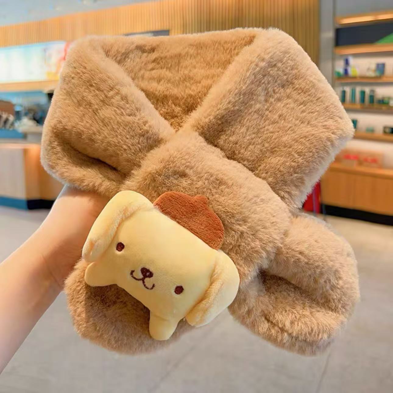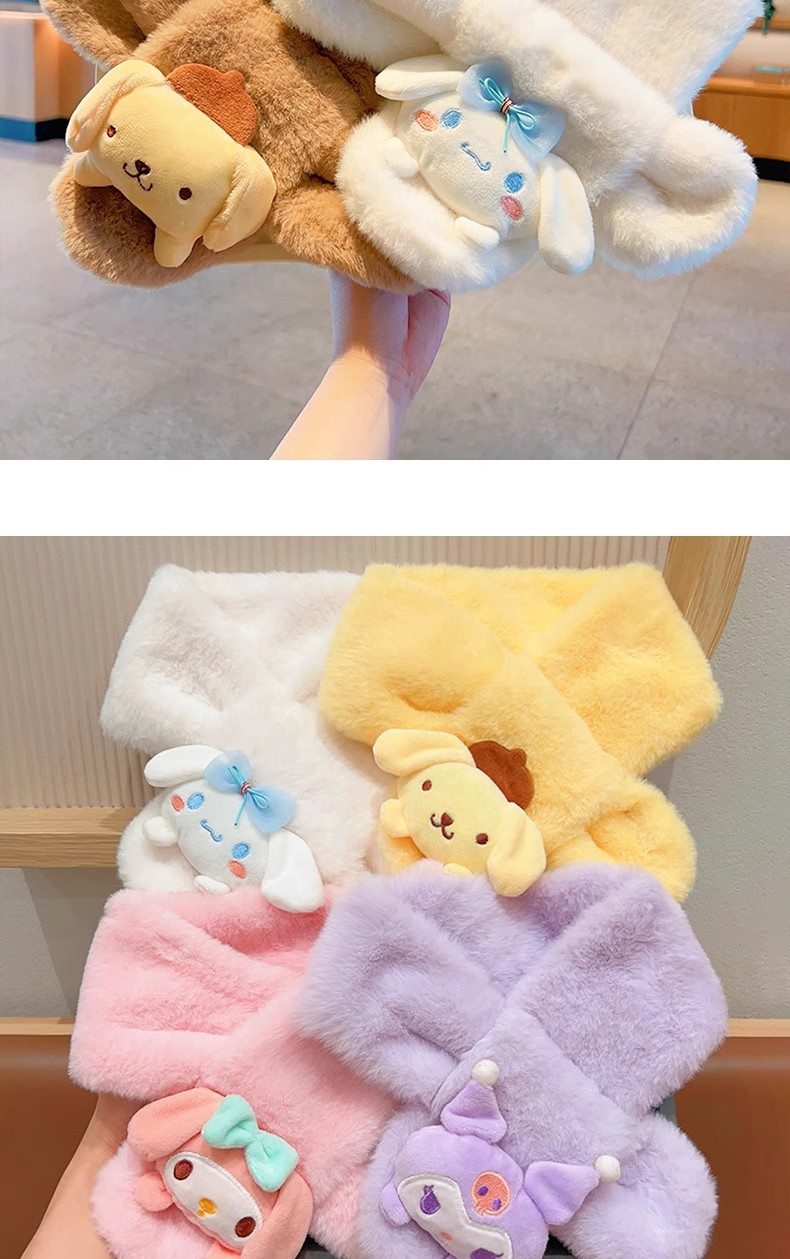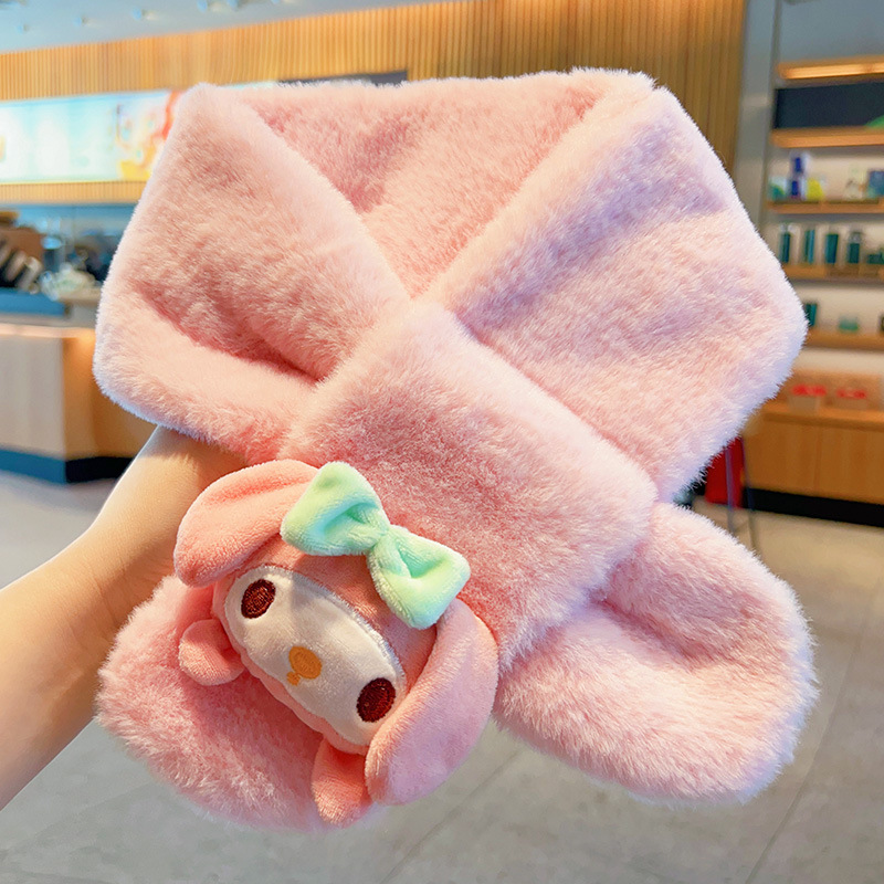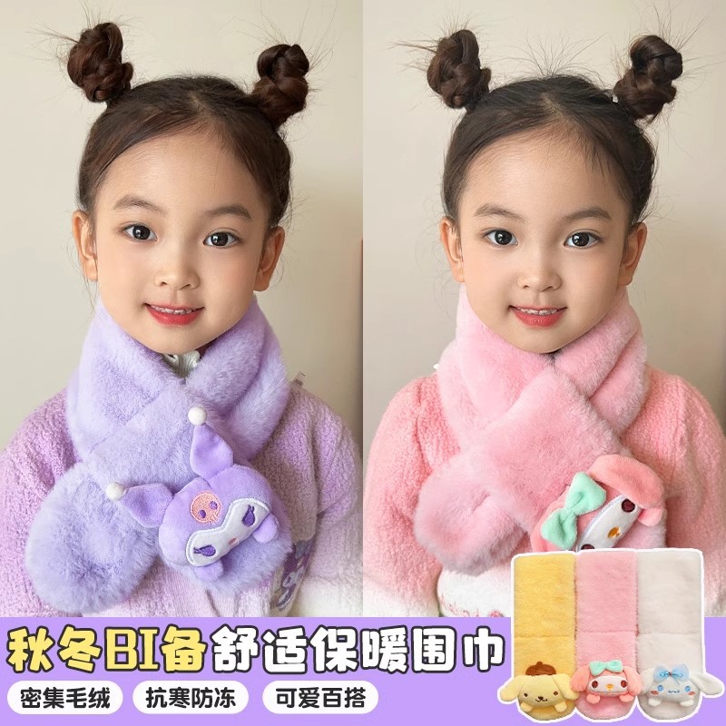库洛米儿童围巾卡通围脖秋冬新款防风保暖小女孩可爱宝宝毛绒脖套
