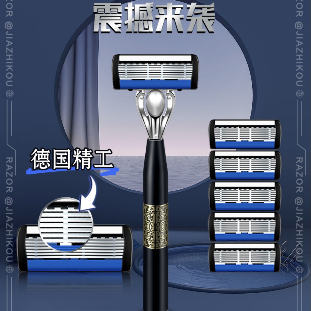 七层手动剃须刀柄 6层不锈钢刮胡刀架 单独剃须刀架刮胡刀柄批发