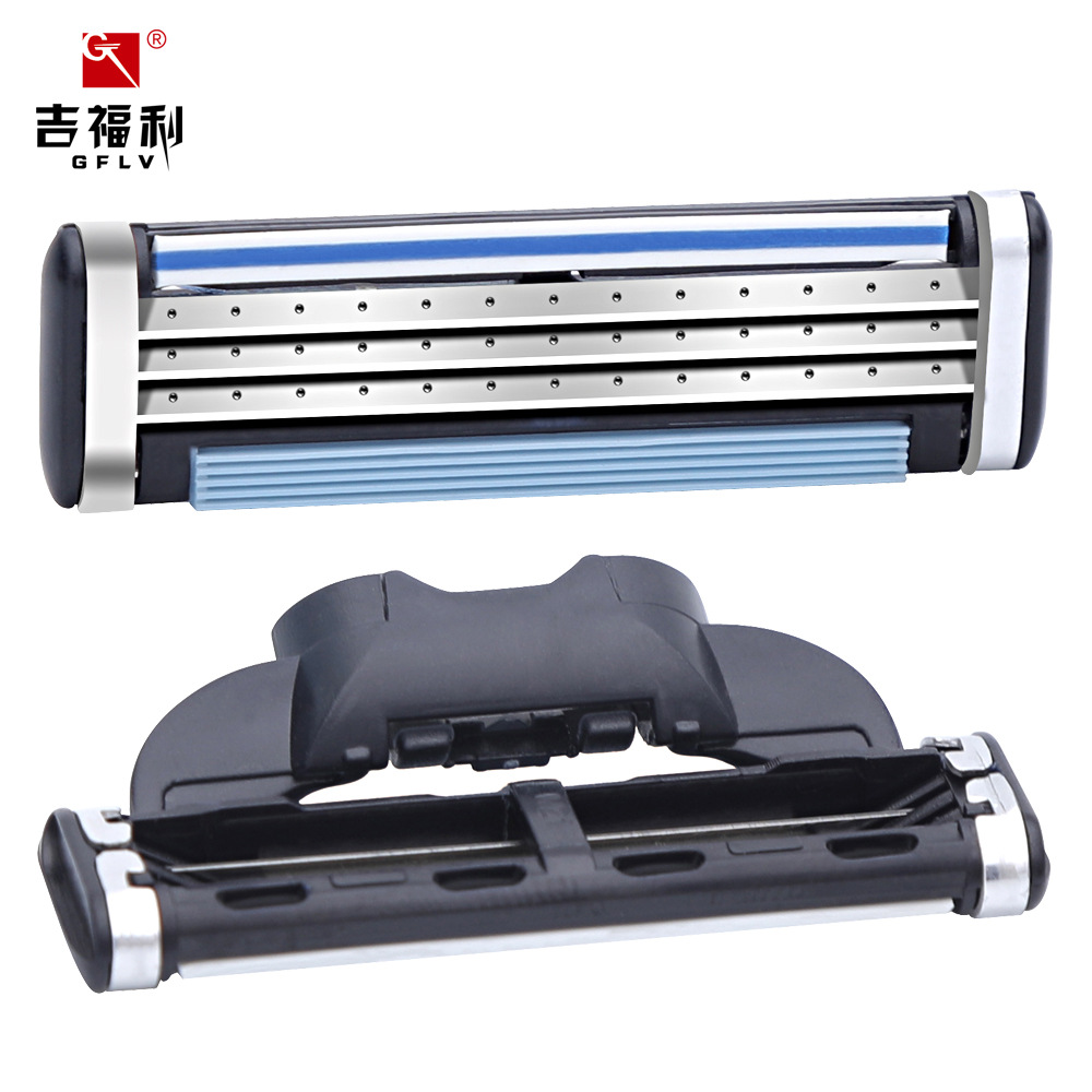 吉福利 手动剃须刀男士刮胡刀进口三层刀片4刀头老式手动刮胡刀