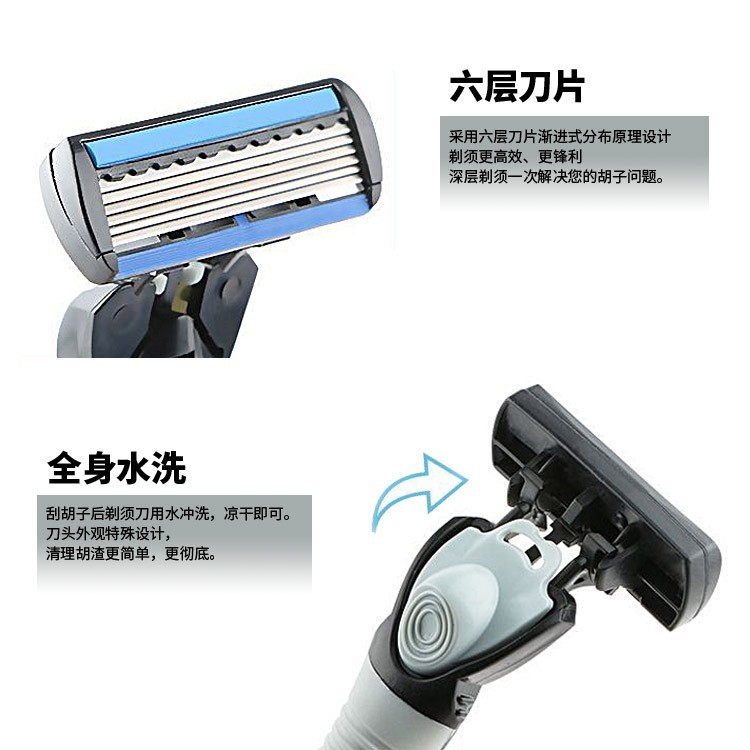 进口6层刀片手动剃须刀刮胡刀男女刮腿毛腋毛体毛脱毛刀胡子刀片