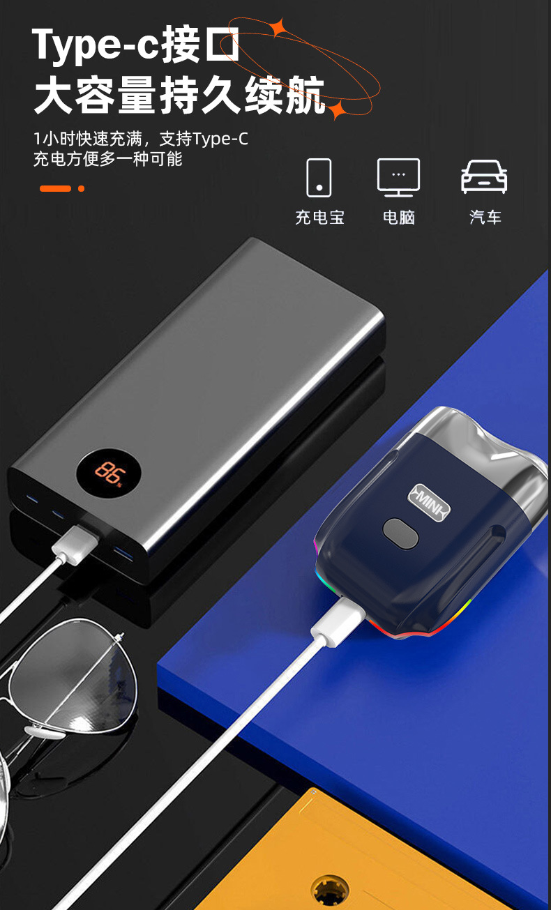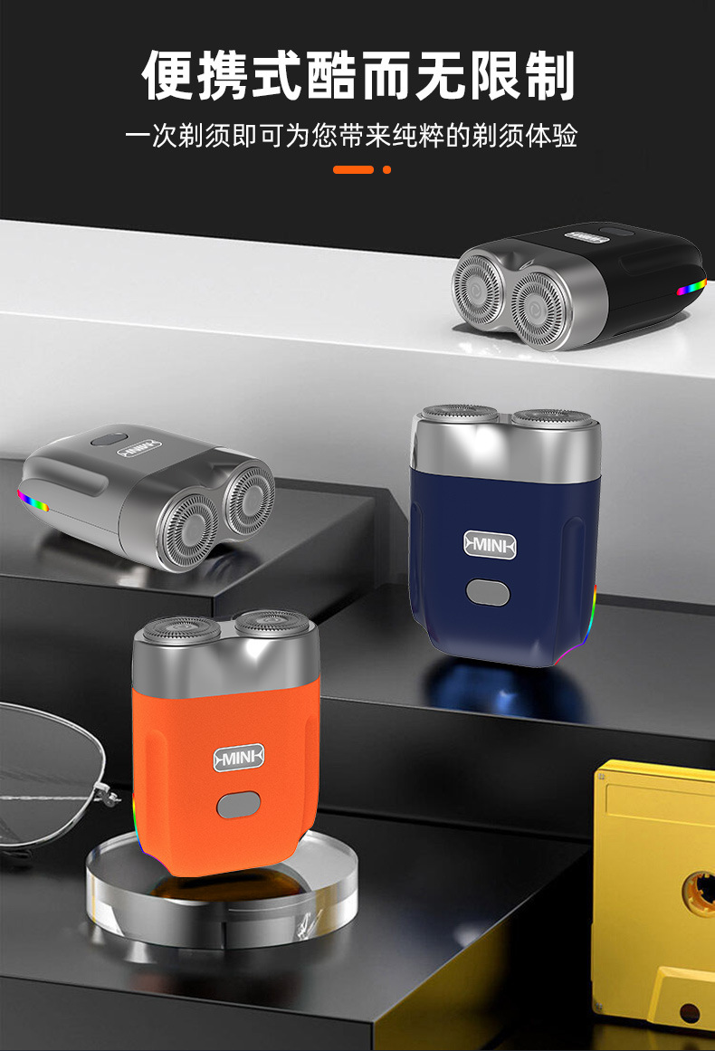 新款电动刮胡刀防水洗旅行双刀头水洗男士迷你剃须刀家用修胡刀
