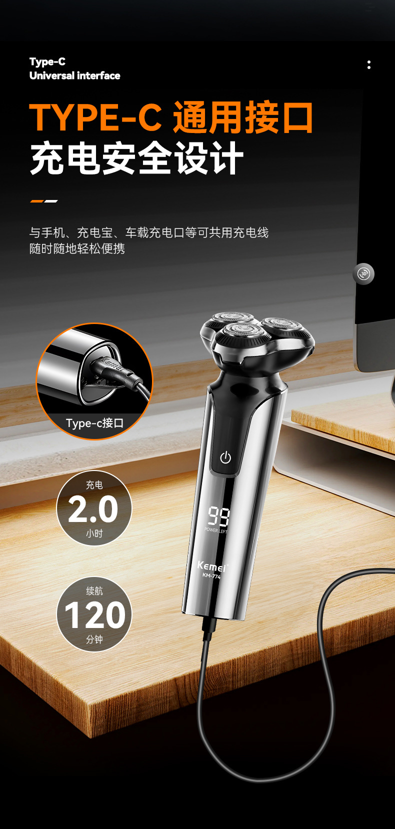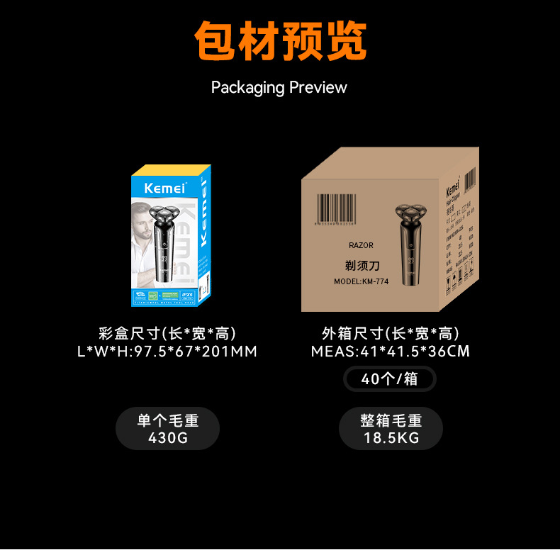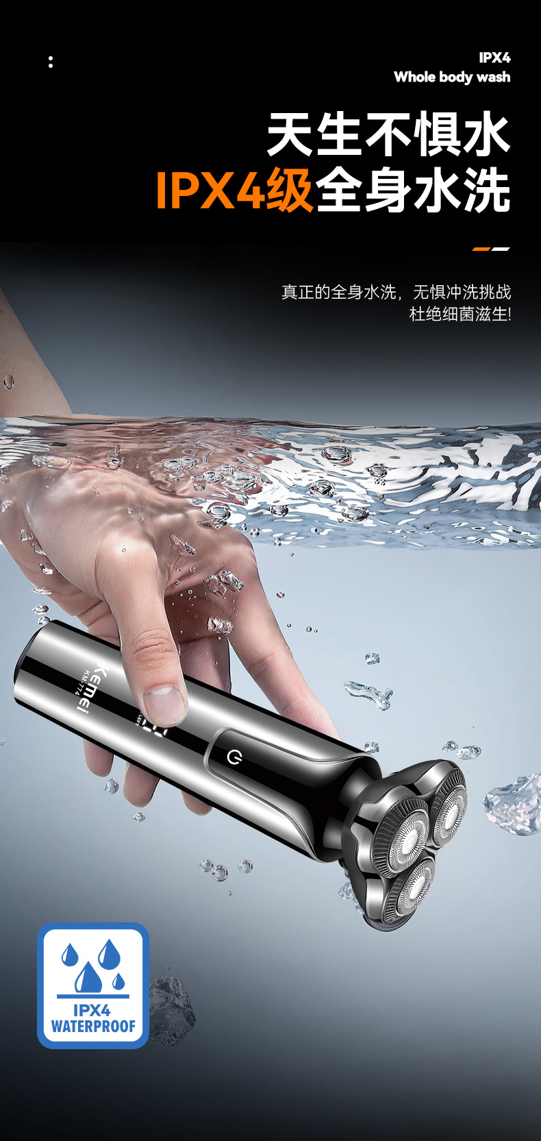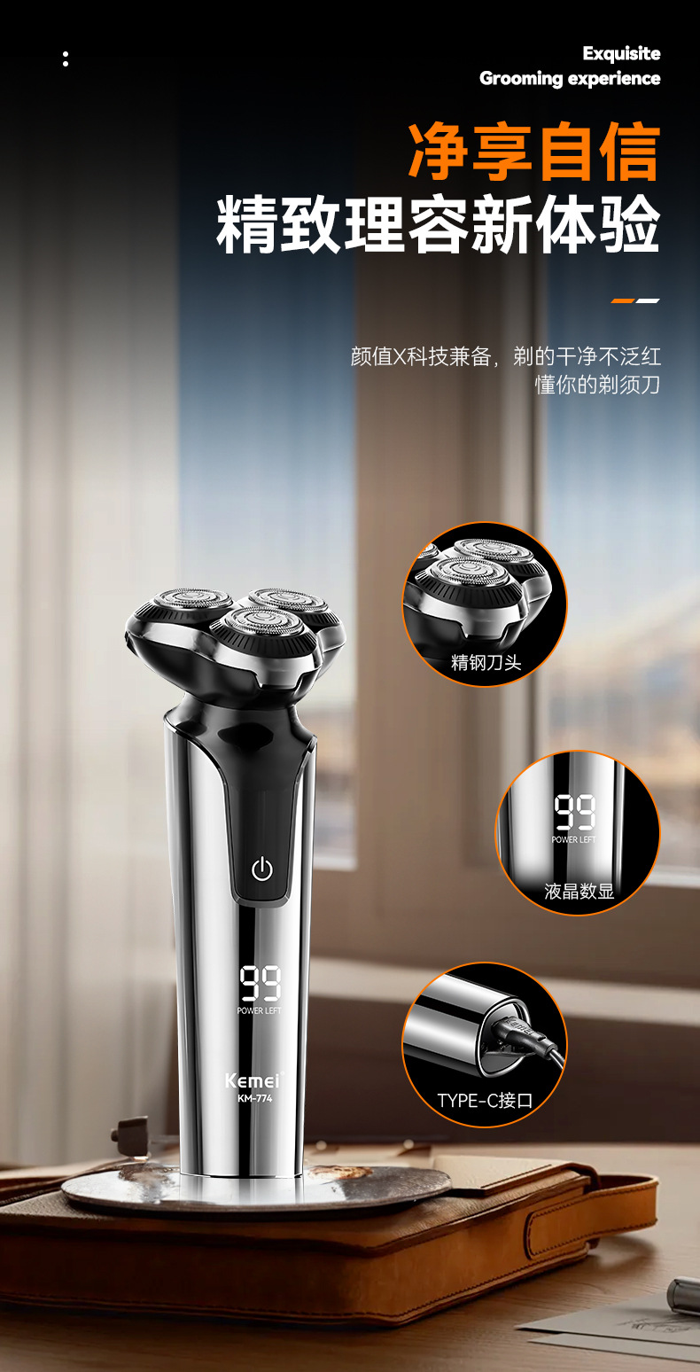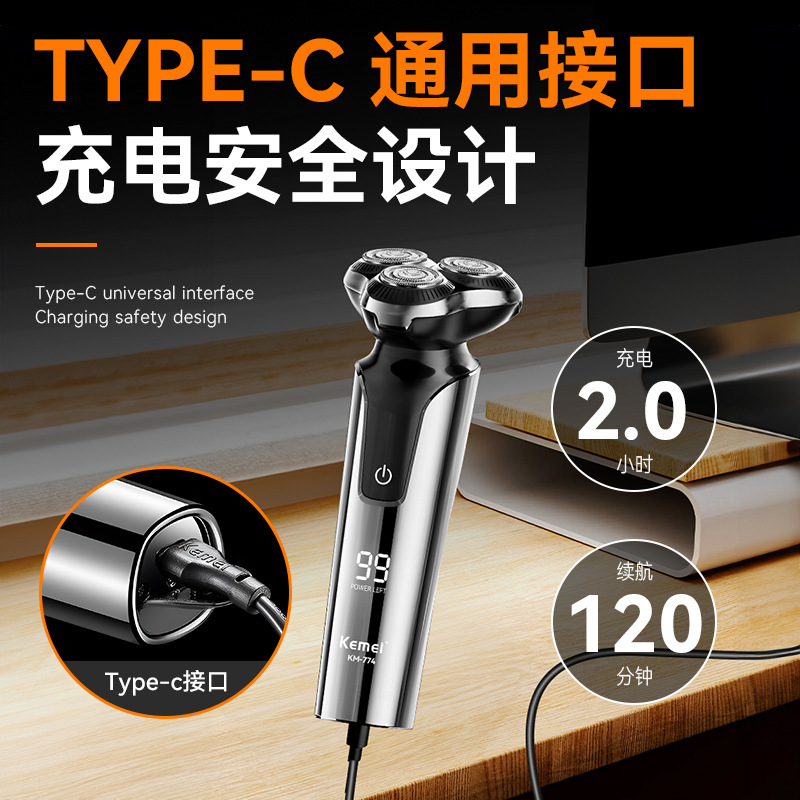 科美跨境往复式数显剃须刀防水增白浮动刀头男士刮胡刀电动超干净