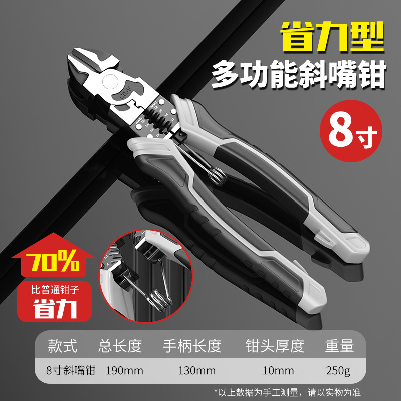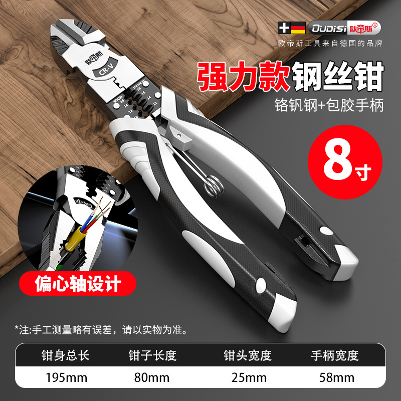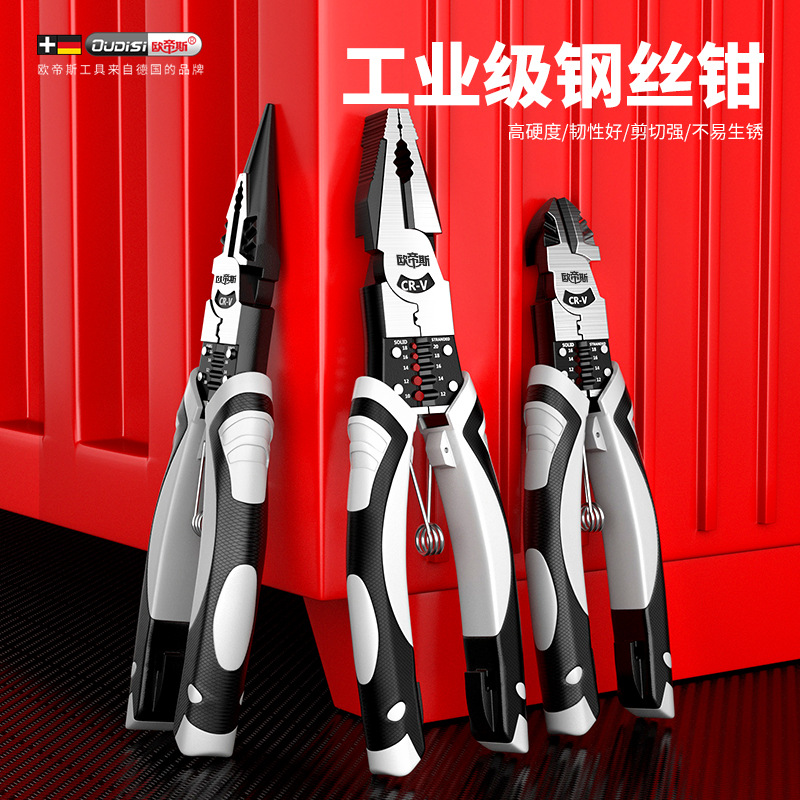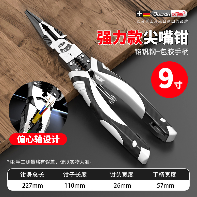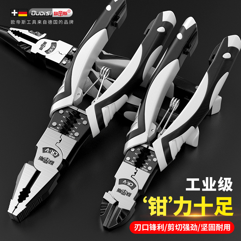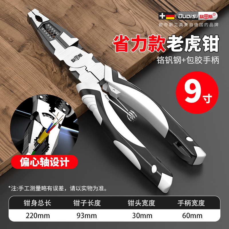 欧帝斯工业级老虎钳9寸剥线尖嘴钳省力剪切斜嘴钳子多功能钢