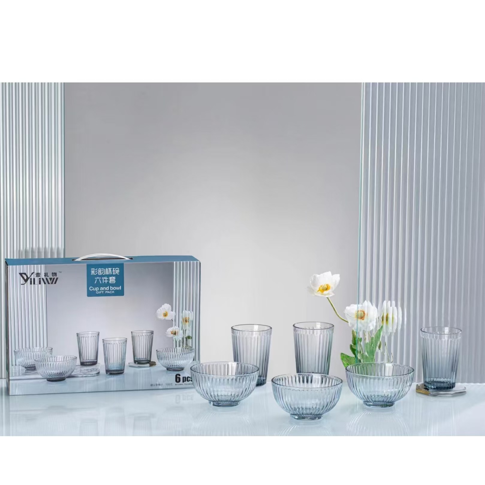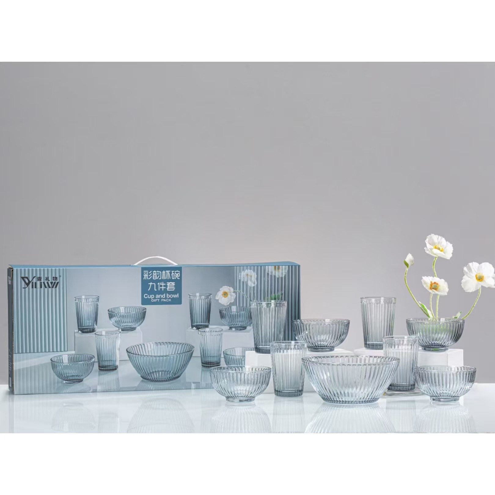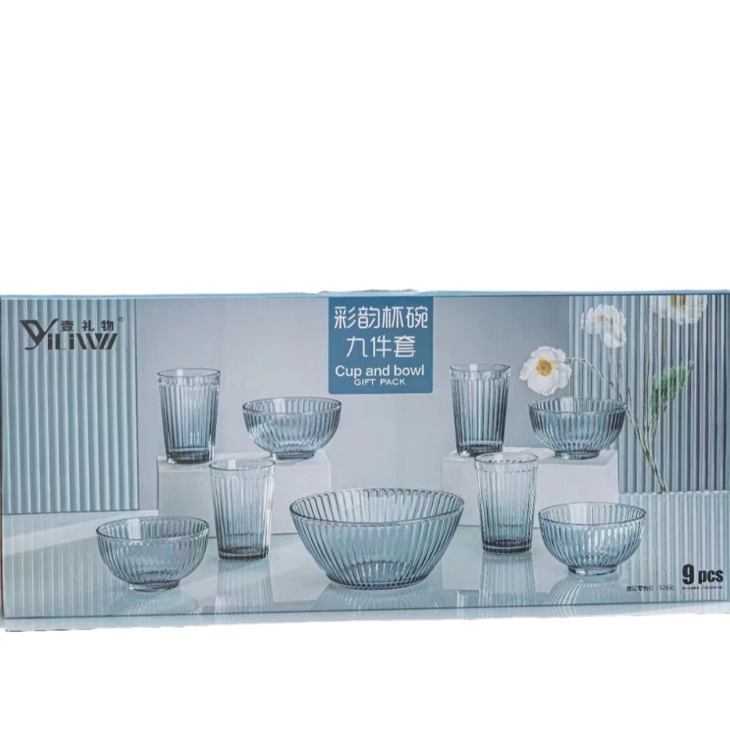 彩韵杯碗九件套套装家用随手礼活动促销开业礼品批发杯碗餐具套装
