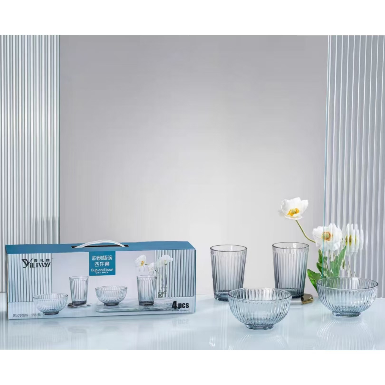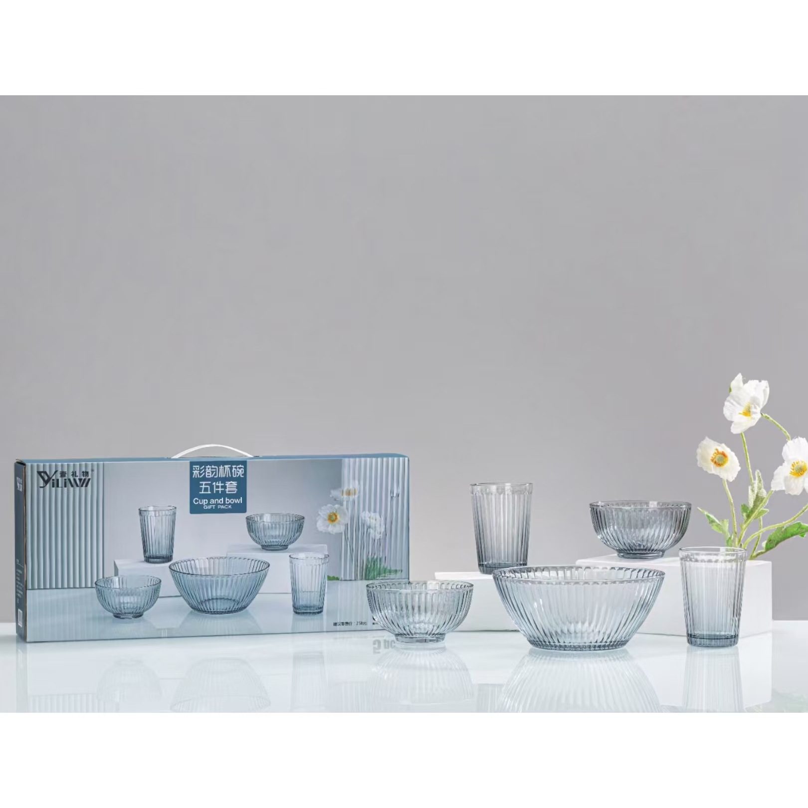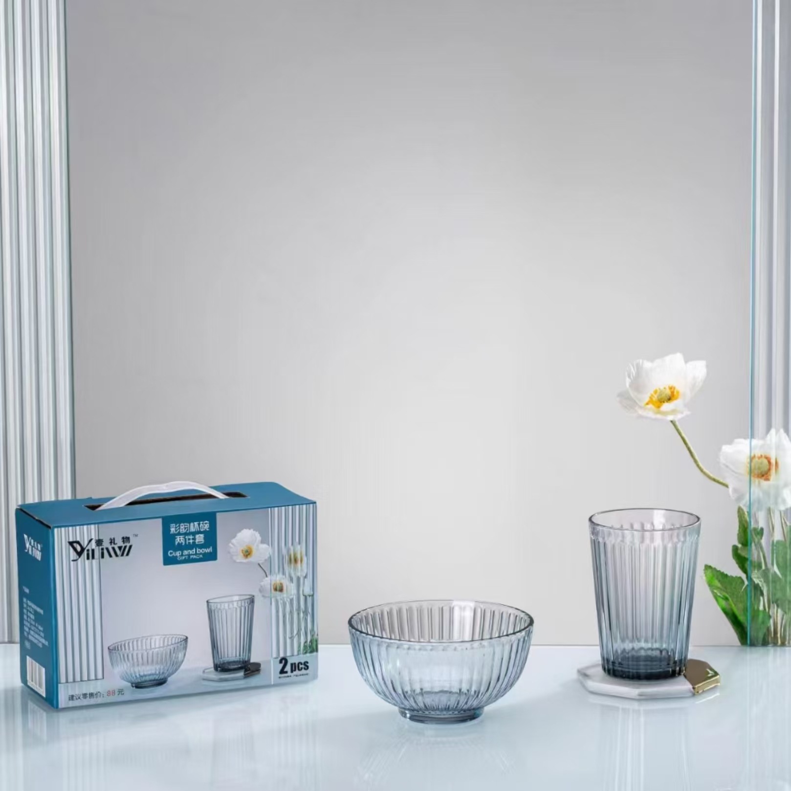 彩韵杯碗九件套套装家用随手礼活动促销开业礼品批发杯碗餐具套装