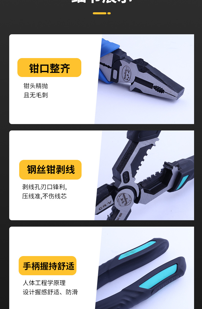 老虎钳多功能钢丝钳精选电工专用五金工具工业级省力钳子钳类工具