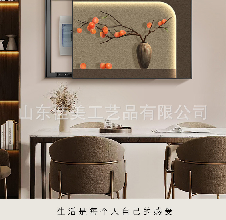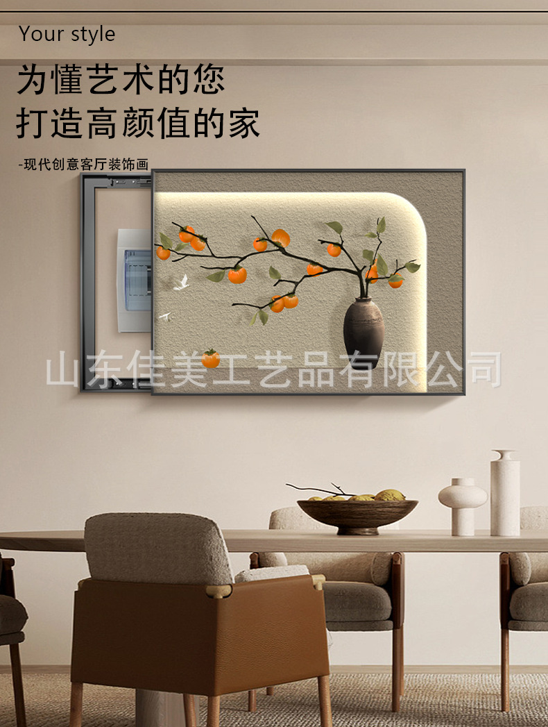 侘寂风电表箱装饰画柿柿如意配电箱画遮挡挂画强弱电源盖板画壁画