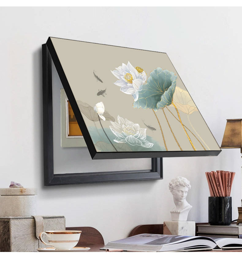 客厅电表箱装饰画办公室茶室中式遮挡弱电箱盖板画遮丑配电箱挂画