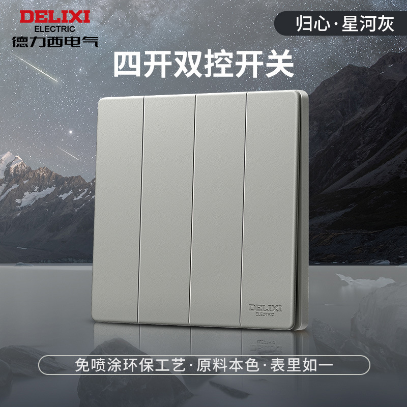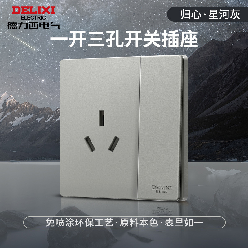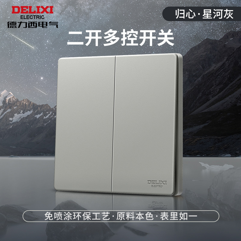 德力西开关插座86磨砂哑光灰色一开双控五孔usb墙壁暗装面板批发