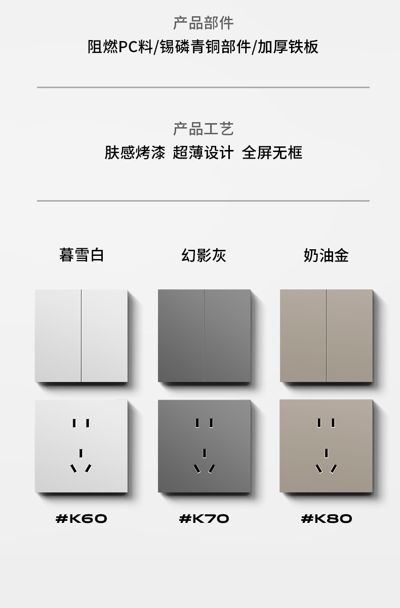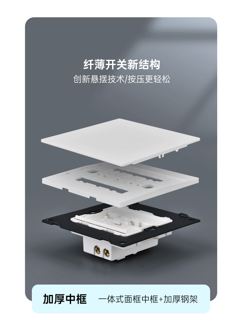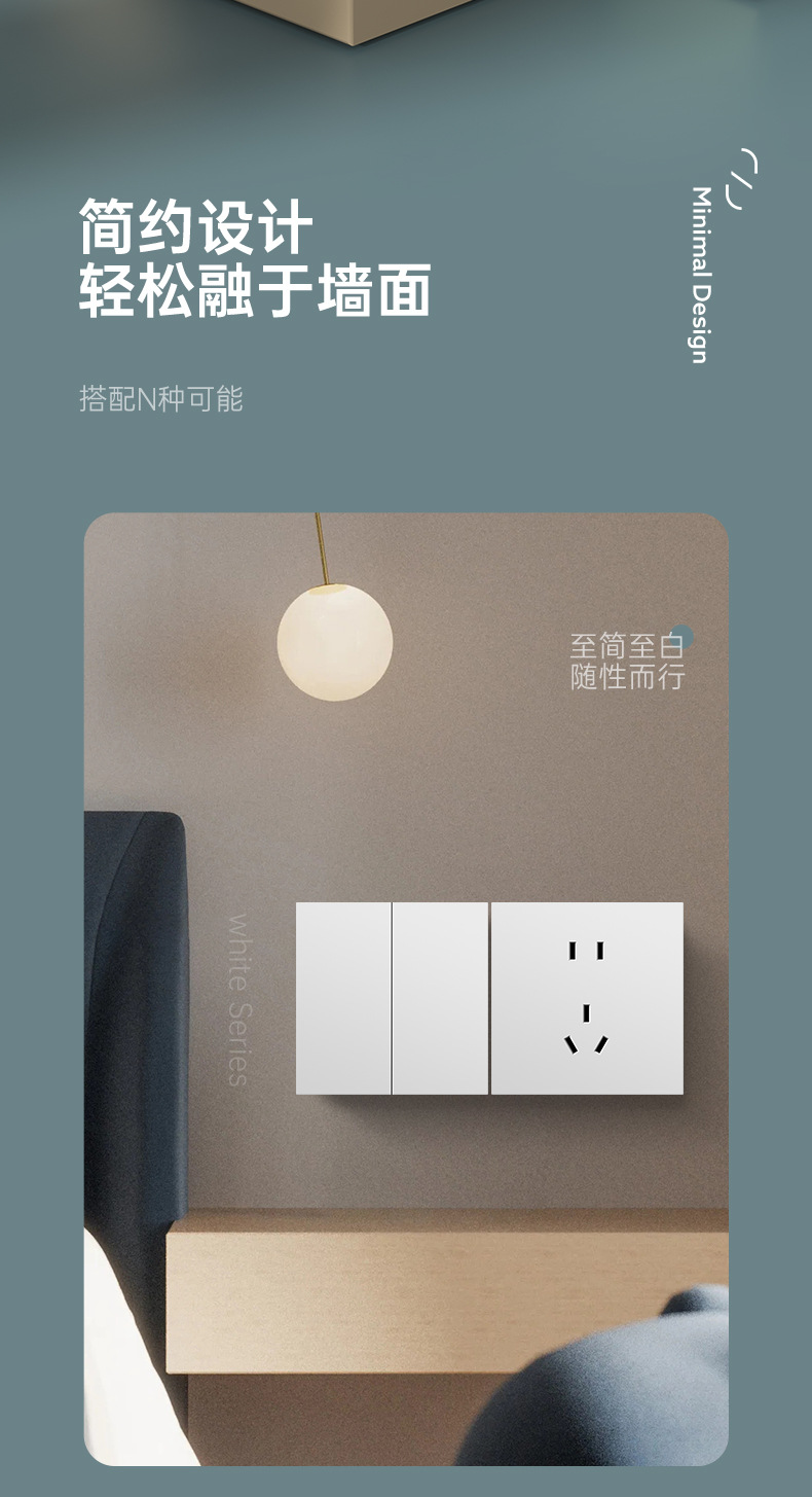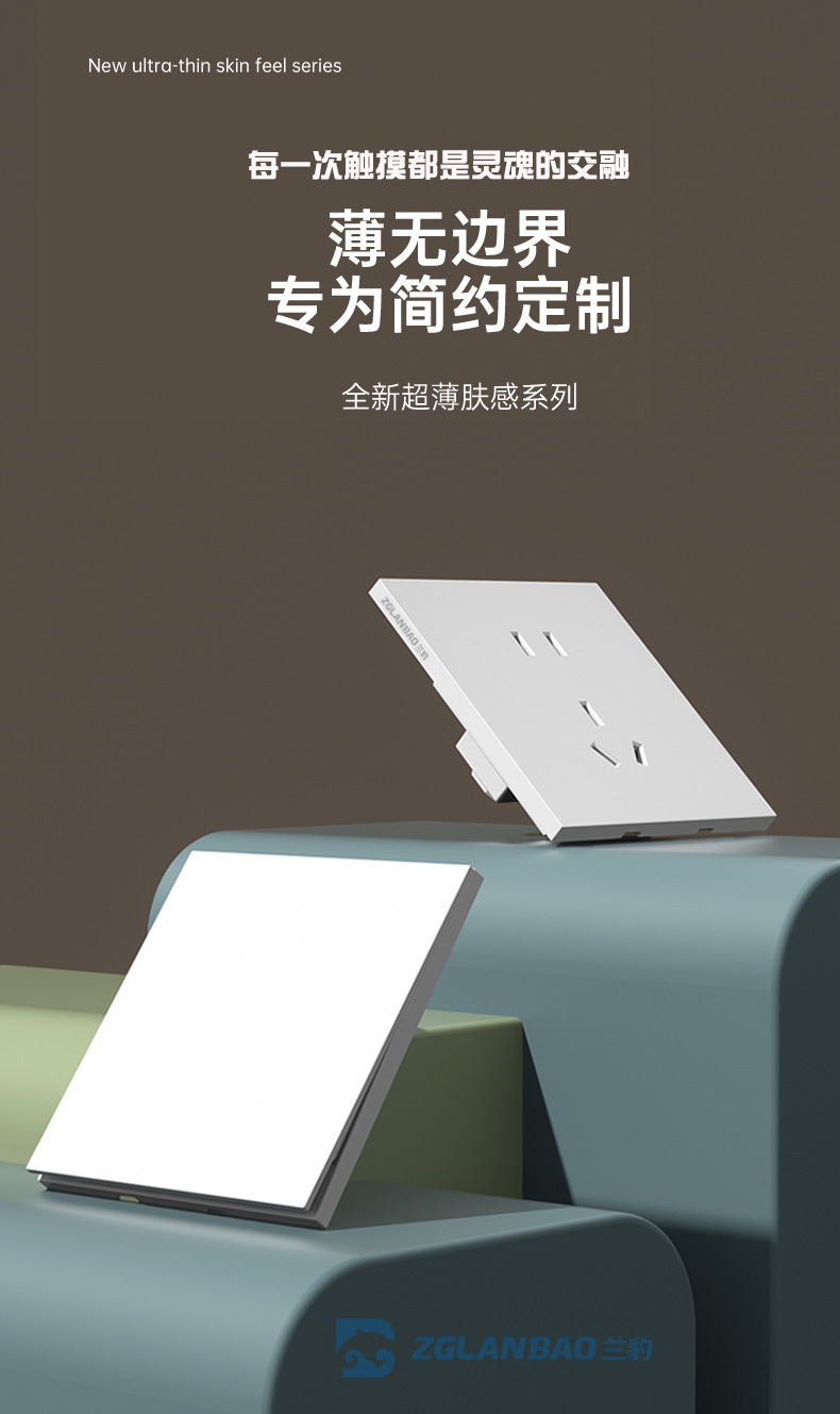 兰豹超薄哑光肤感白暗装开关面板工厂定制无边框五孔插座86二三极