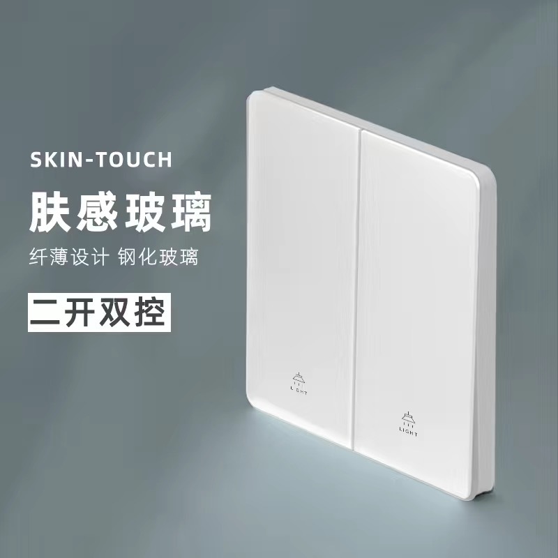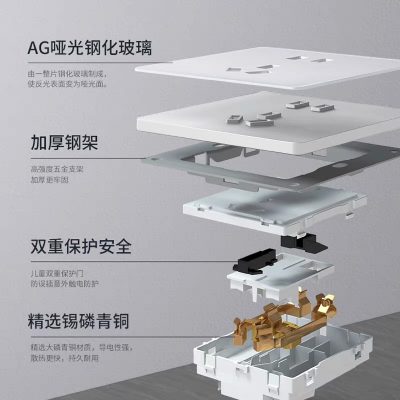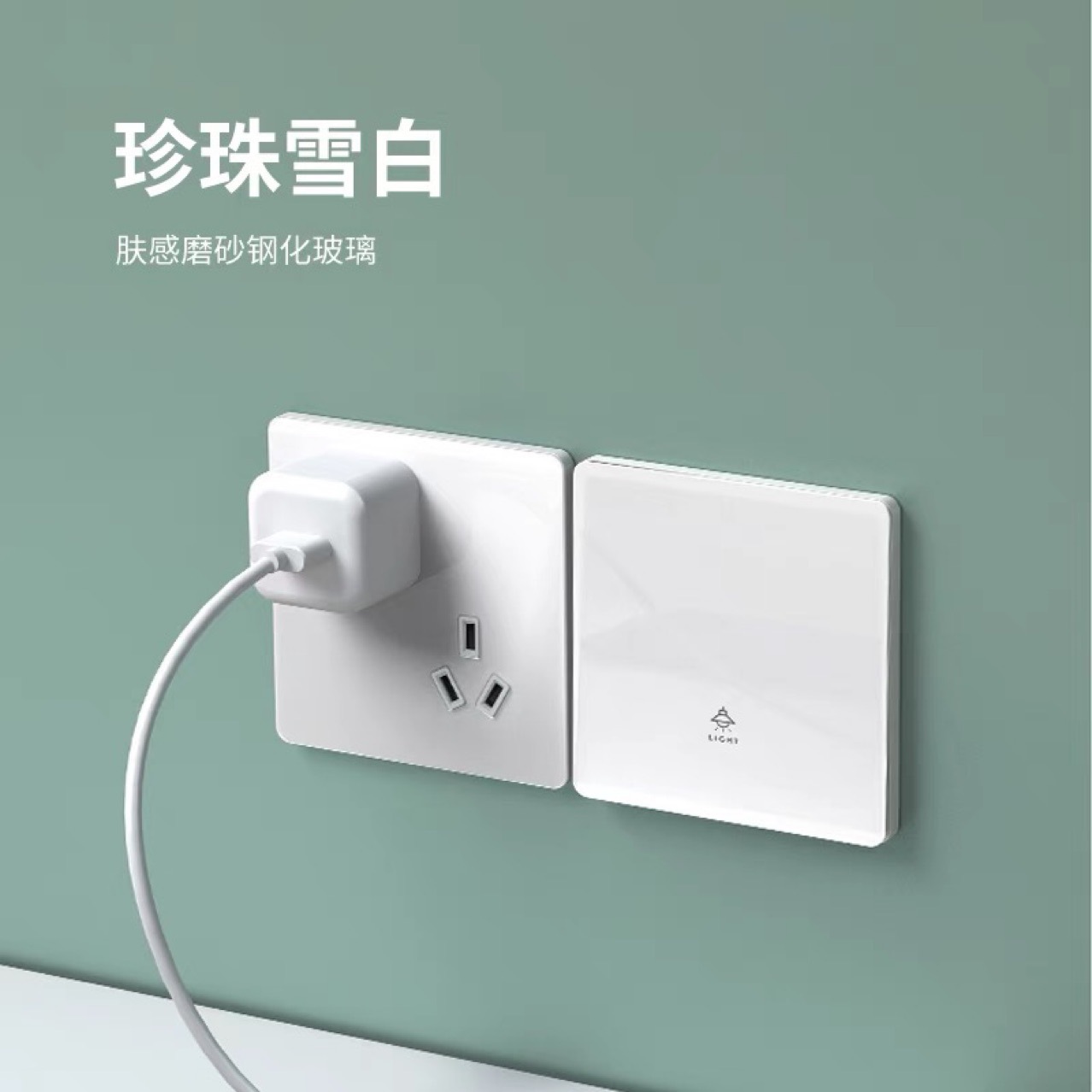 钢化玻璃开关插座面板肤感白色哑光86型家用暗装单开五孔USB三孔