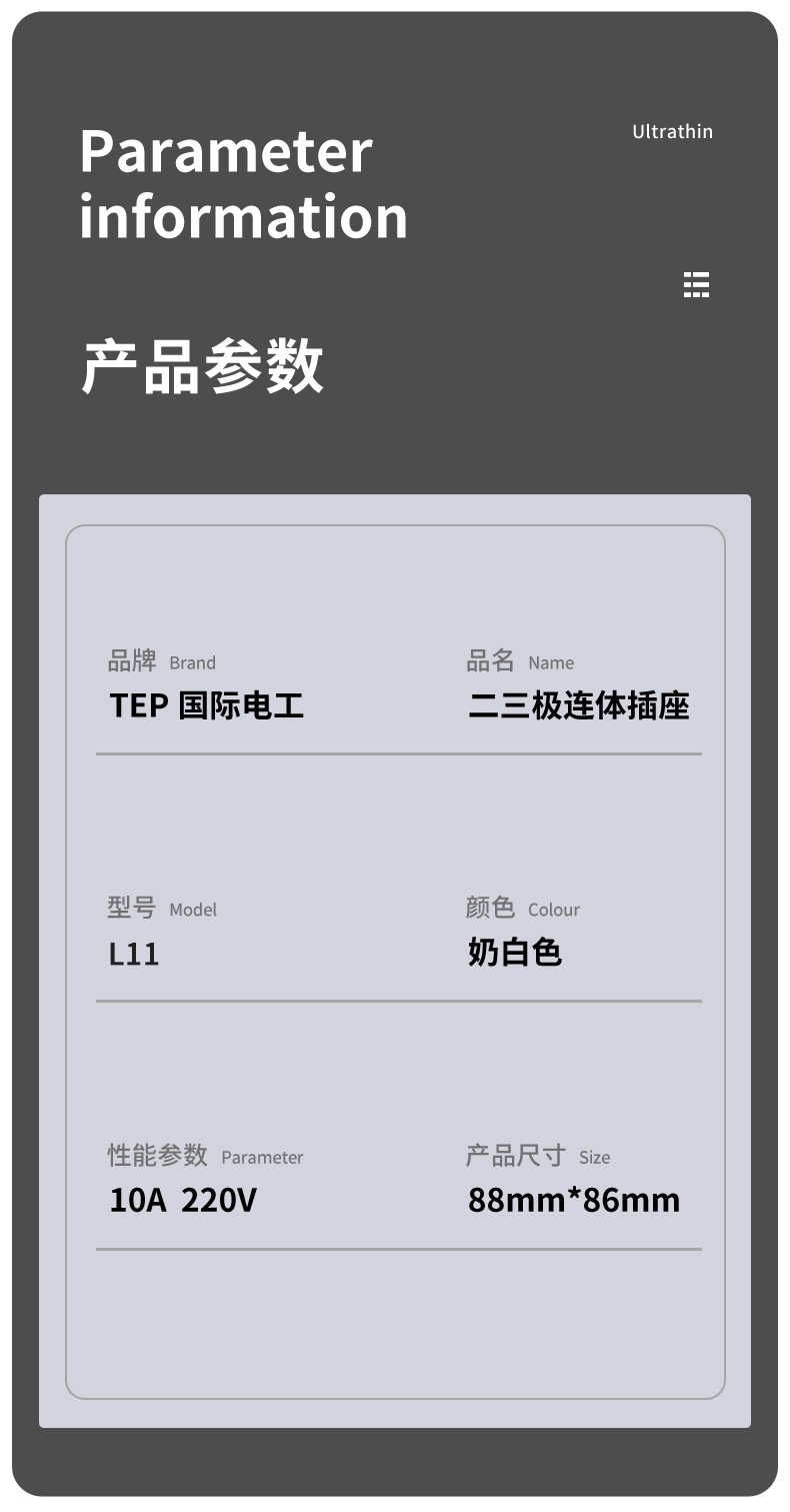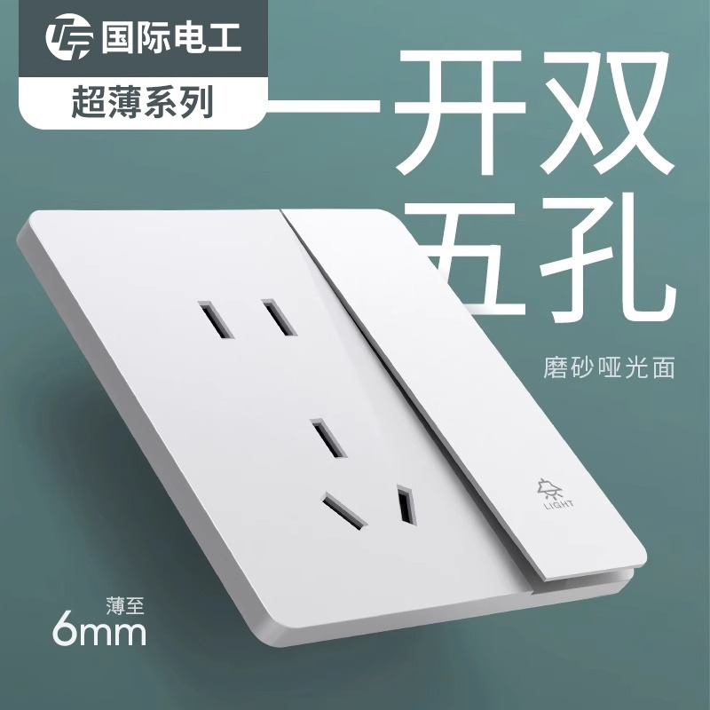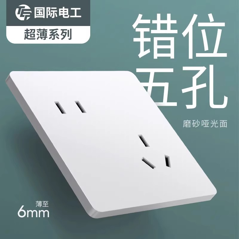 TEP国际电工菱花白家装86型电源插座奶油风二三插五孔带开关面板