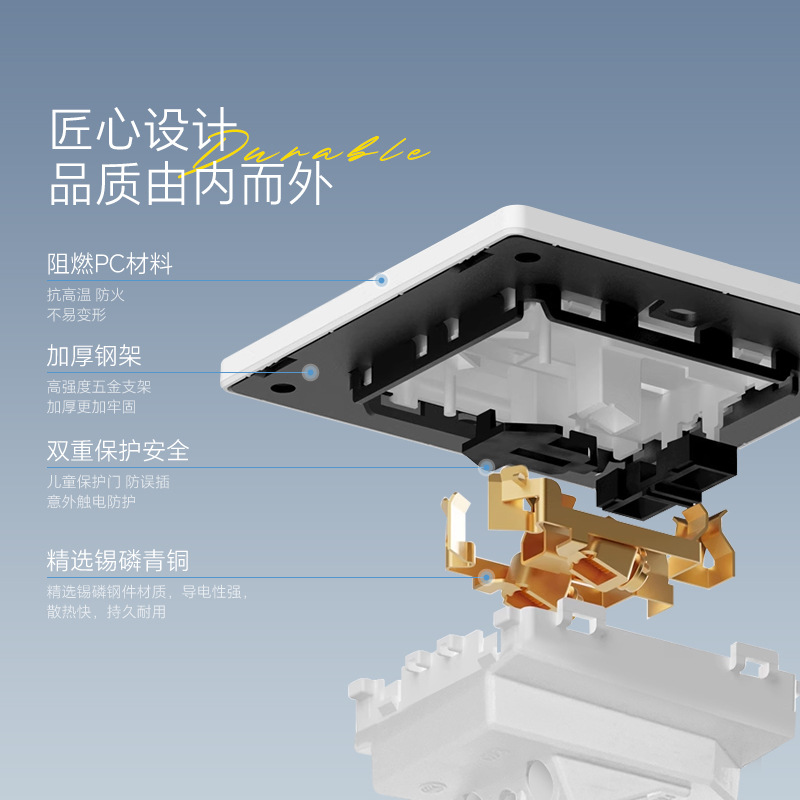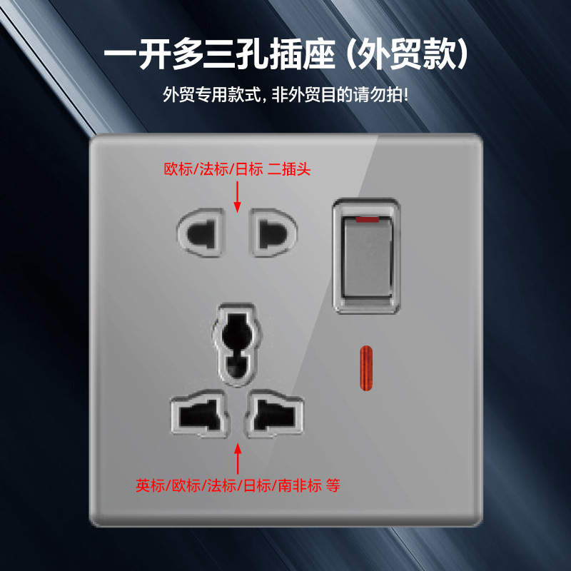 英标开关插座面板86型一开13A英式插座带USB+typeC墙壁电源插座