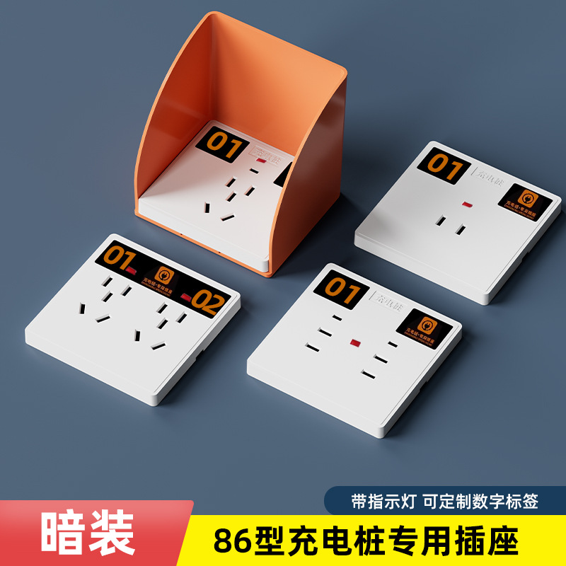 小区室外防雨水电瓶车充电桩插座带指示灯共享充电桩明装五孔面板