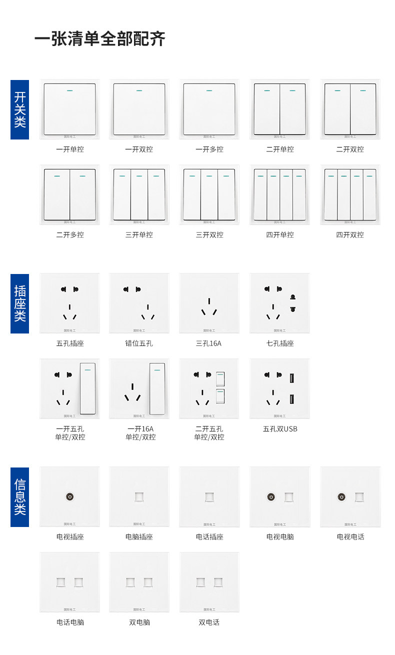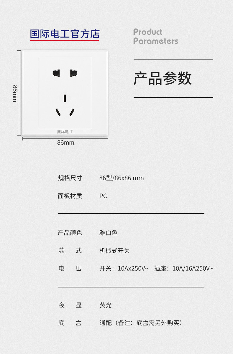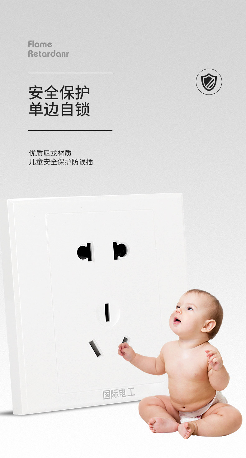 国际电工暗装86型墙壁式面板多孔一开5五孔带USB家用电源开关插座
