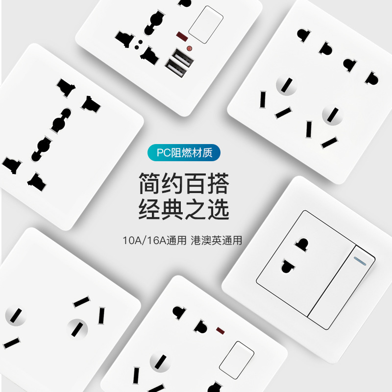 86型十孔一开多功能三八孔大功率16A白色东南亚墙壁开关插座批发