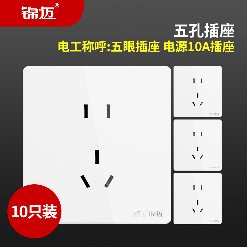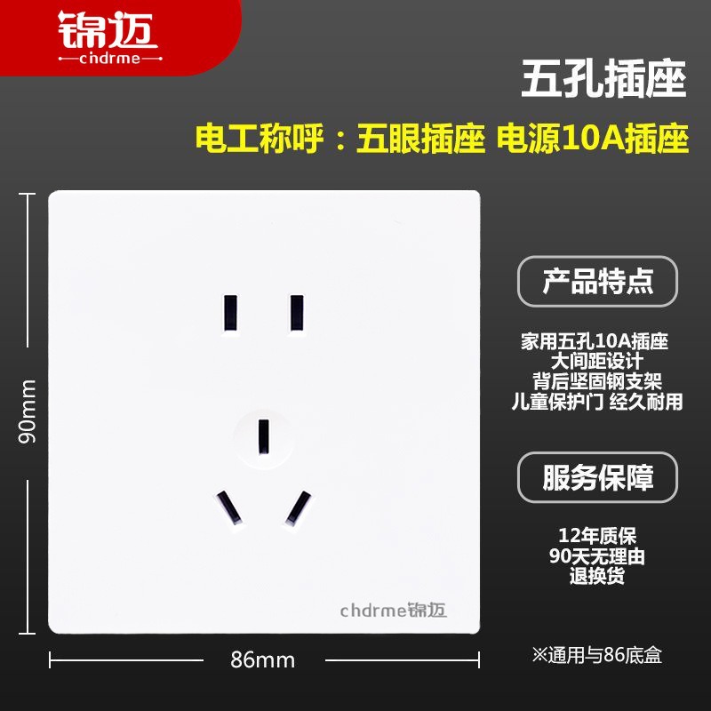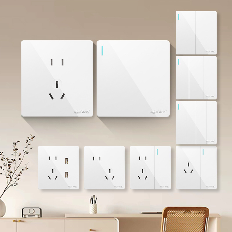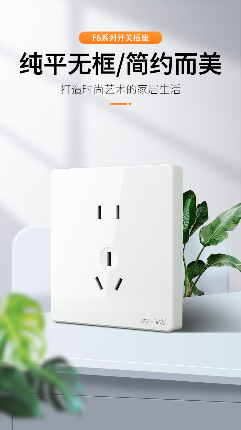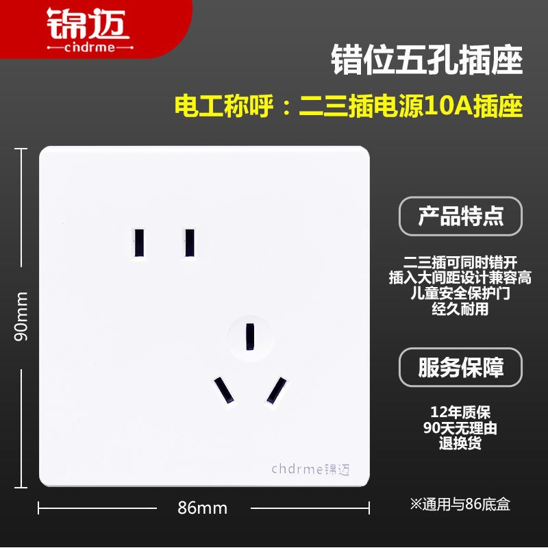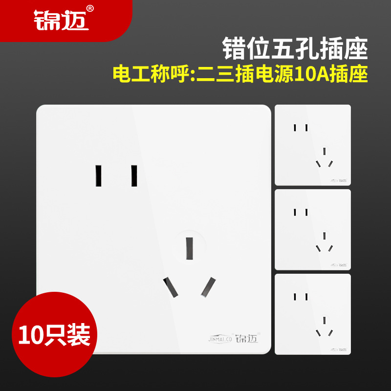 锦迈墙壁插座暗装开关插座家用86型白色简约风斜五孔开关面板批发