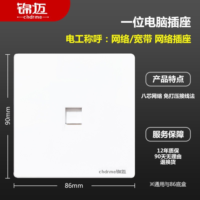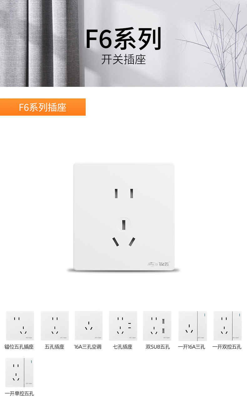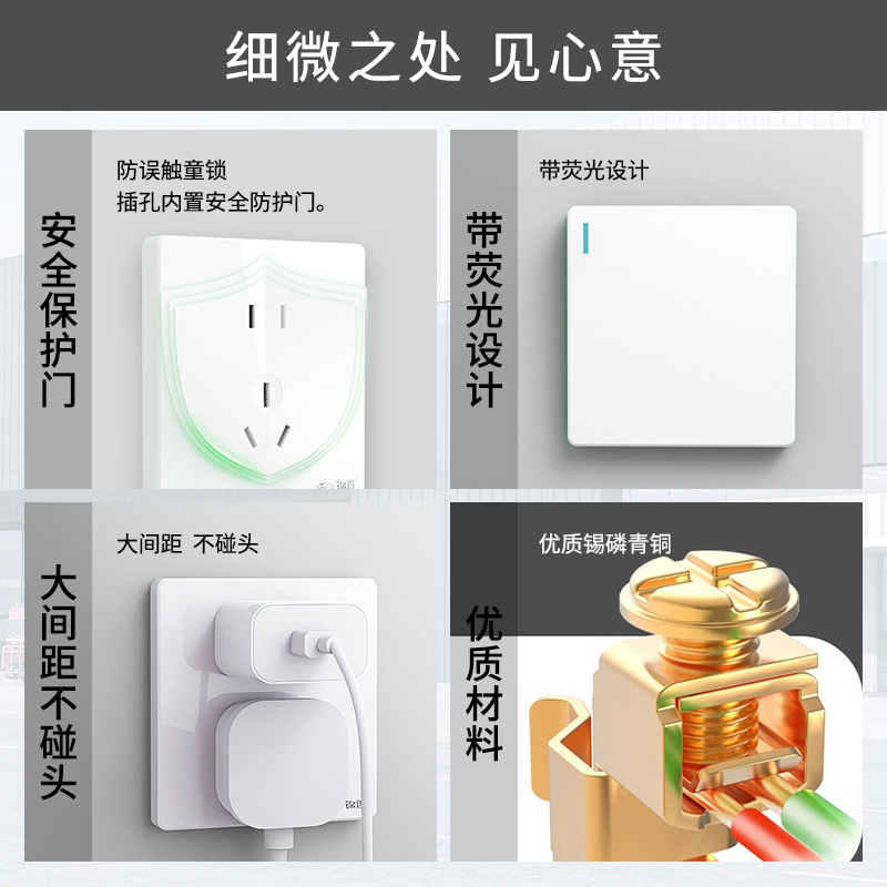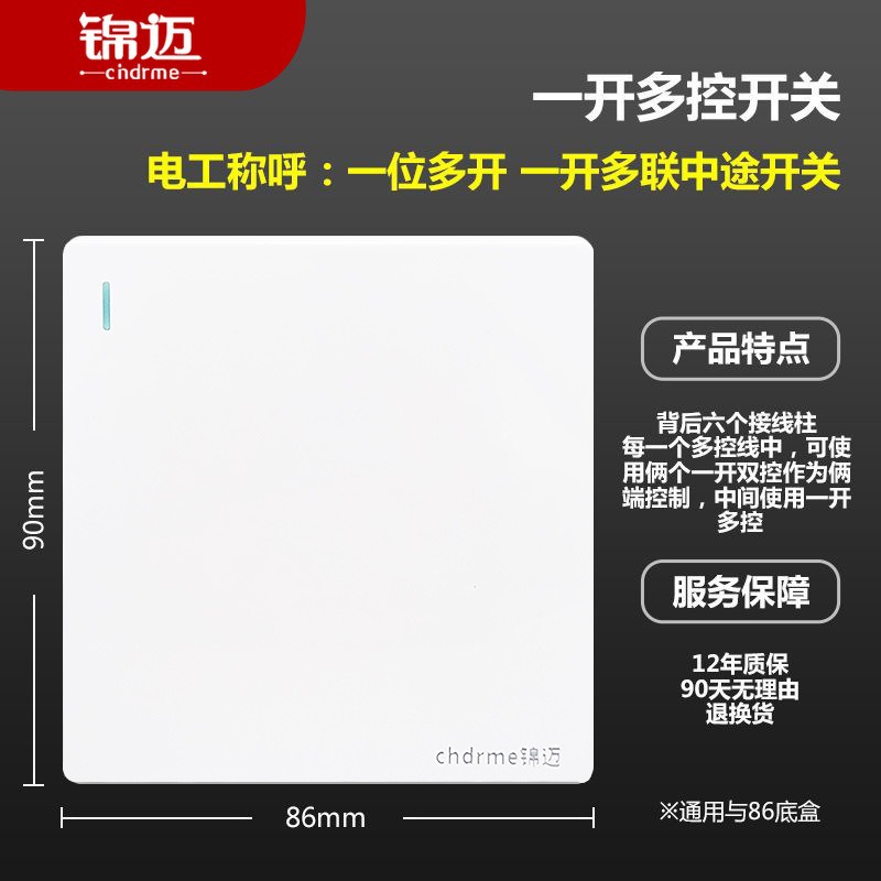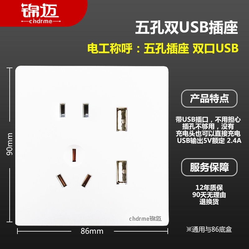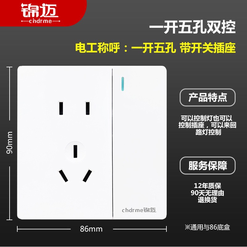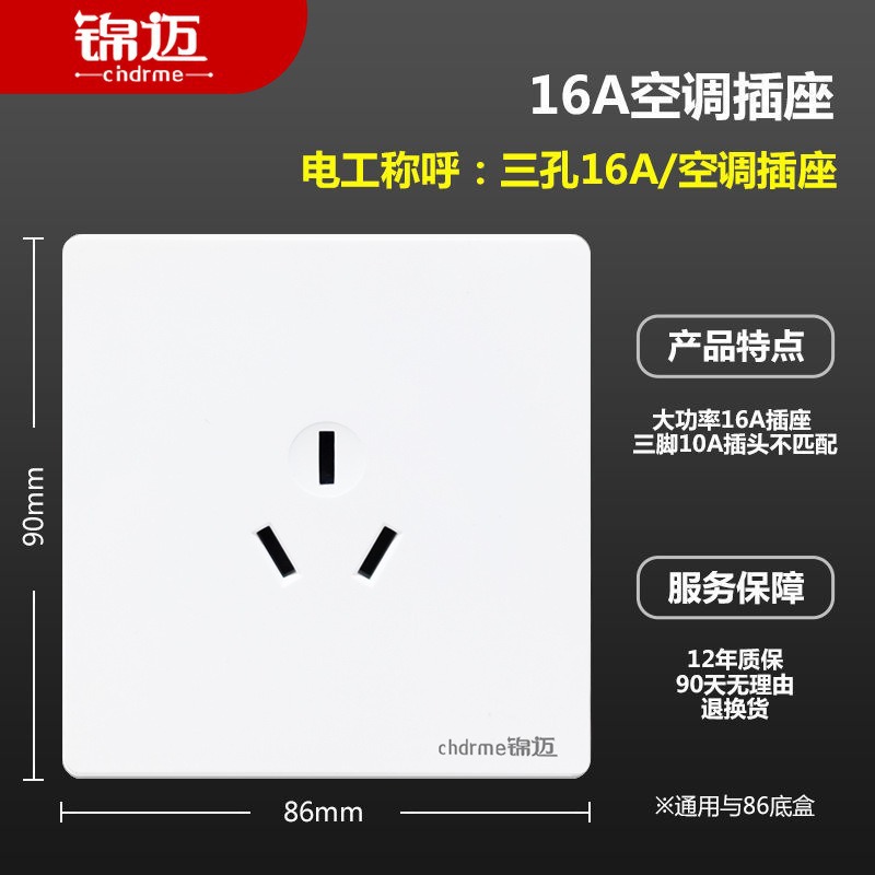 锦迈墙壁插座暗装开关插座家用86型白色简约风斜五孔开关面板批发