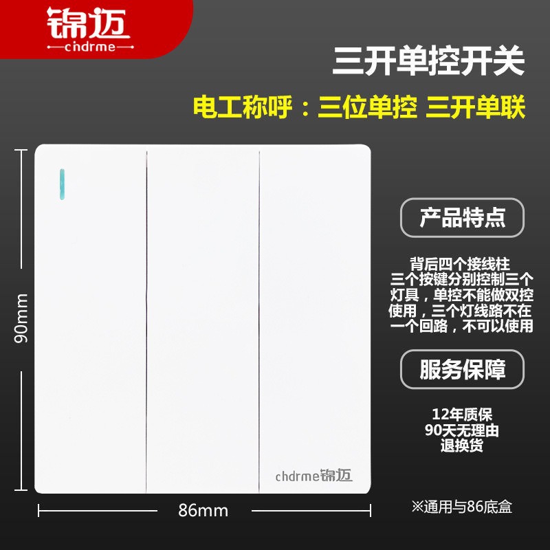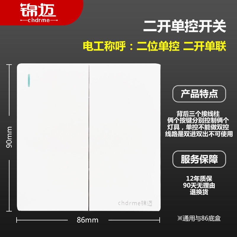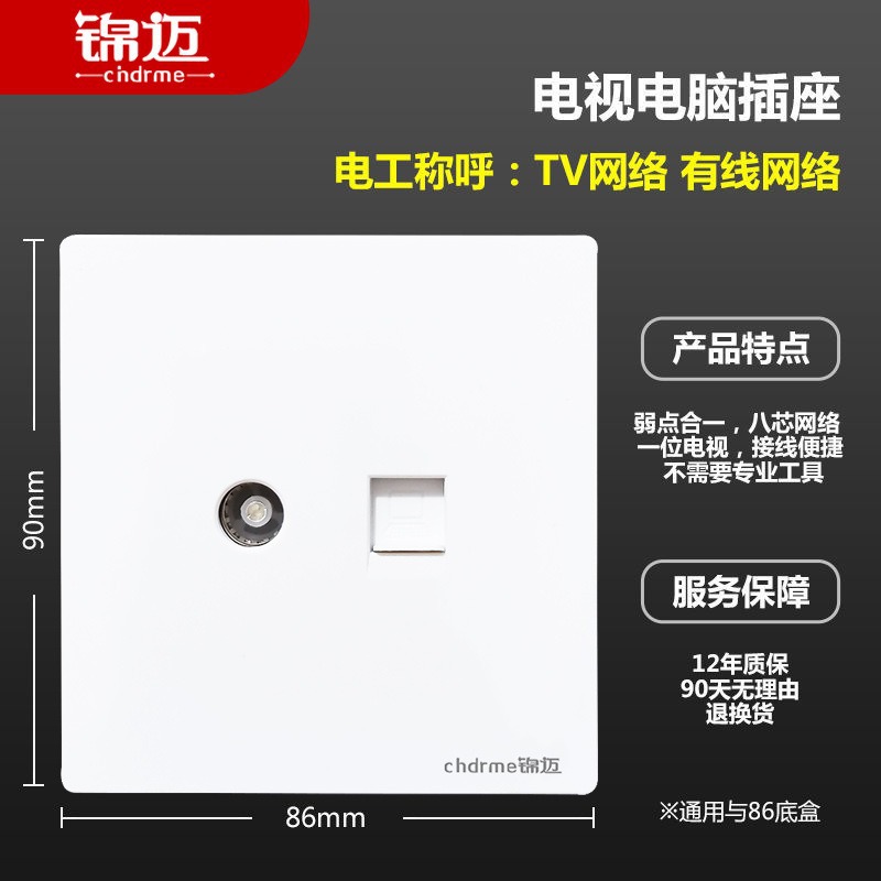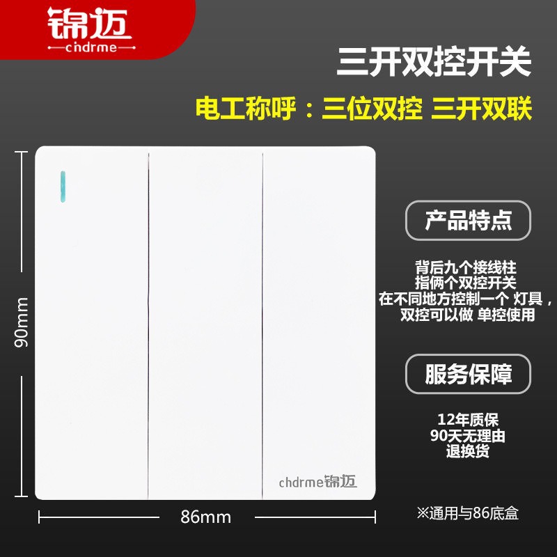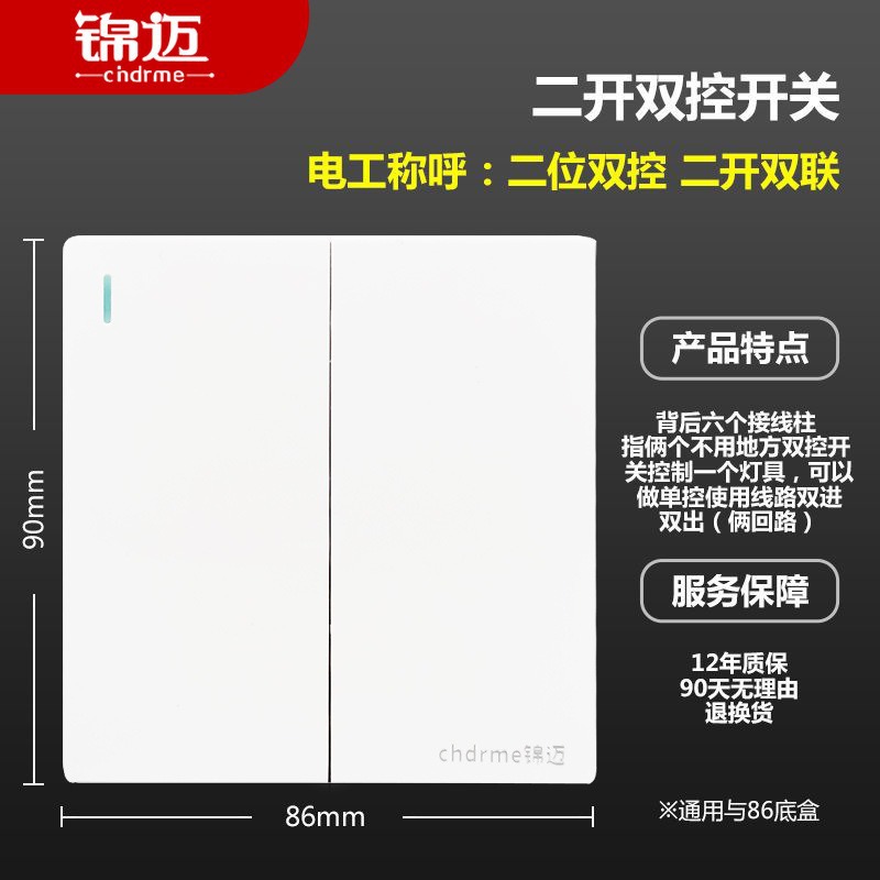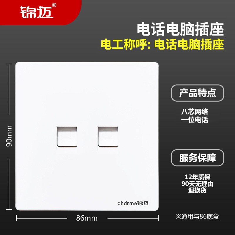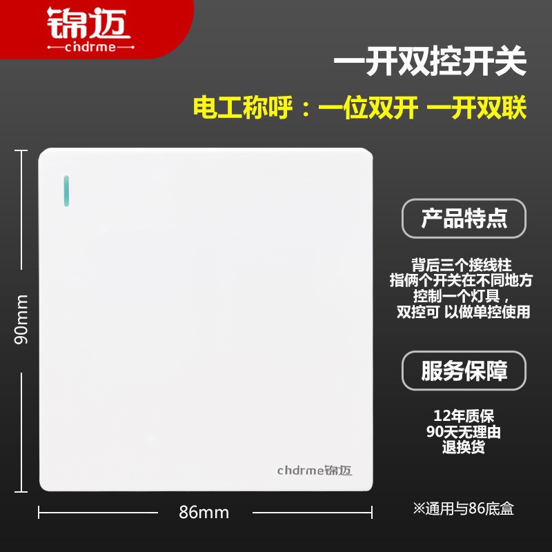 锦迈墙壁插座暗装开关插座家用86型白色简约风斜五孔开关面板批发