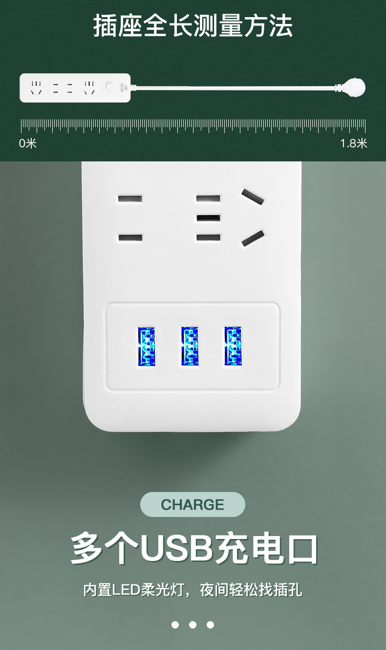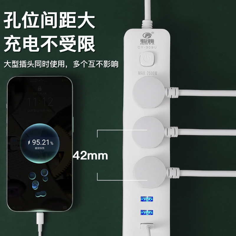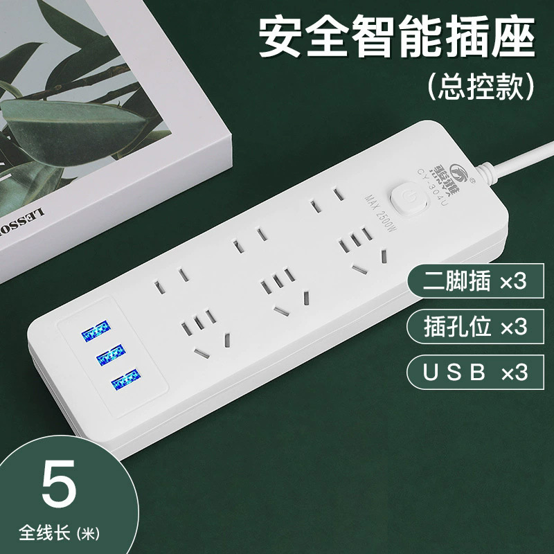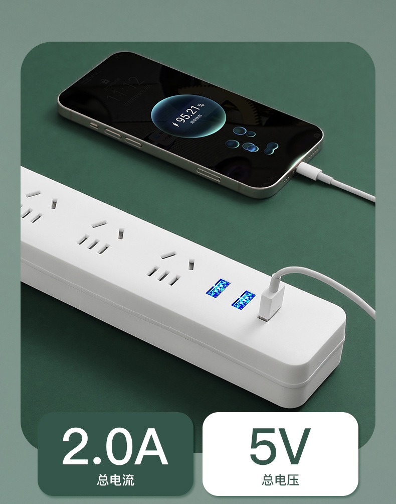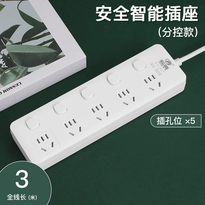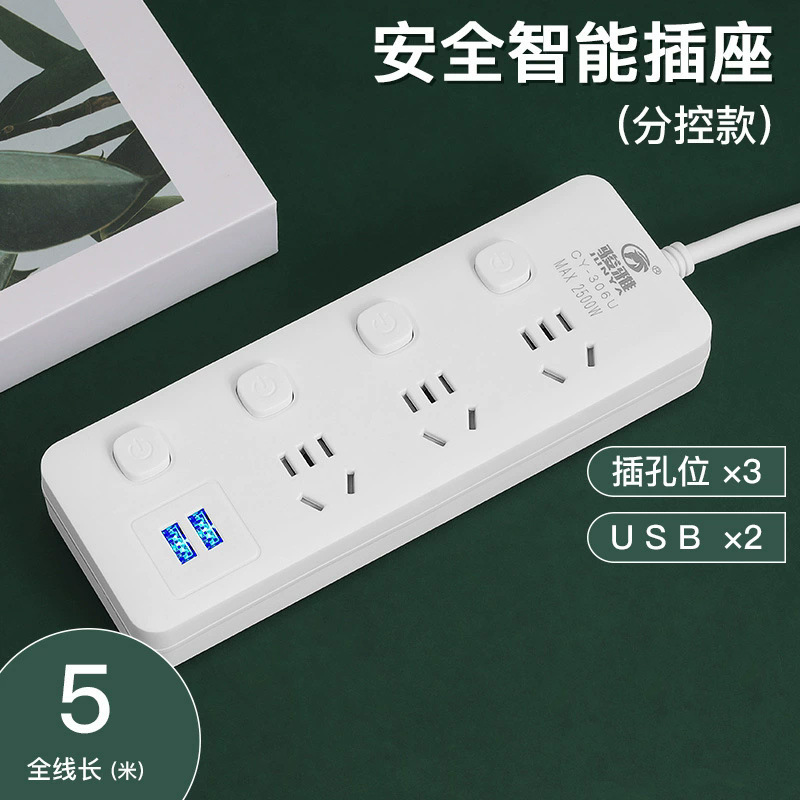 排插带线分控开关插座大功率插排家用多功能五孔插座板智能USB