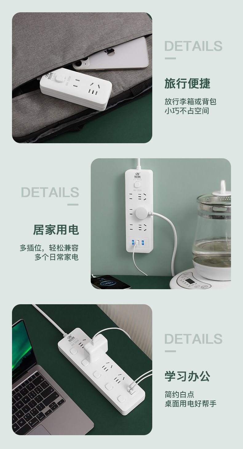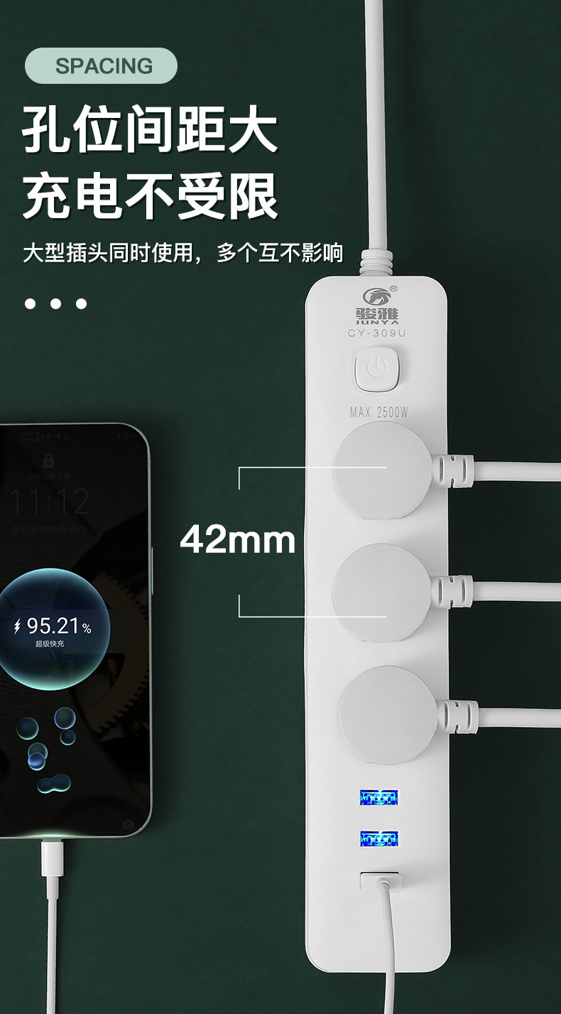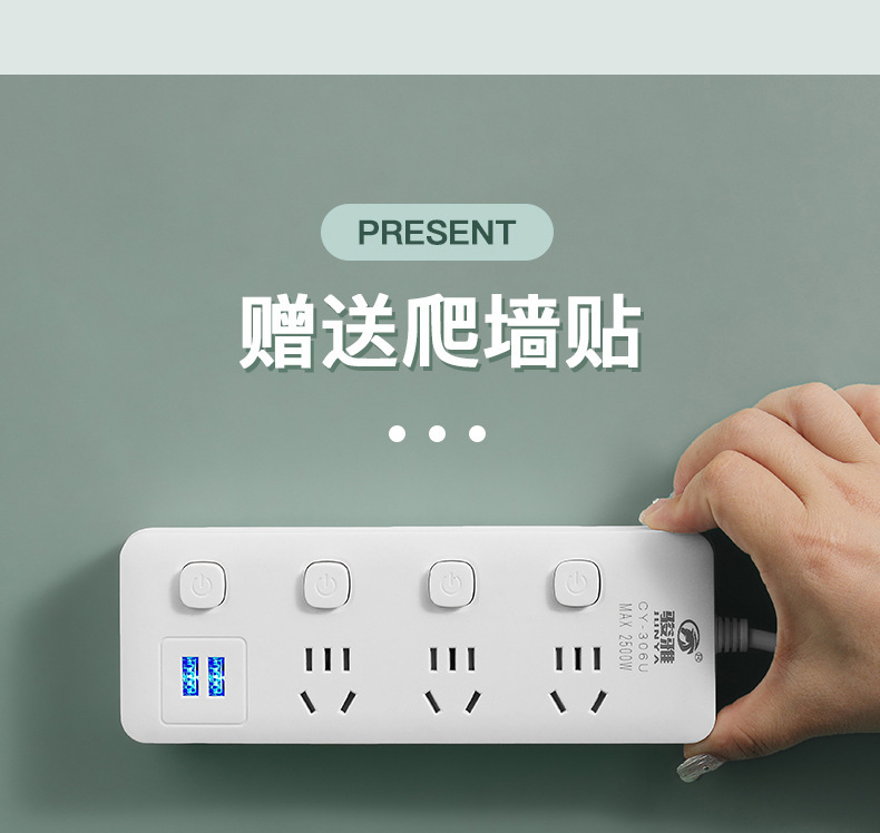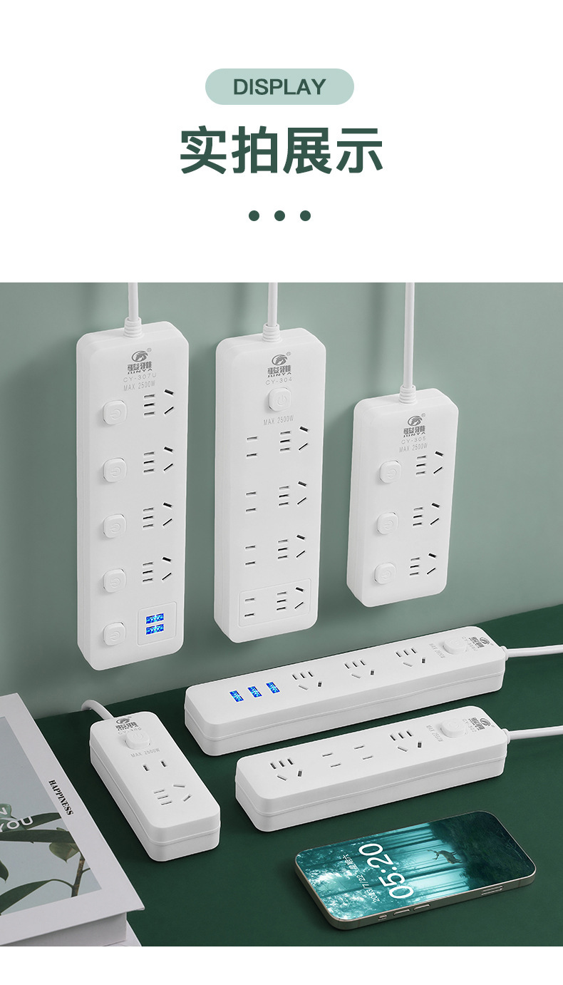 排插带线分控开关插座大功率插排家用多功能五孔插座板智能USB
