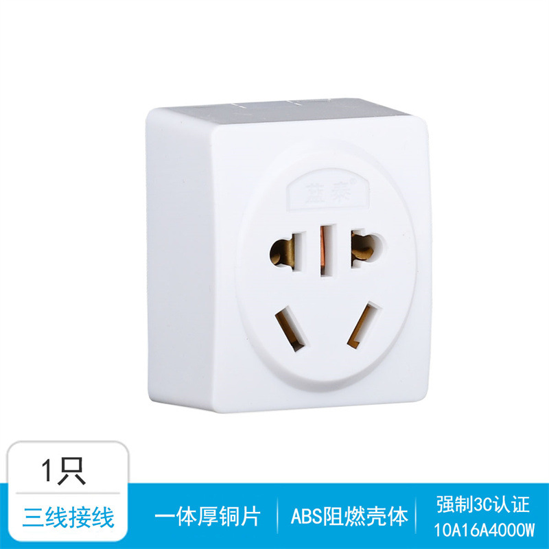 10A16A大功率空调专用家用墙壁明装五孔插座自扣式插座纯铜小插座