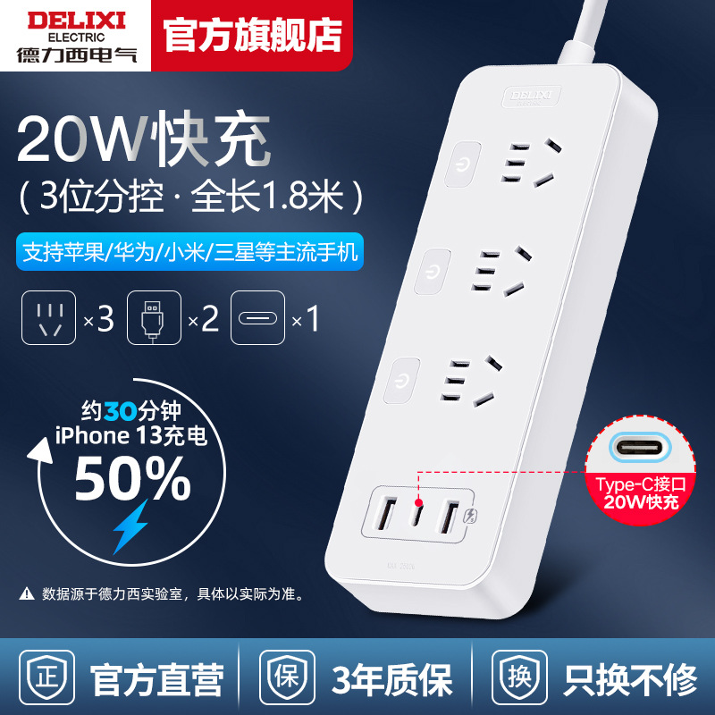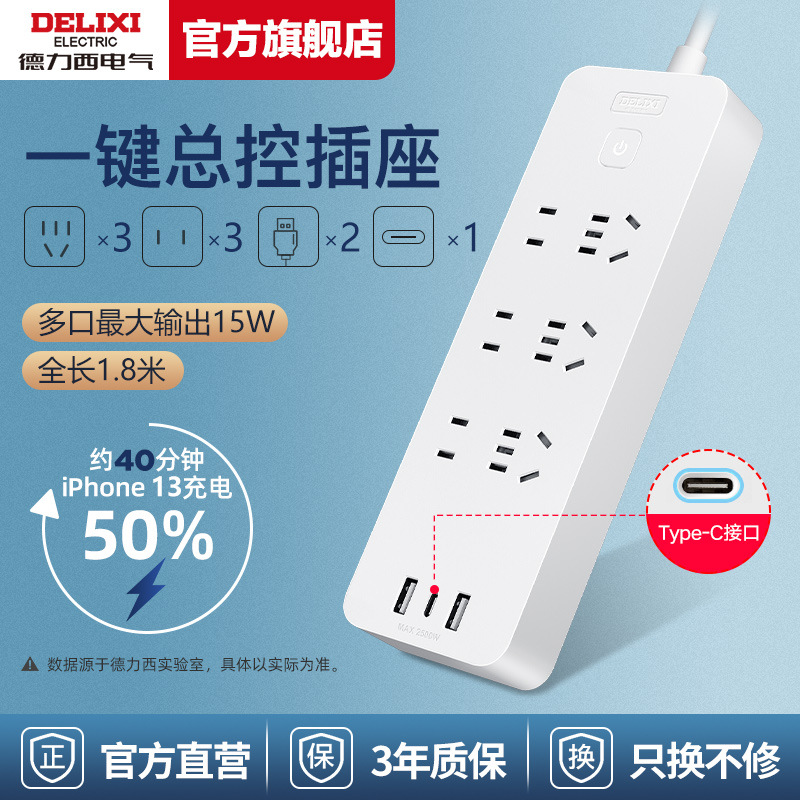 德力西插排多功能插座排插多插位家用插线板宿舍用插头转换器插板