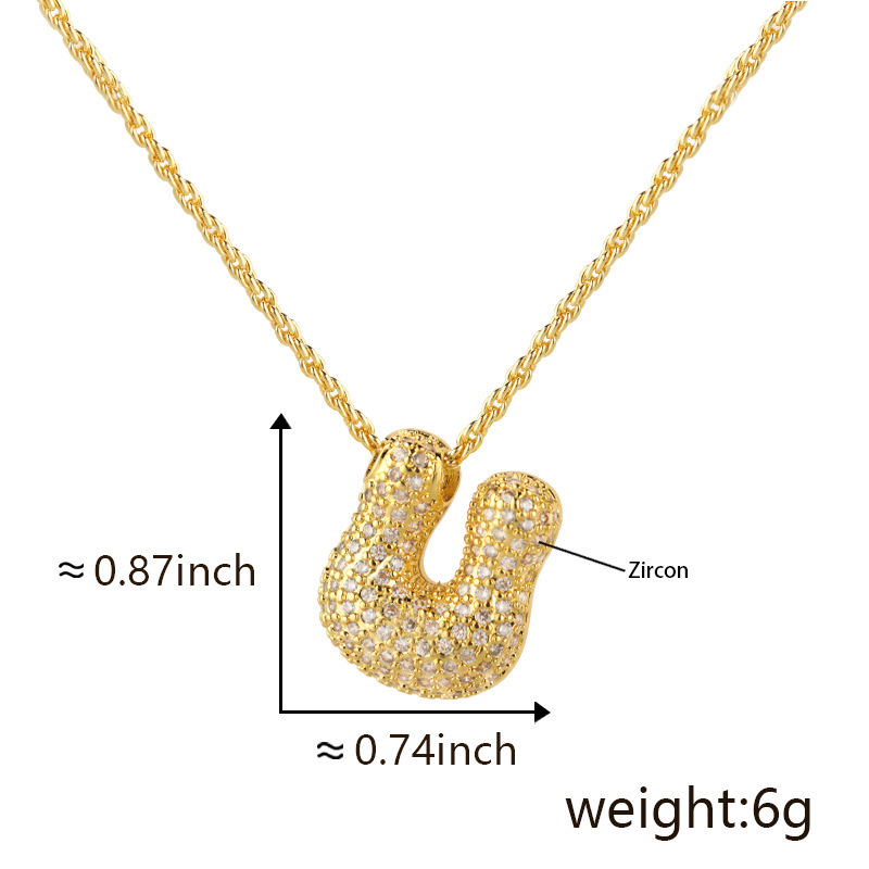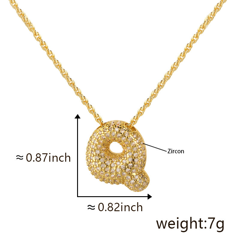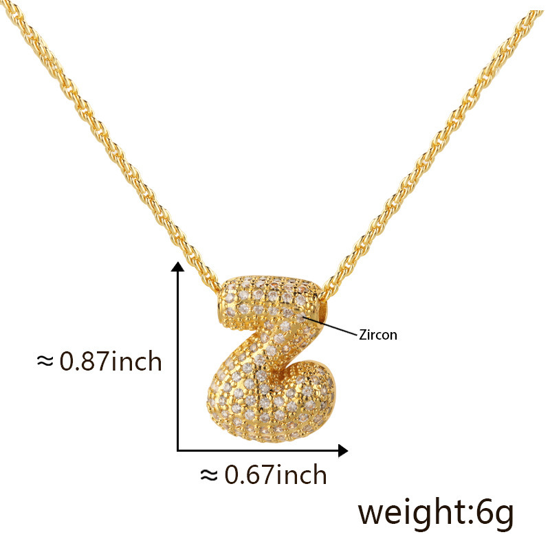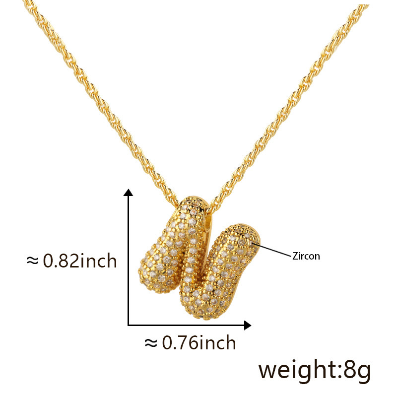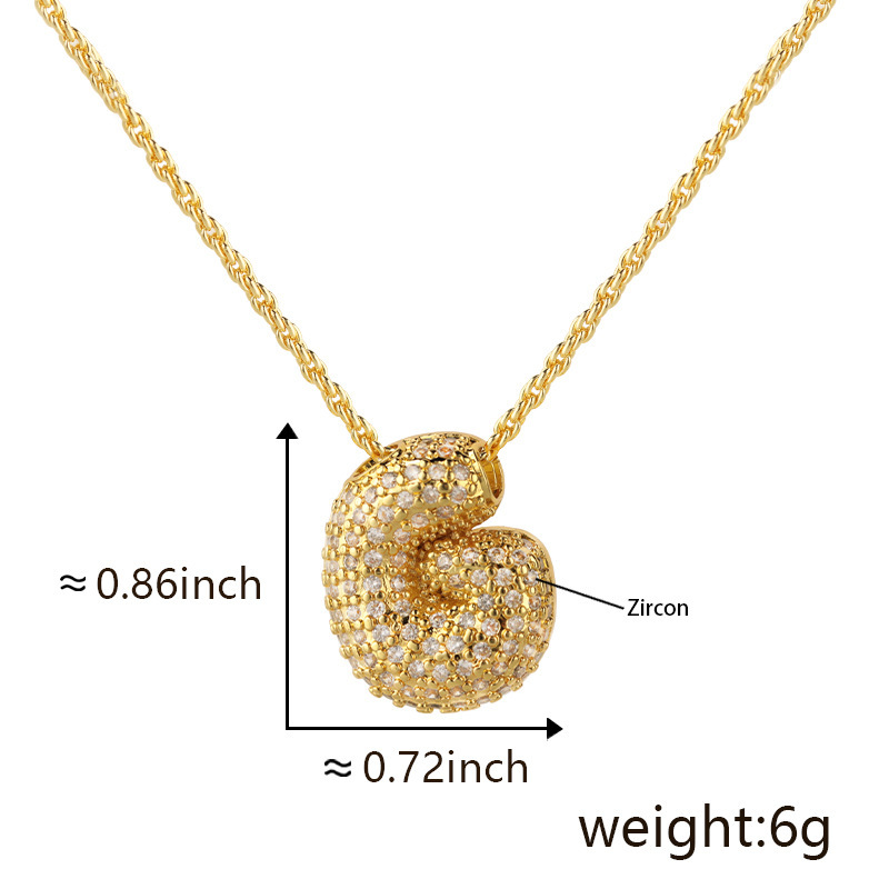 欧美跨境新款个性可爱胖乎乎字母吊坠女铜镶锆石项链百搭字母批发