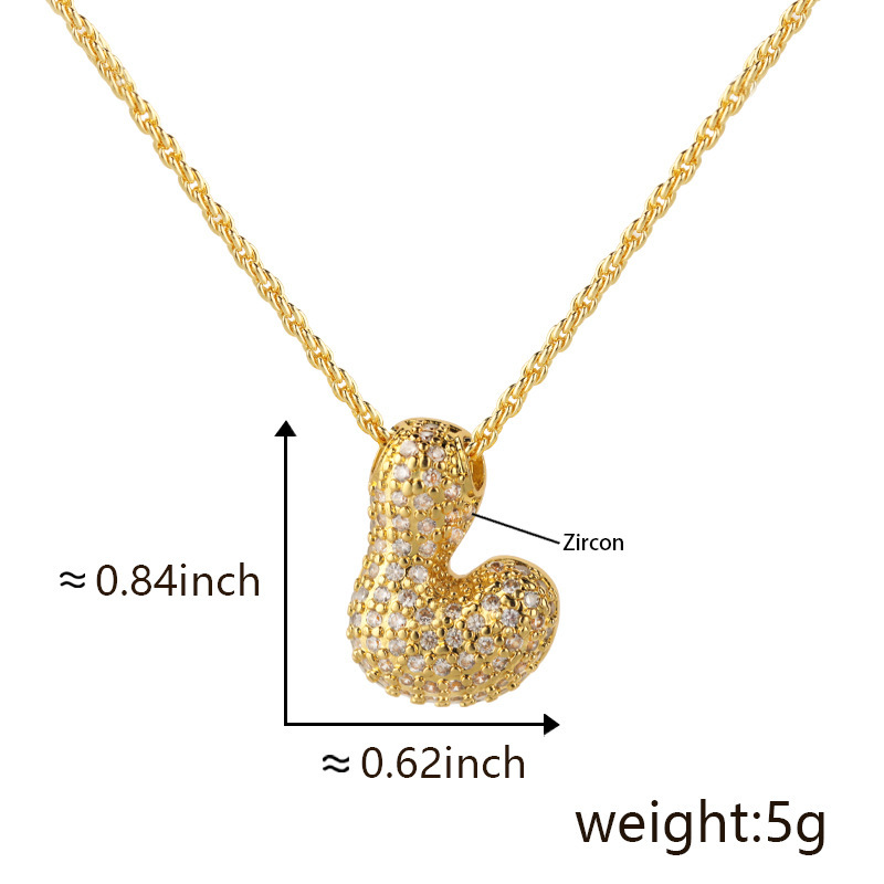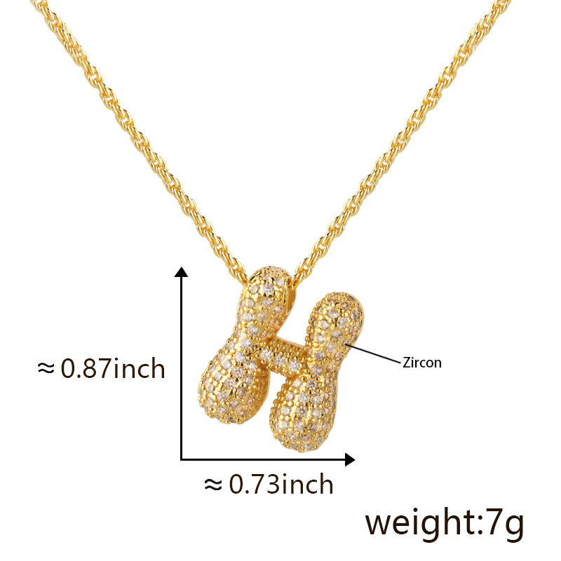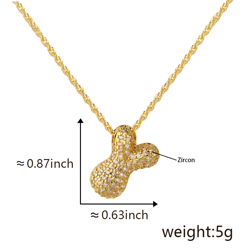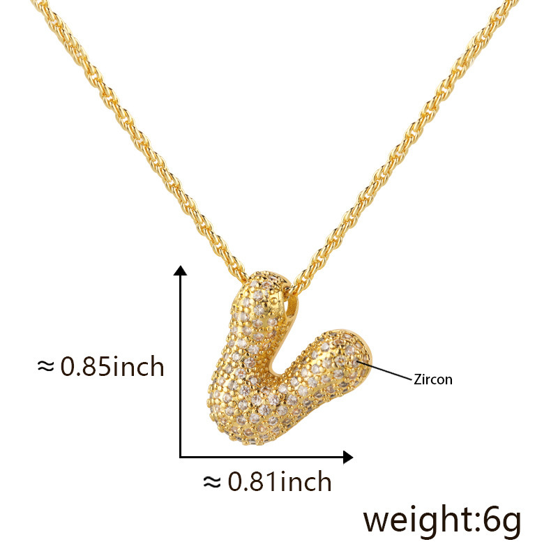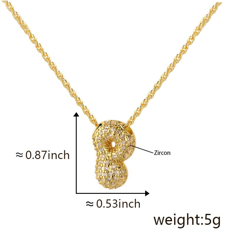欧美跨境新款个性可爱胖乎乎字母吊坠女铜镶锆石项链百搭字母批发
