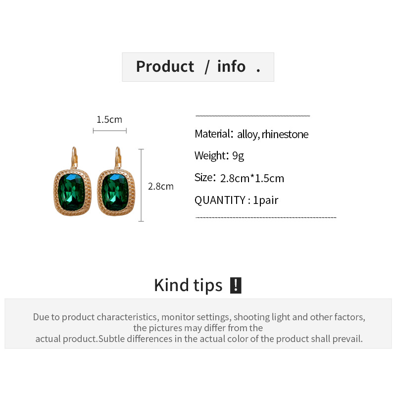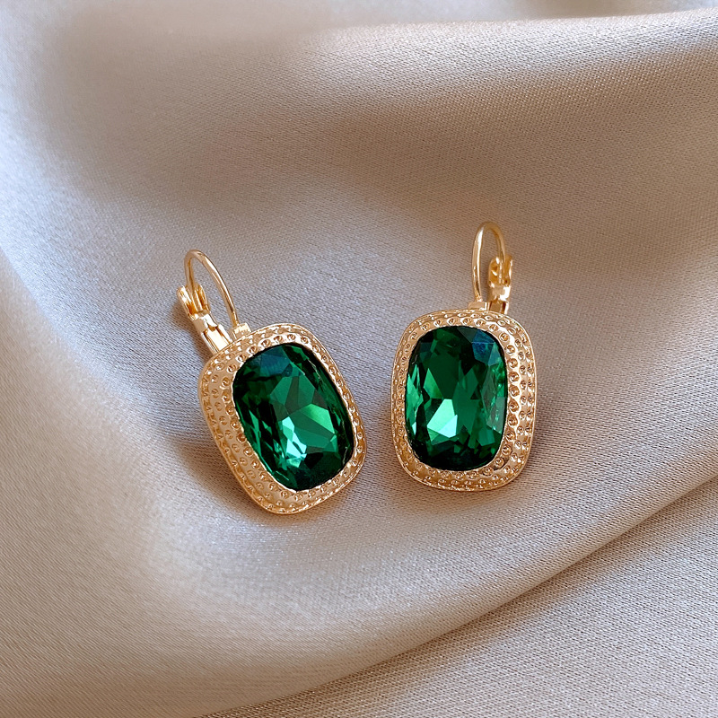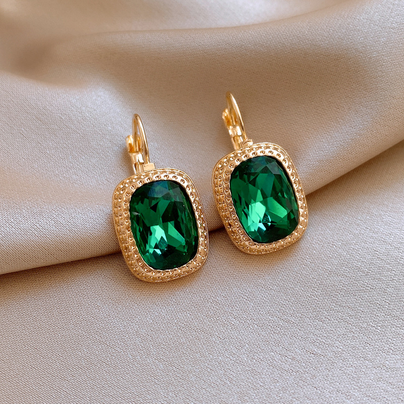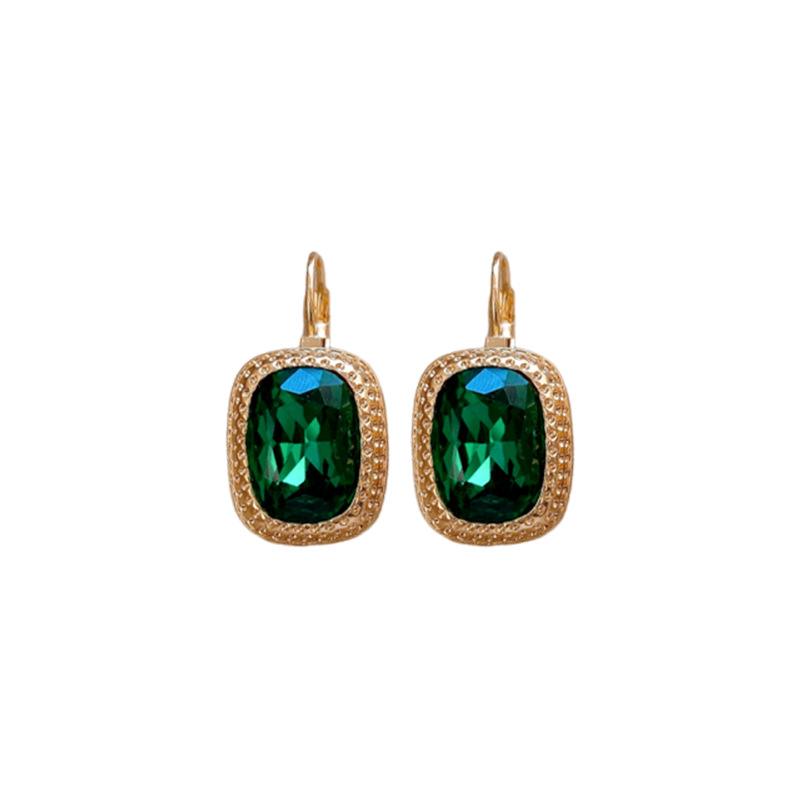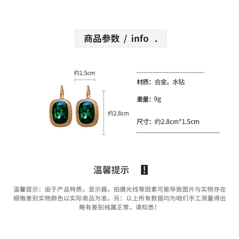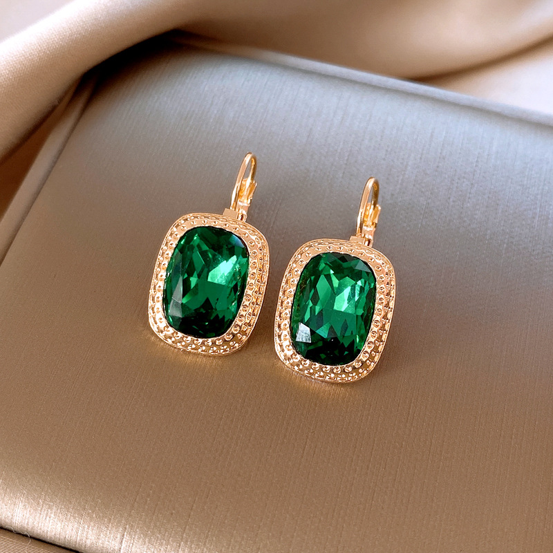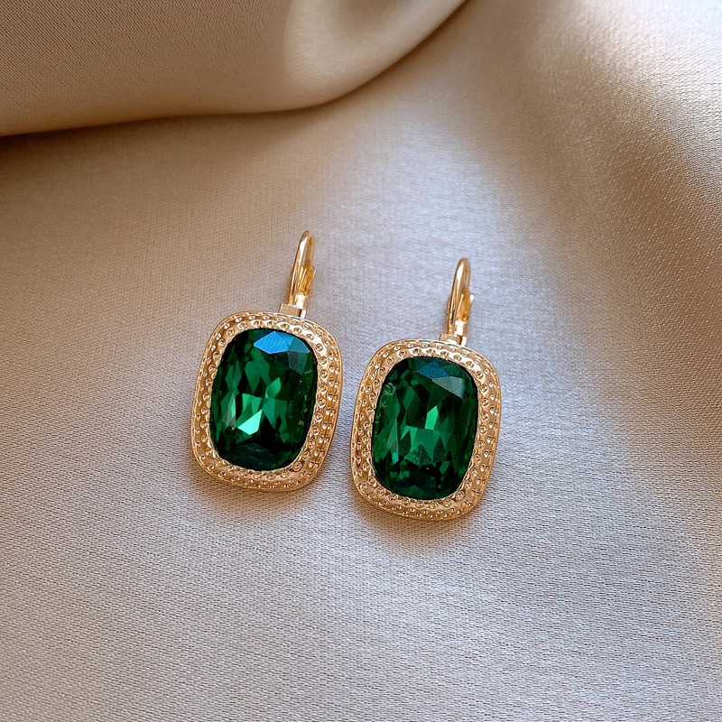 复古祖母绿长方形耳环气质精致轻奢耳扣小众百搭高级感耳饰批发女