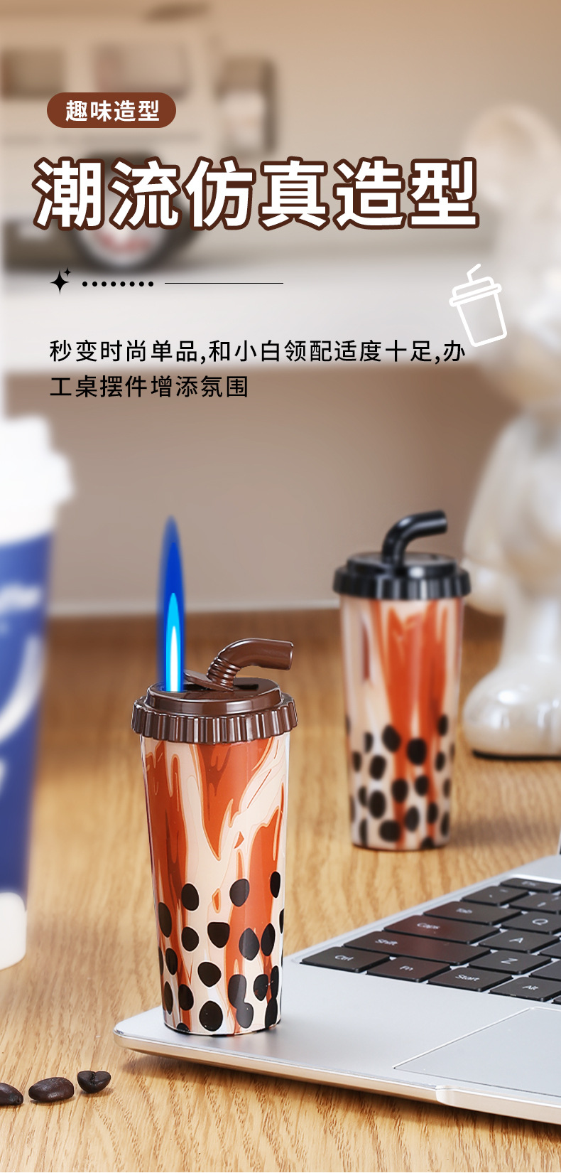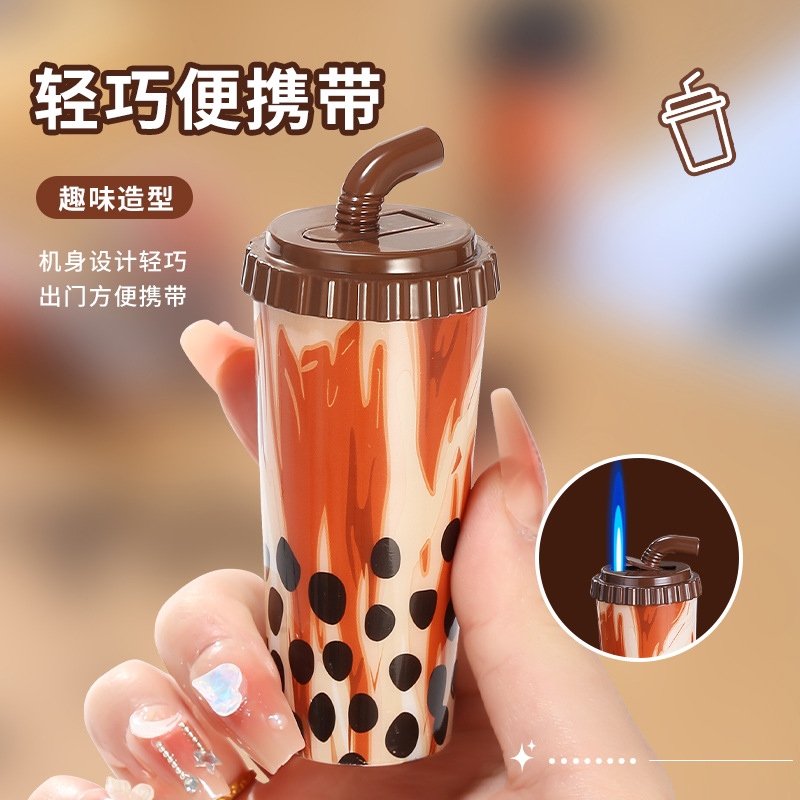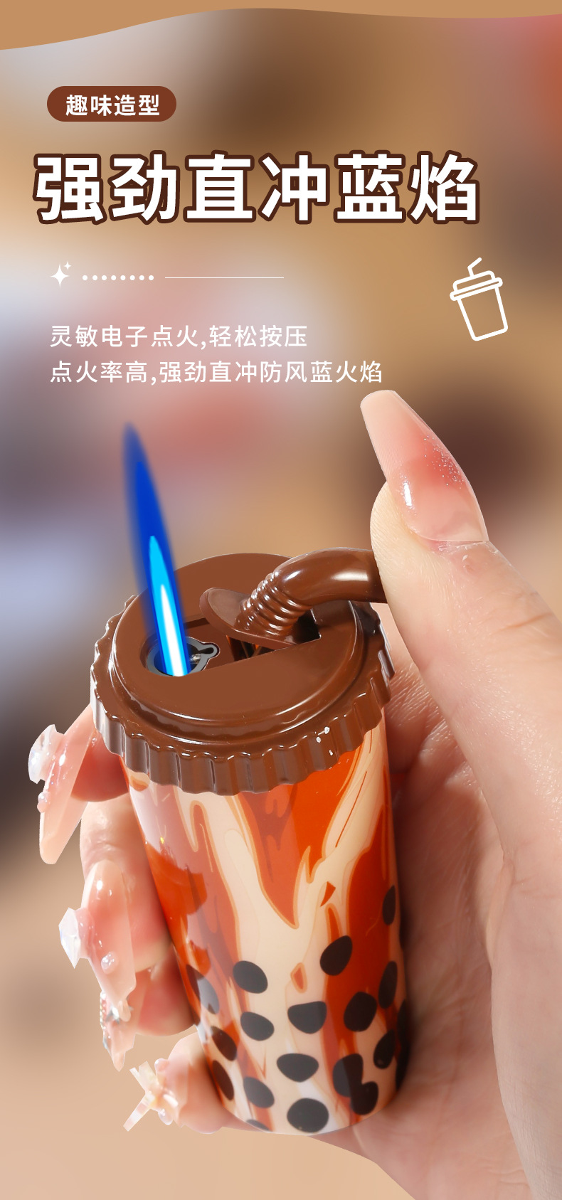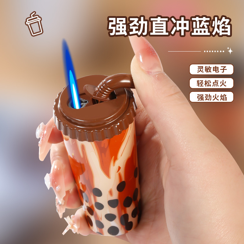 潮流奶茶杯蓝焰直冲打火机创意奶茶仿真点烟器送男友礼品批发跨境