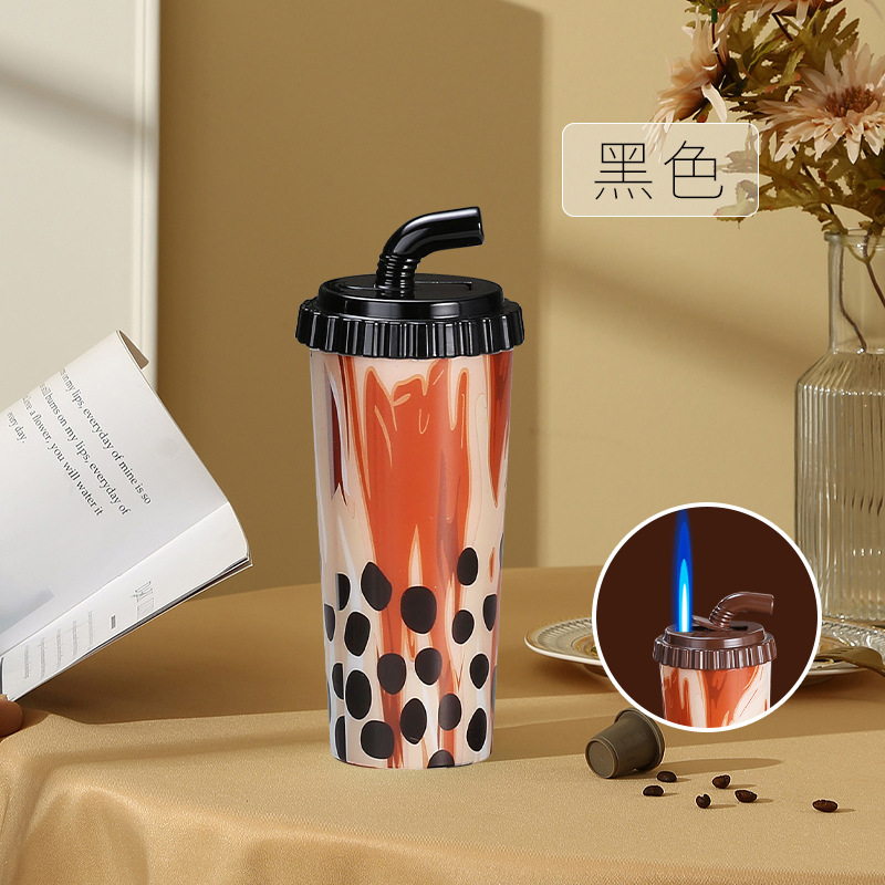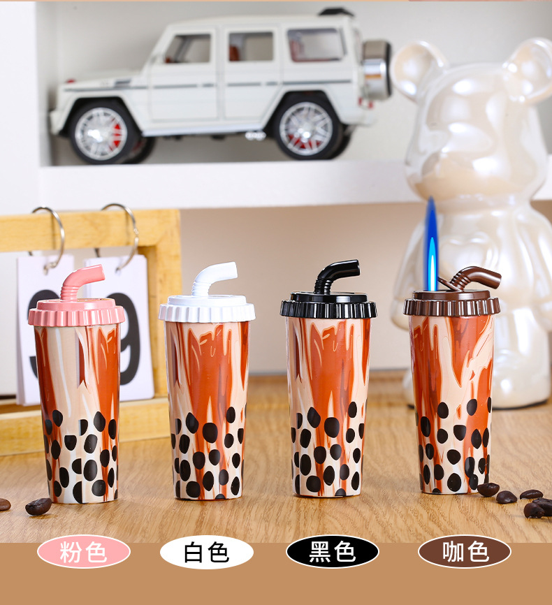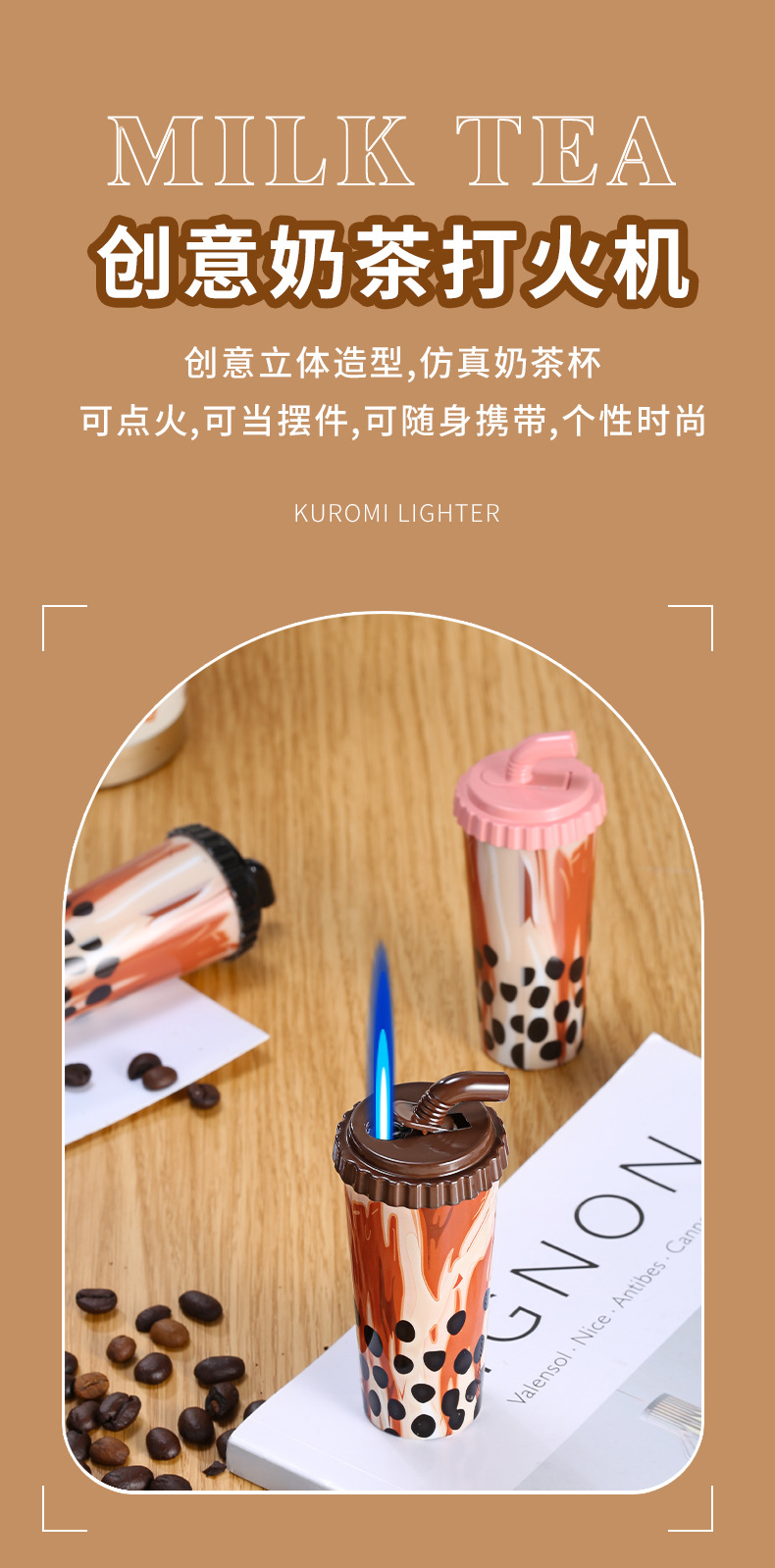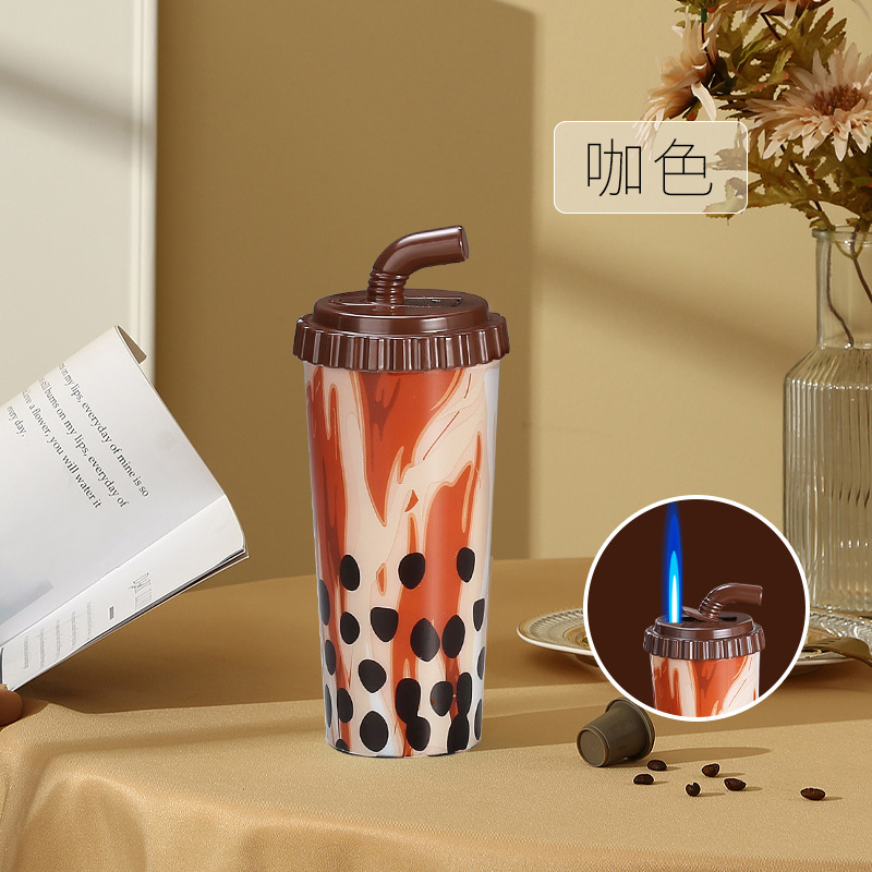 潮流奶茶杯蓝焰直冲打火机创意奶茶仿真点烟器送男友礼品批发跨境