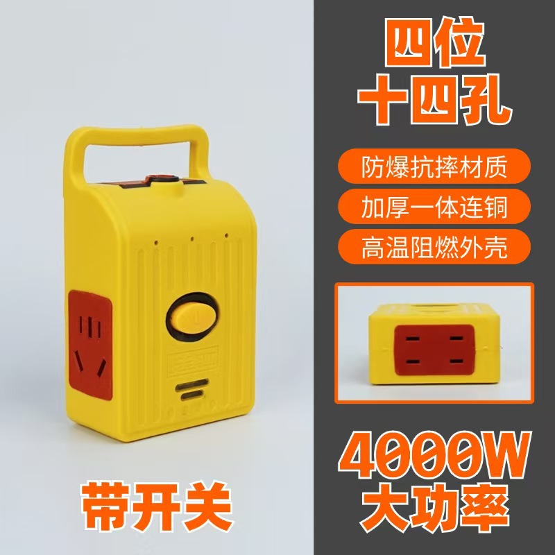 包邮大功率4000W纯铜黄色系列防爆抗摔插板工程排插无线排插座