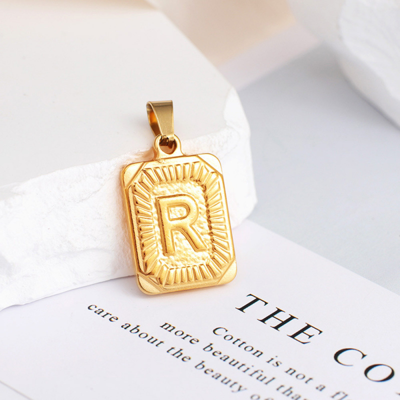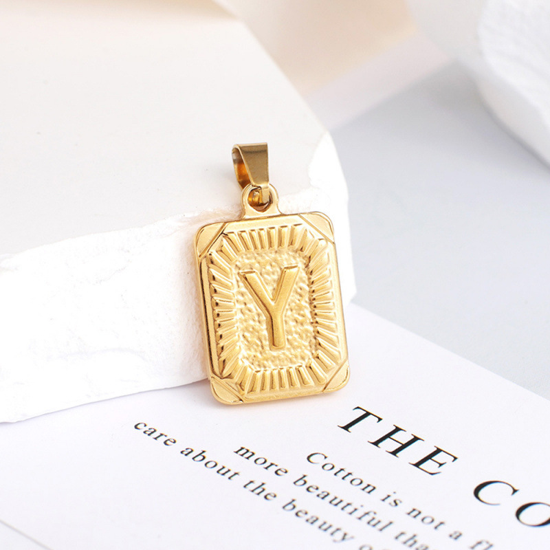 跨境欧美时尚油压26大写英文字母吊牌铜吊坠项链饰品挂件现货批发