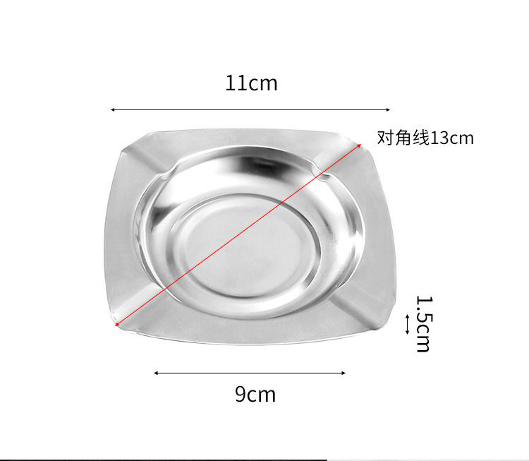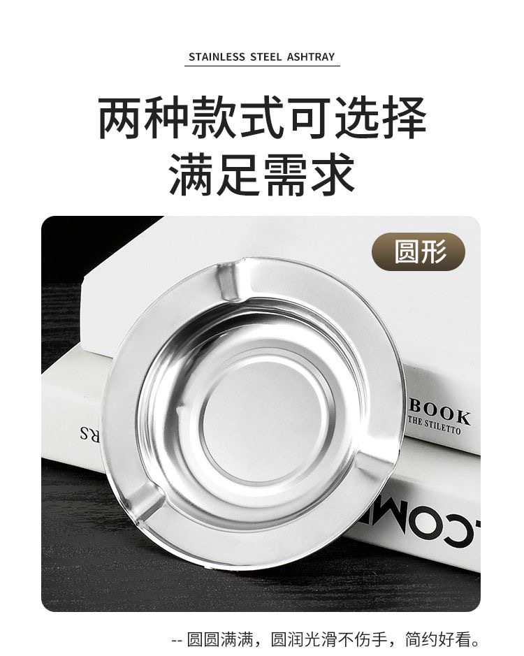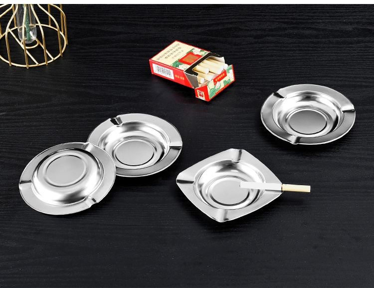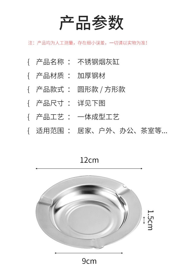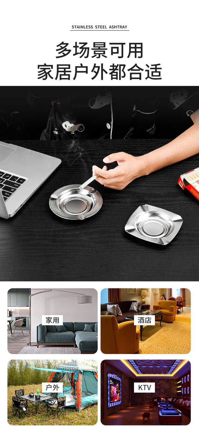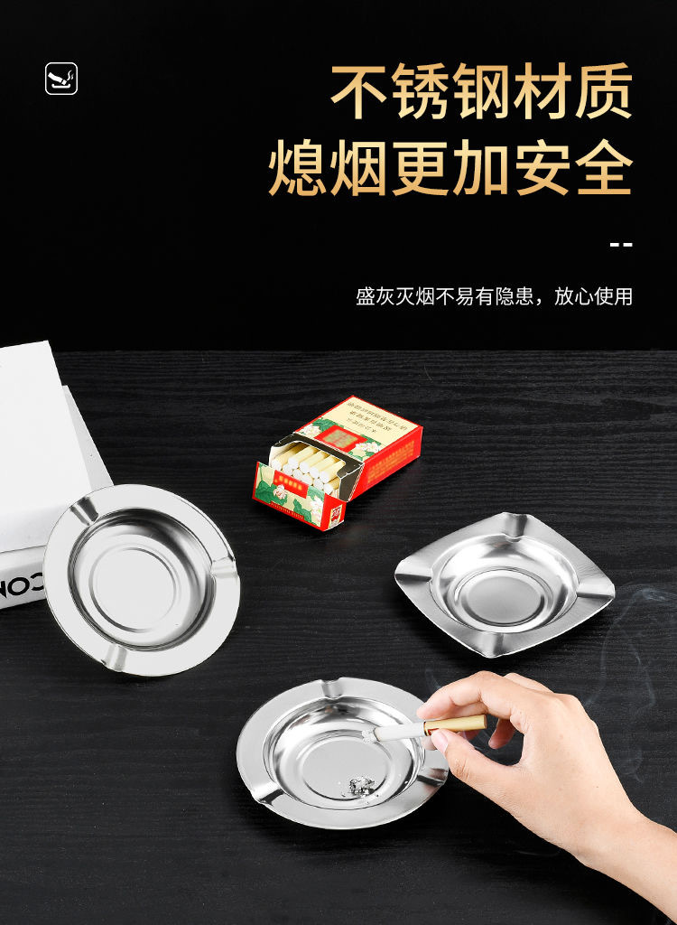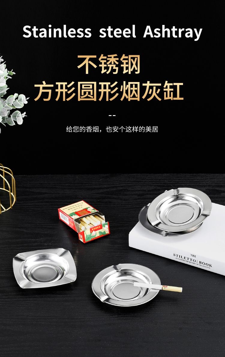 不锈钢方形烟灰缸促销跨境礼品 网吧餐厅KTV商用加厚防摔圆形烟灰