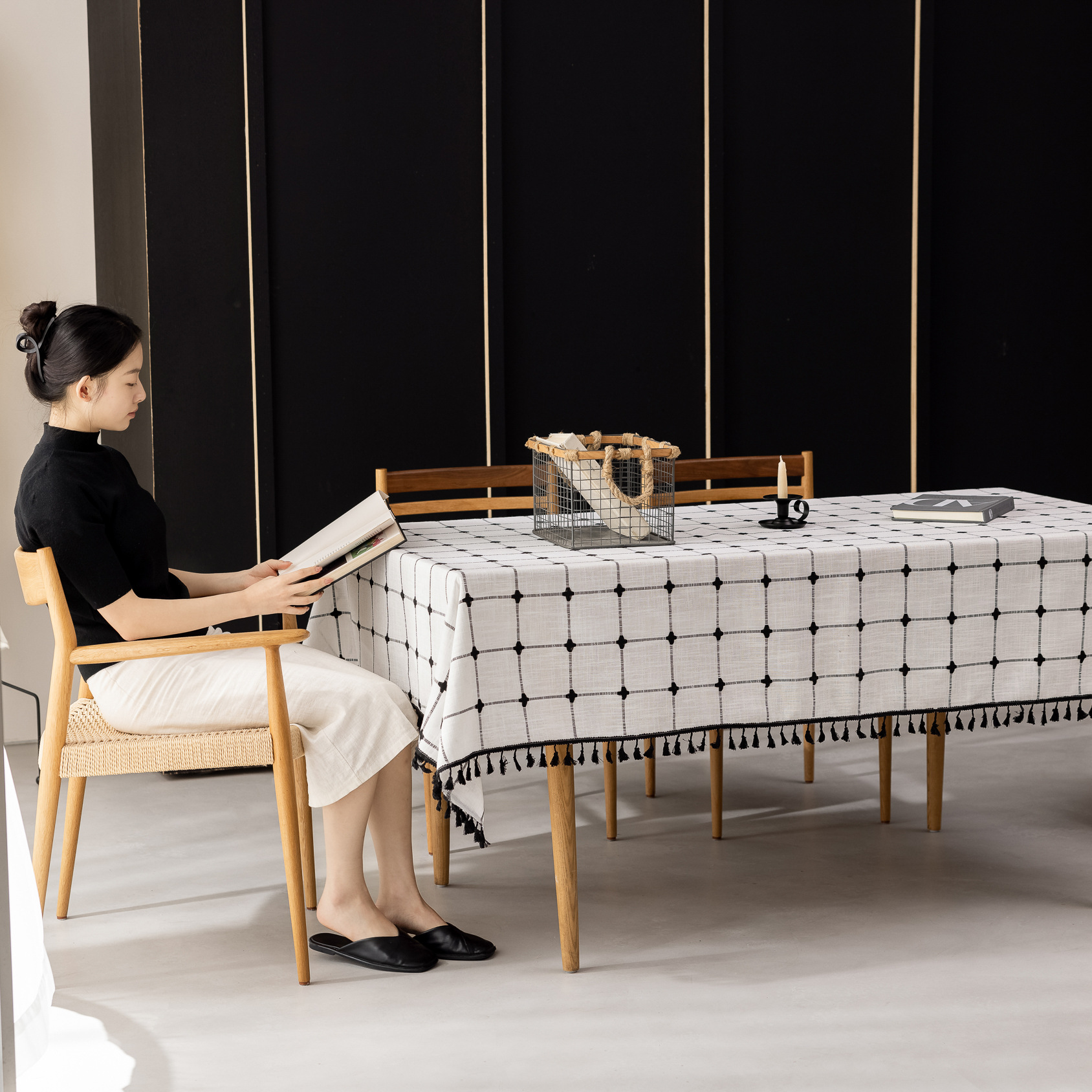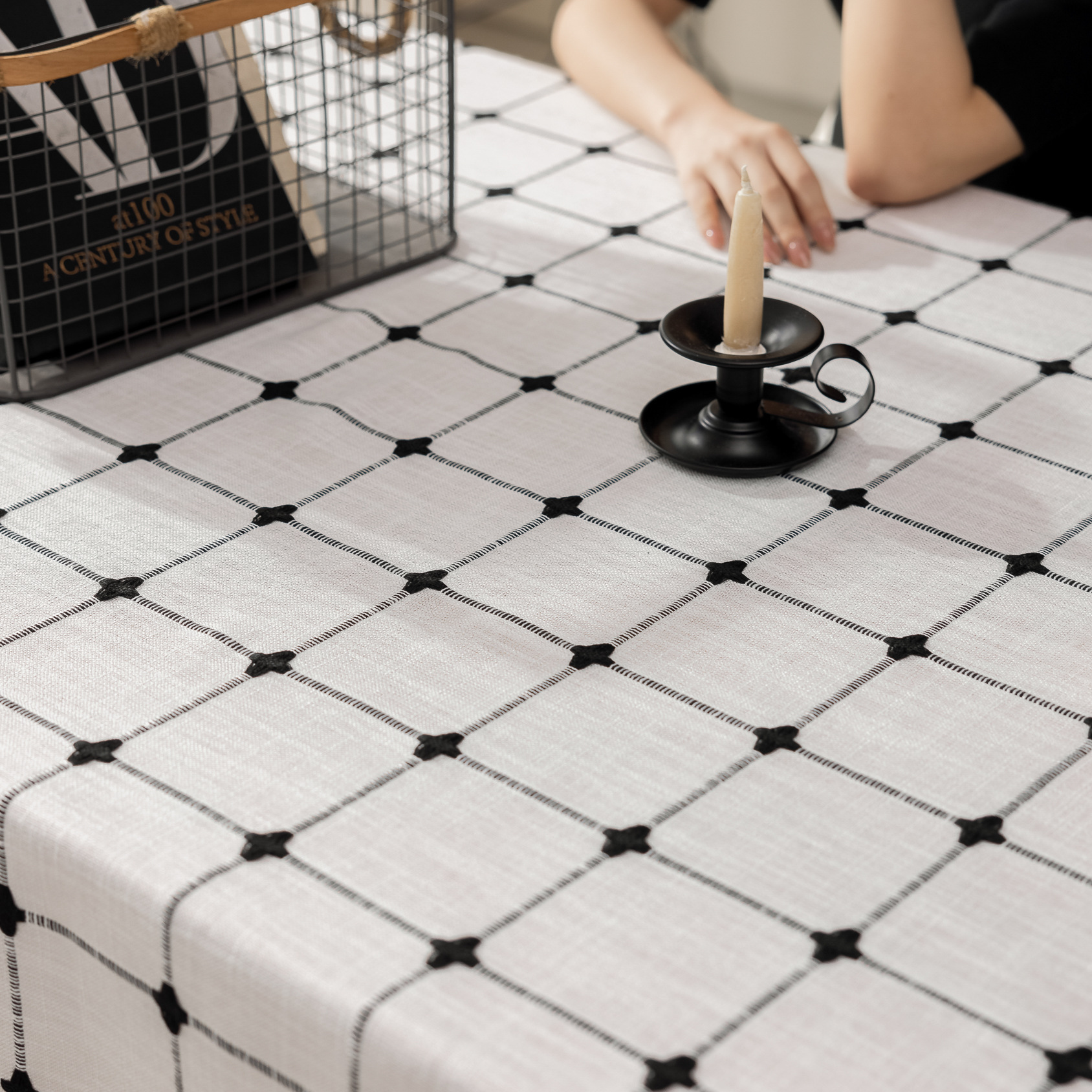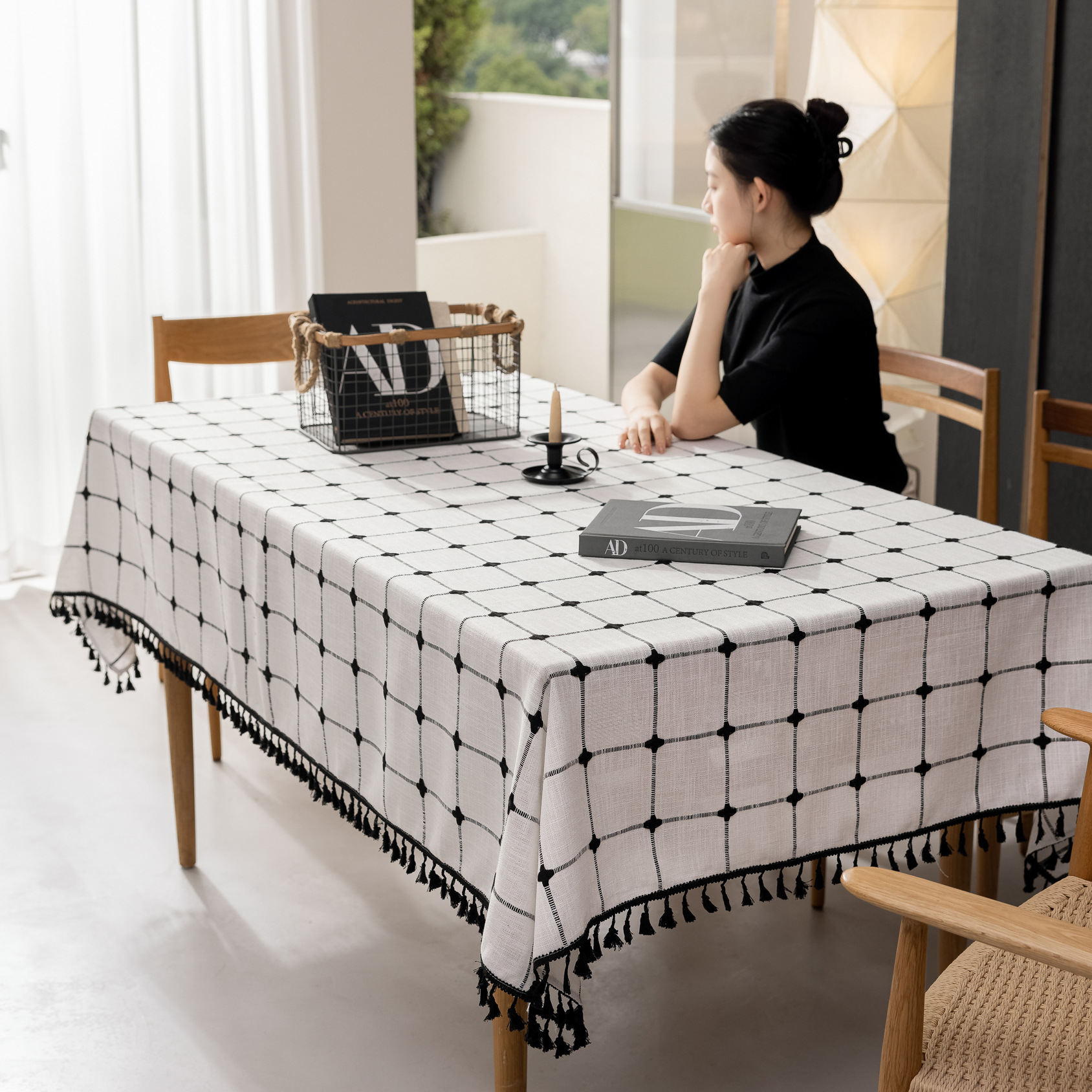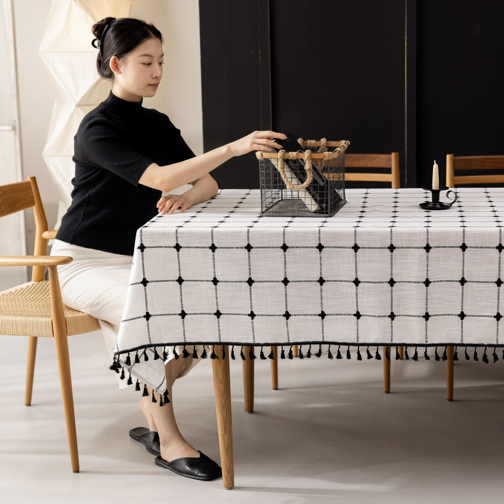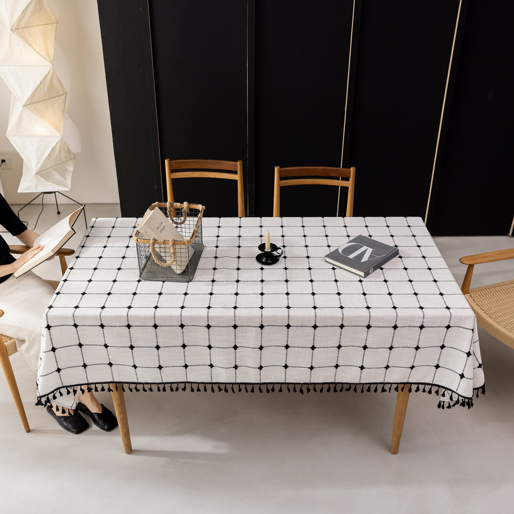跨境高级布艺圣诞节日装饰家用餐桌布艺复古条纹格子餐厅派对盖巾