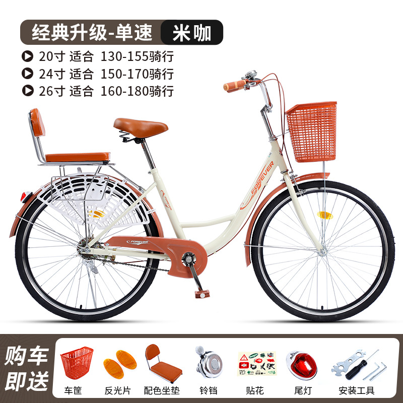 永久自行车 女式通勤车成人代步脚踏车学生26寸变速复古单车批发