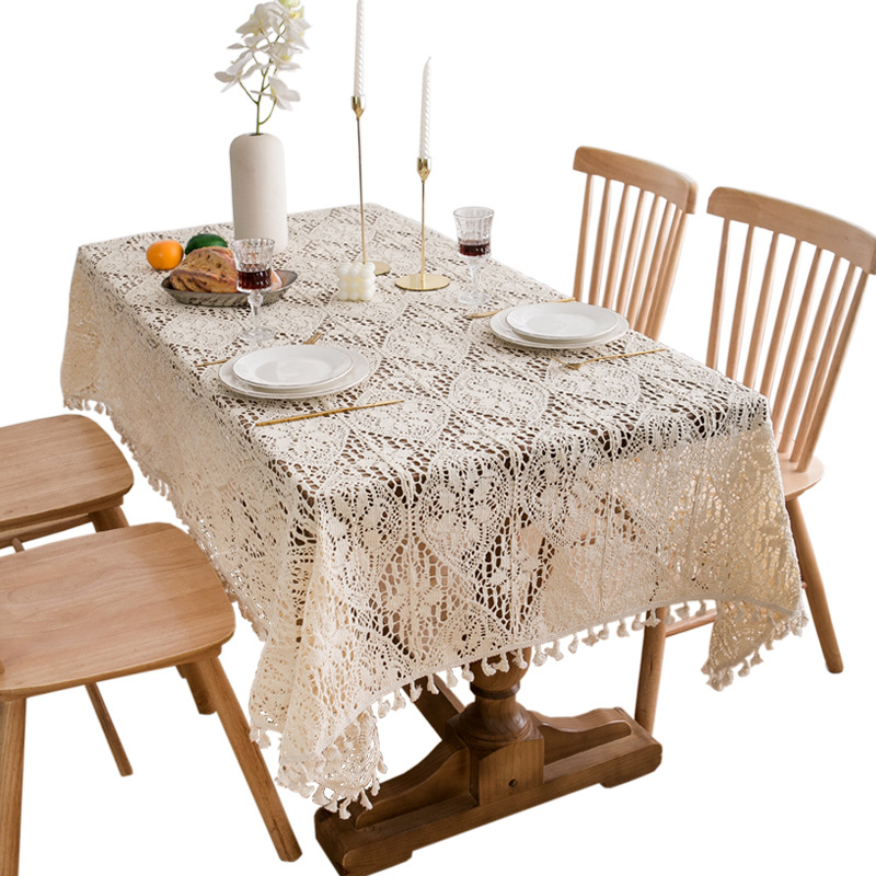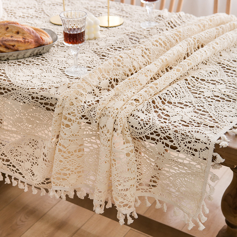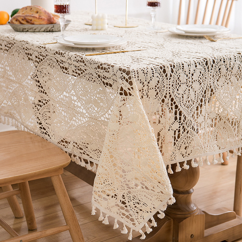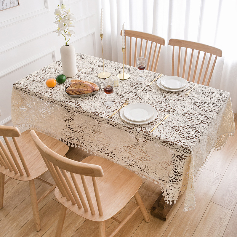 跨境亚马逊棉线网格餐桌布文艺术个性复古盖布编制纯棉绳盖巾特色